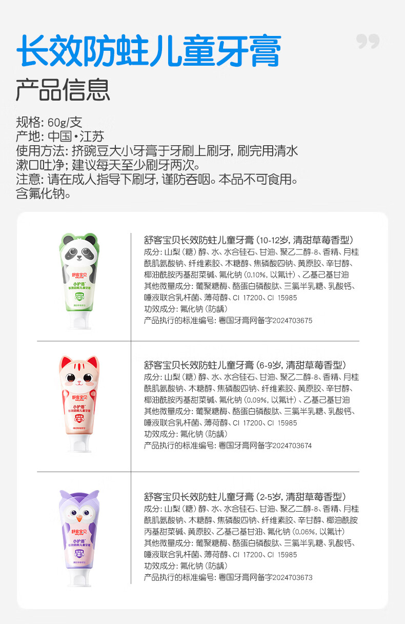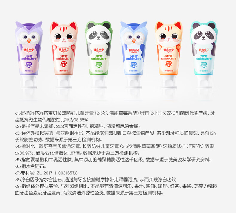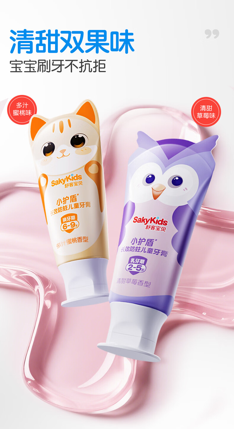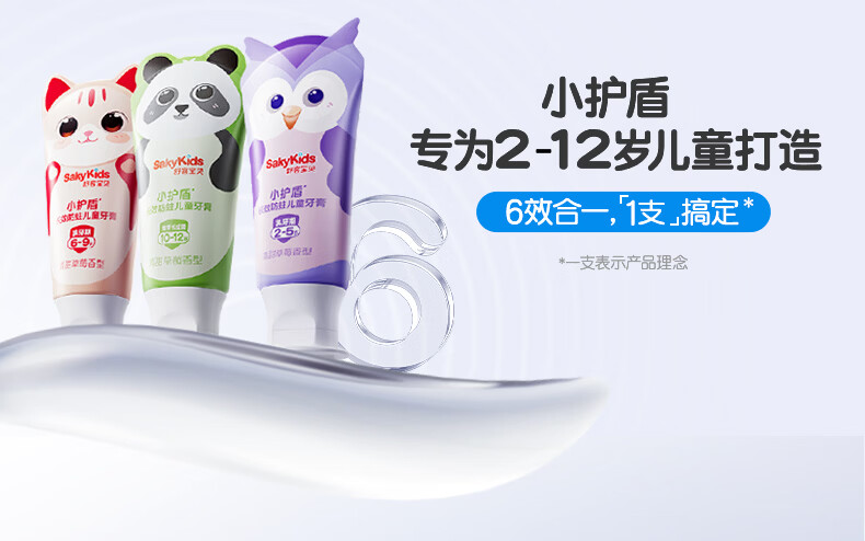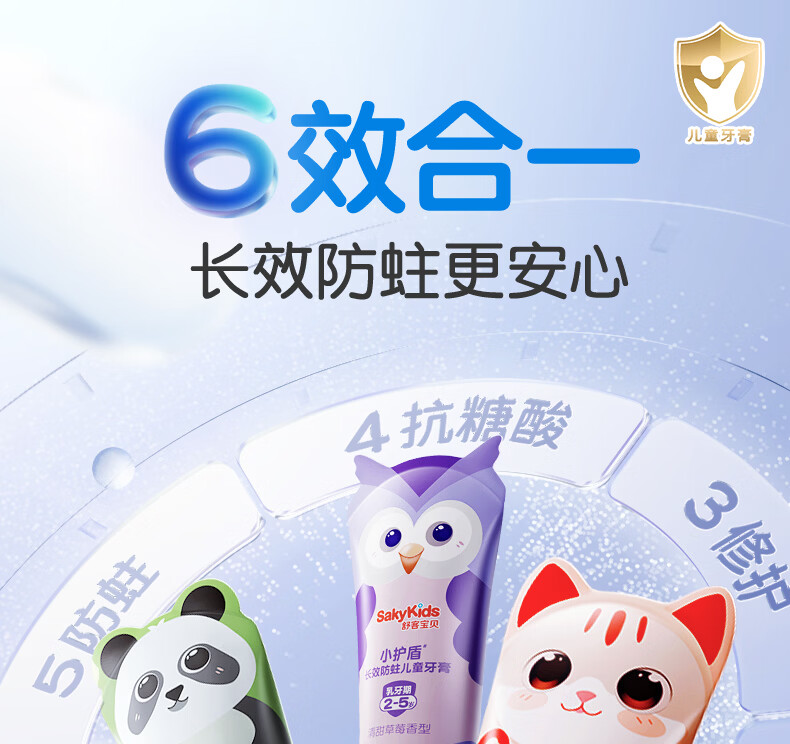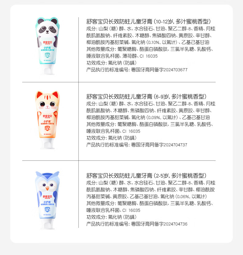 舒客宝贝儿童牙膏小护盾12小时长效防蛀牙克服龋齿3-6-12岁含氟分龄修护 小护盾60g(6-9岁)+哆啦防蛀40g*4+护齿牙刷*2