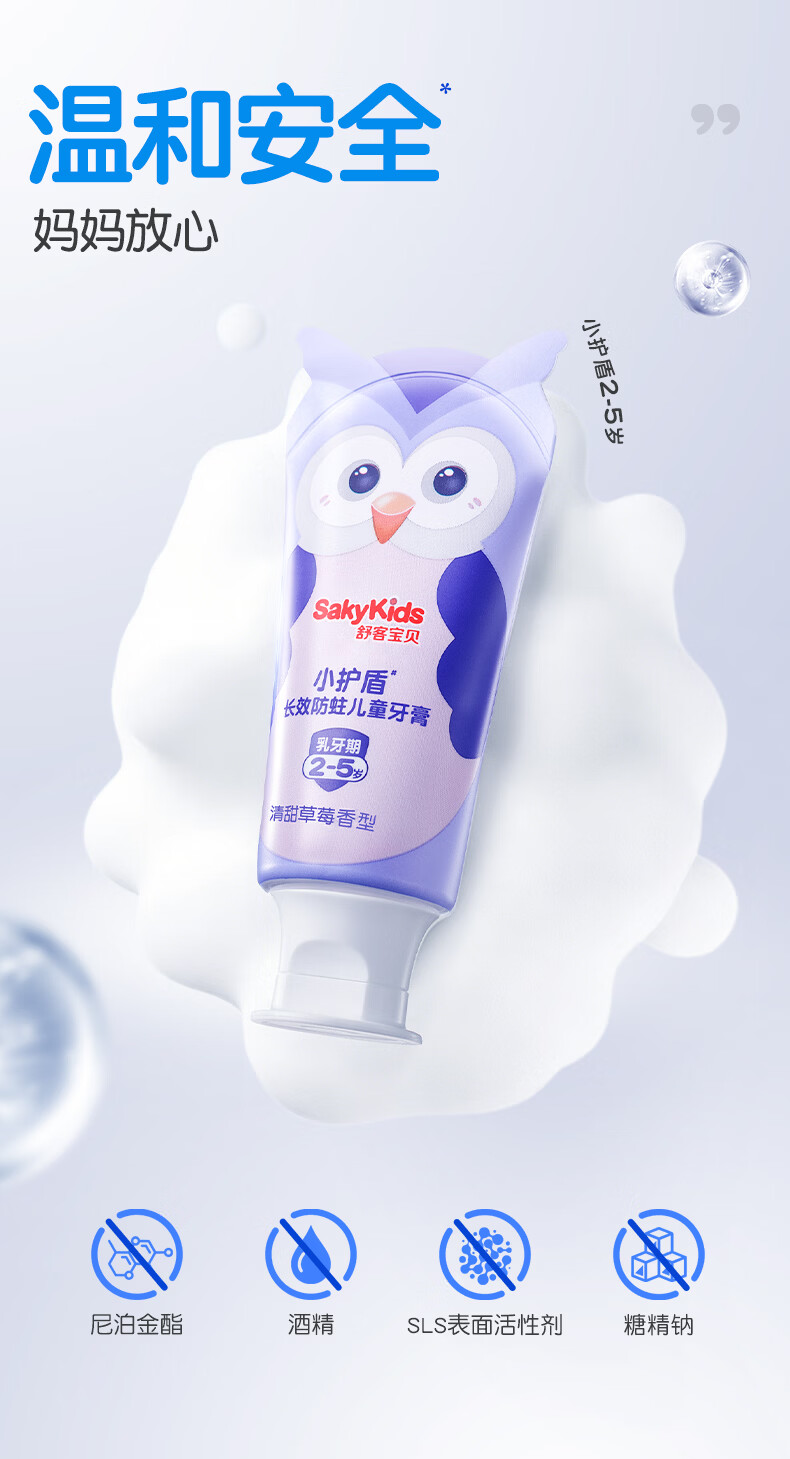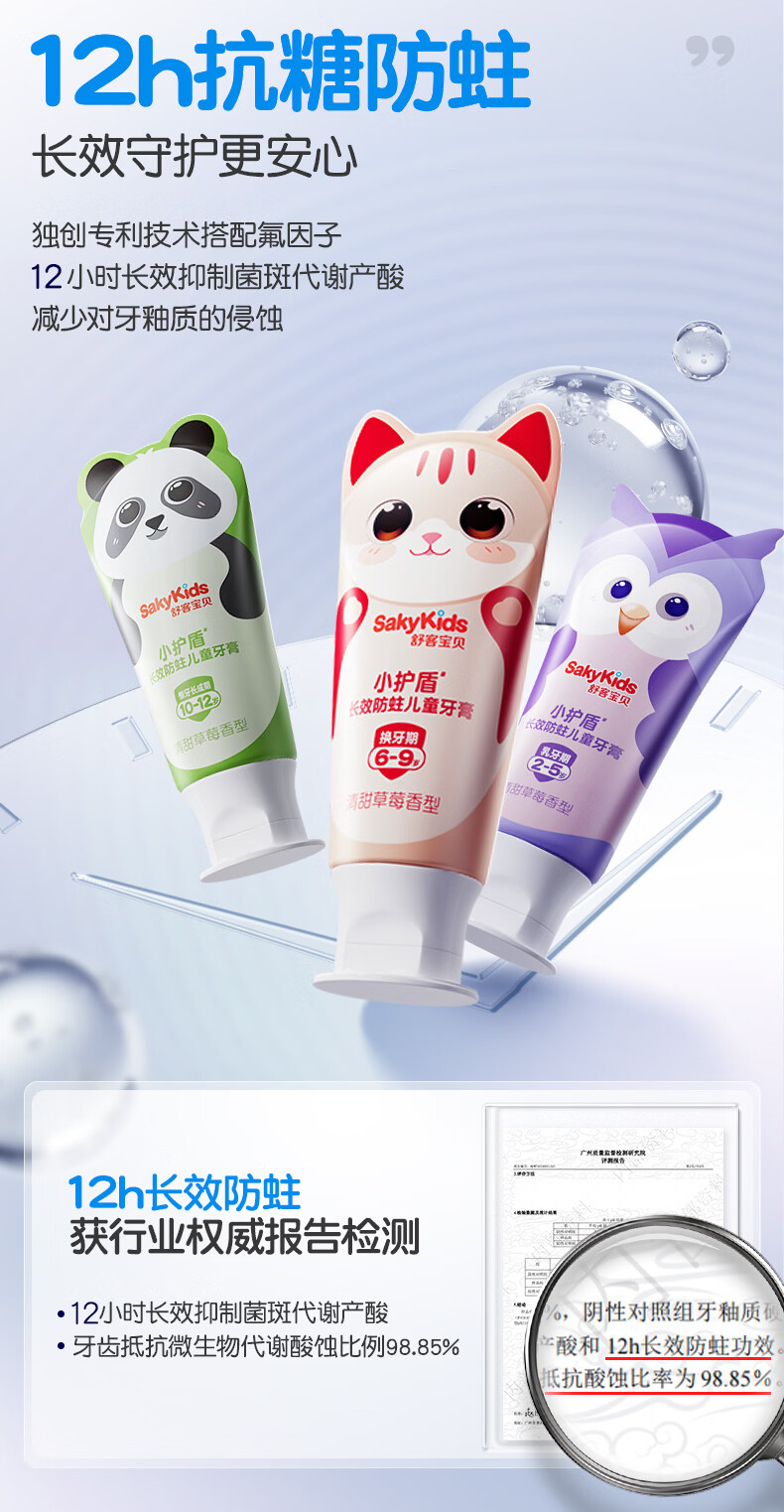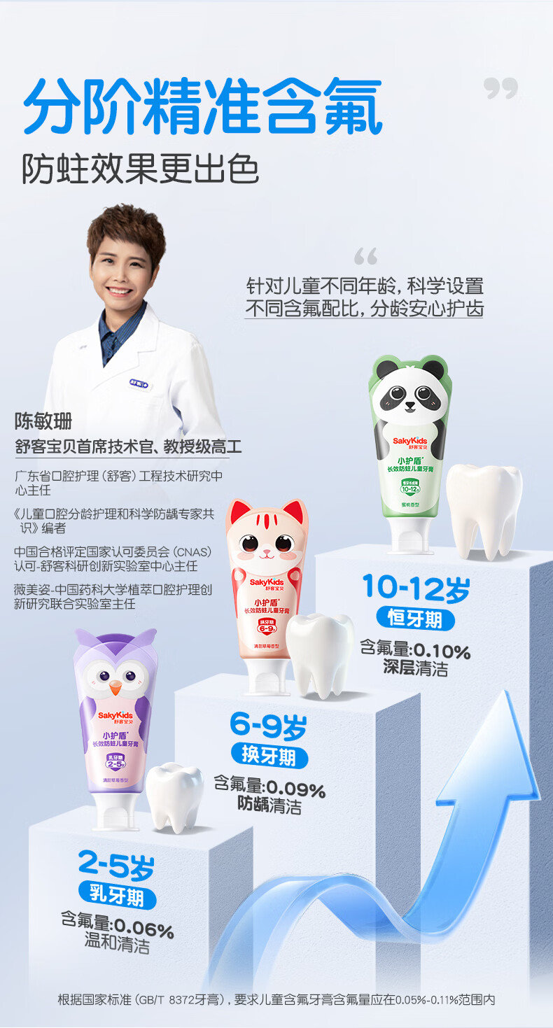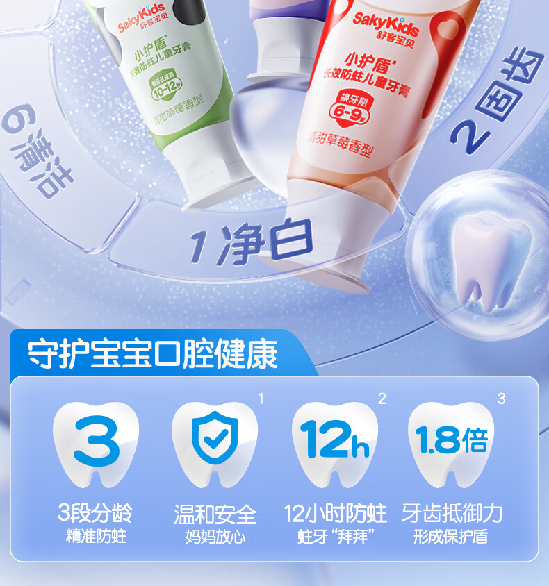 舒客宝贝儿童牙膏小护盾12小时长效防蛀牙克服龋齿3-6-12岁含氟分龄修护 小护盾60g(6-9岁)+哆啦防蛀40g*4+护齿牙刷*2