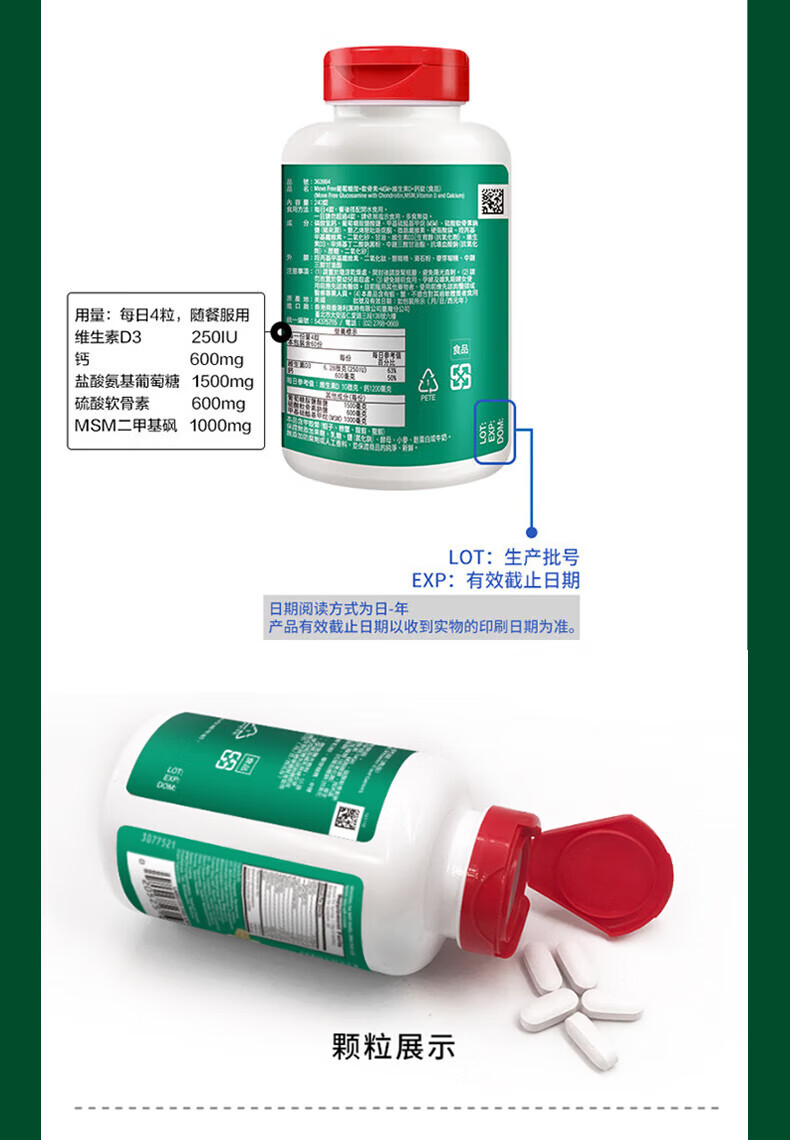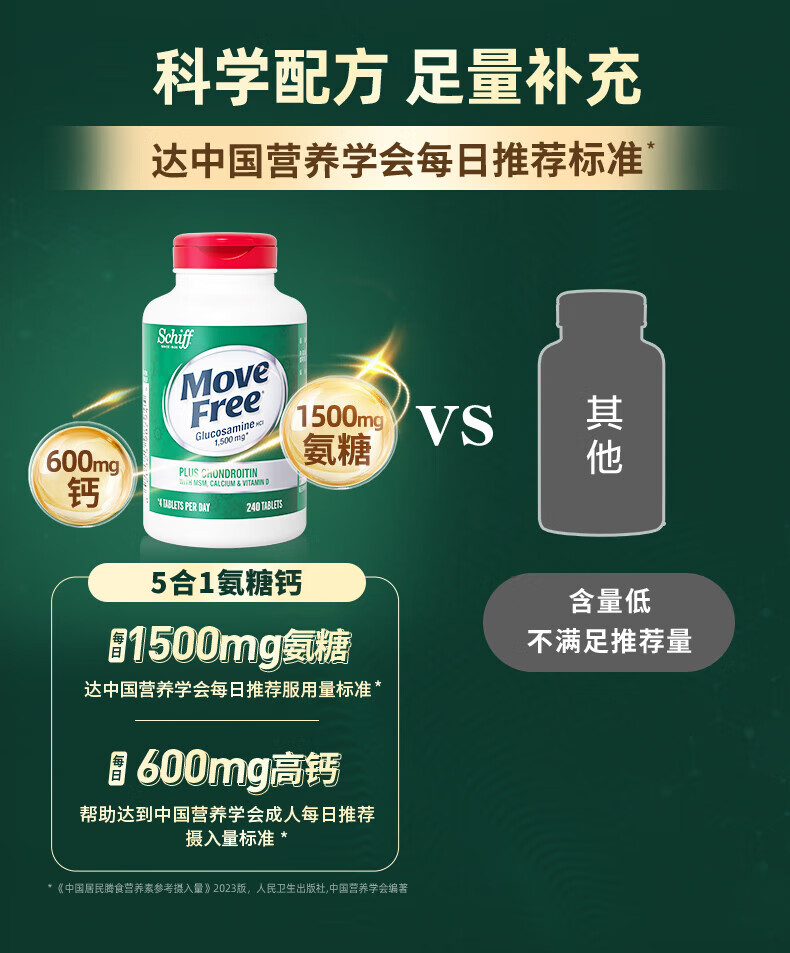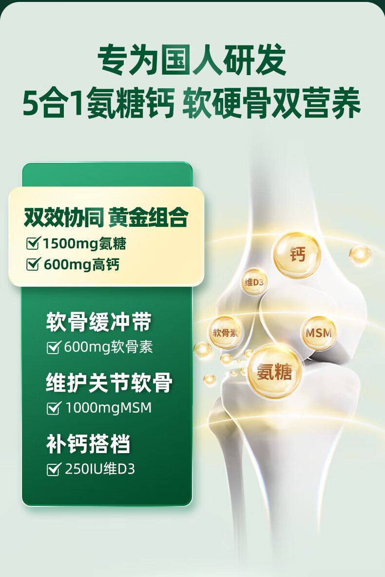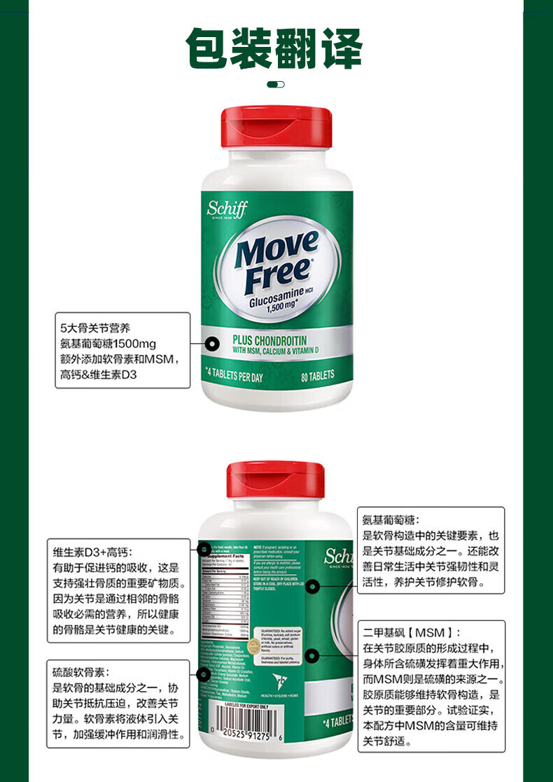 益节(Move Free)氨糖软骨素钙片 美国原装进口 维骨力中老年人 【会员福利】高钙氨糖 80粒*2瓶