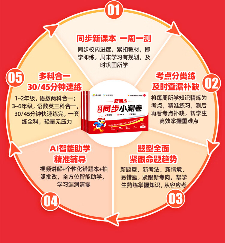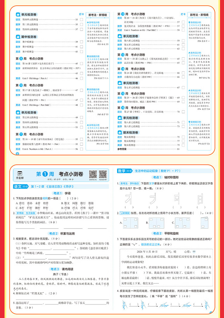 作业帮【2026新版现货速发】新课本周末同步小测卷 小学语文数学英语同步新课本必刷题考点周周清单元培优卷期中期末冲刺试卷 【语数英三合一】同步小测卷(五年级下册)