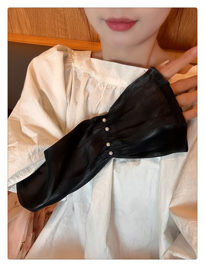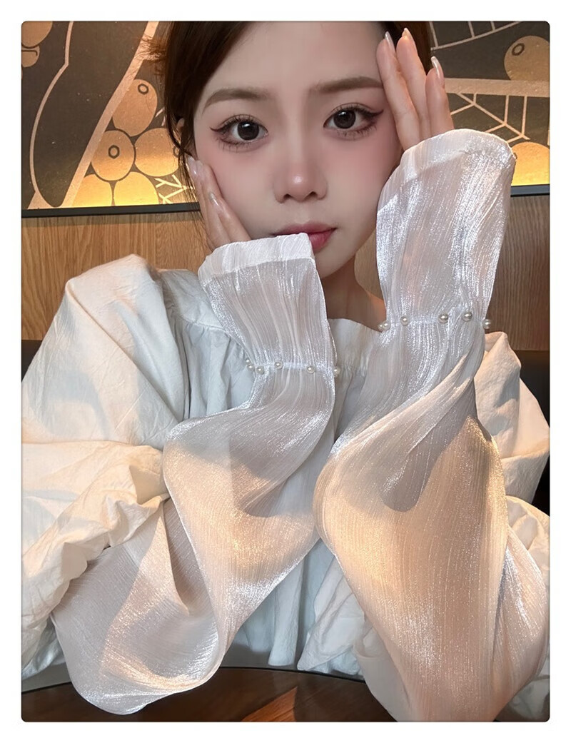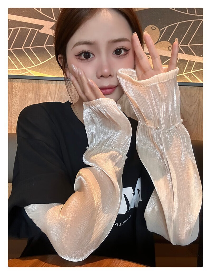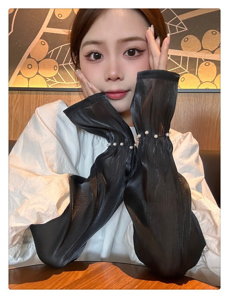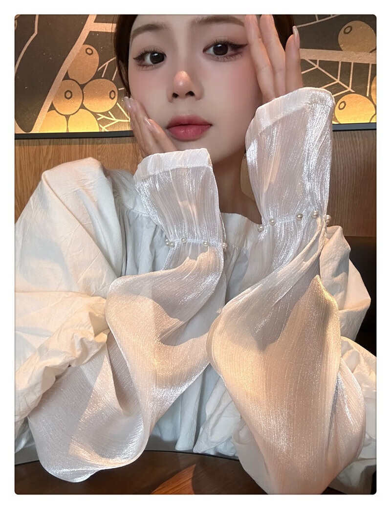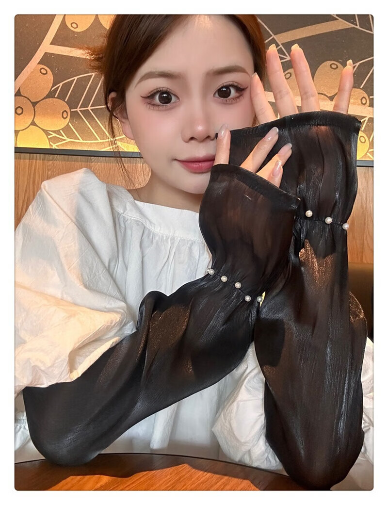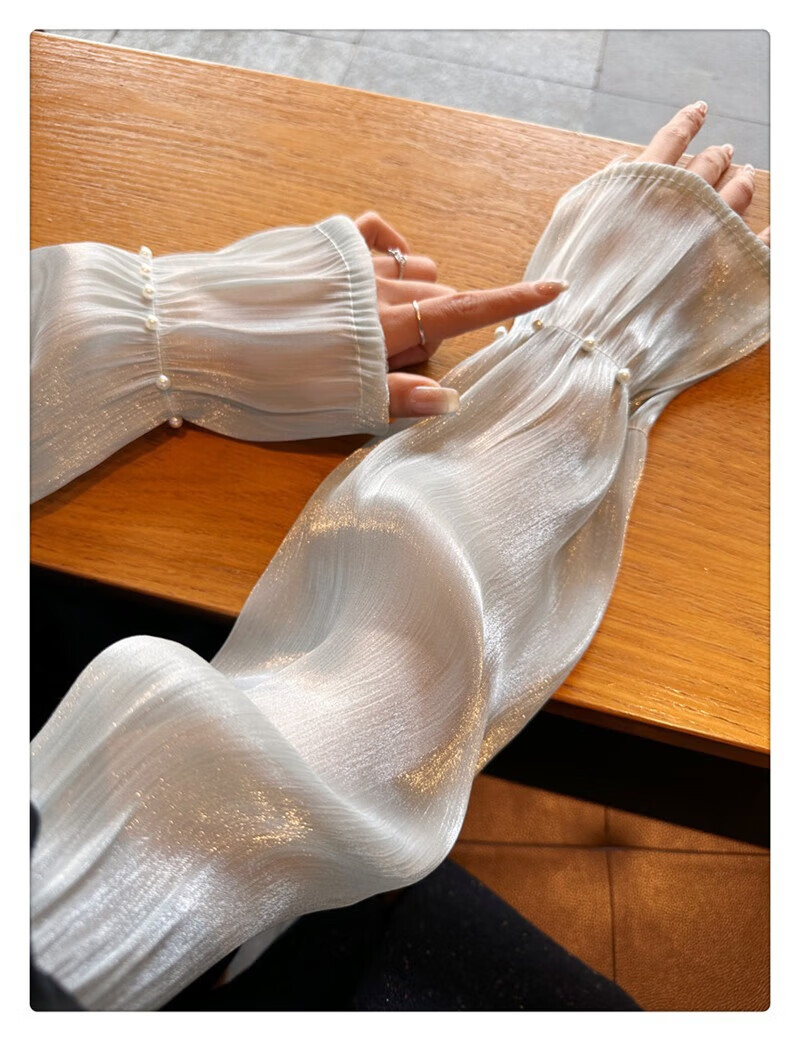 |【优选】防晒袖套女夏蕾丝冰袖2024新款宽松手套薄款冰丝手袖防晒 开车珍珠冰袖-白色-1双 无规格