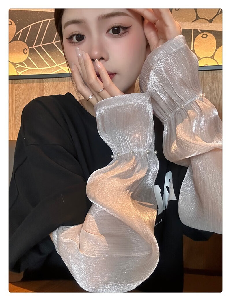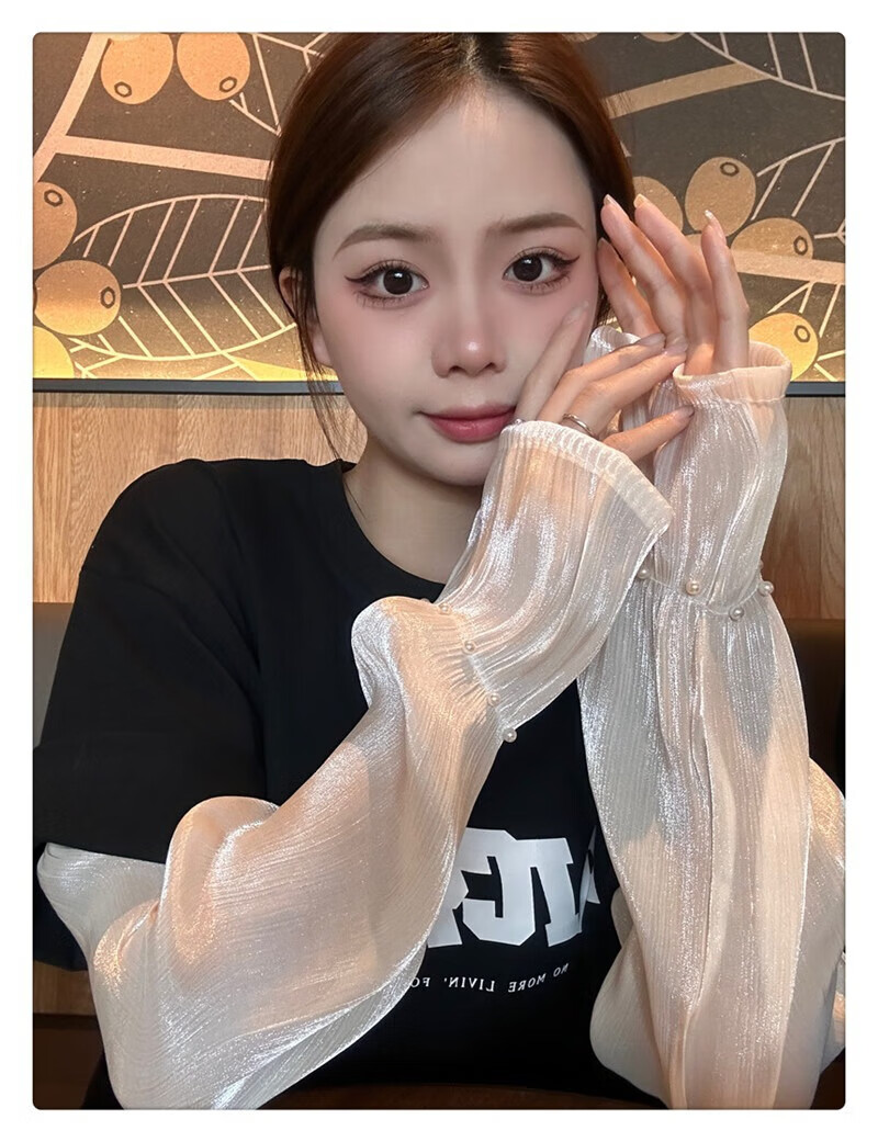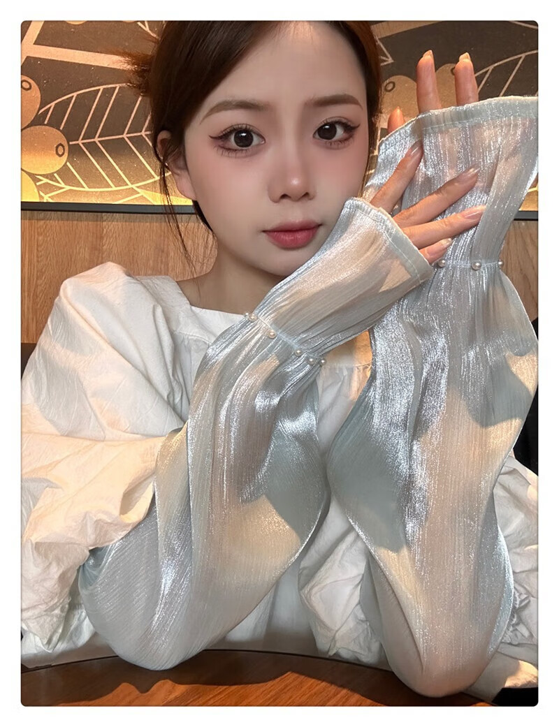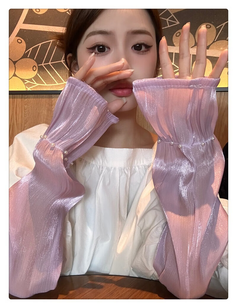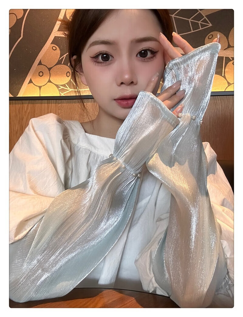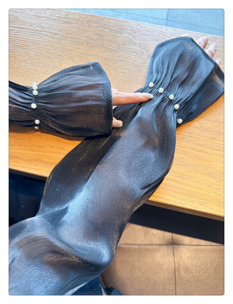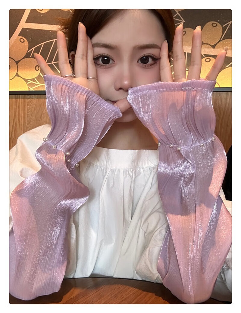 |【优选】防晒袖套女夏蕾丝冰袖2024新款宽松手套薄款冰丝手袖防晒 开车珍珠冰袖-白色-1双 无规格