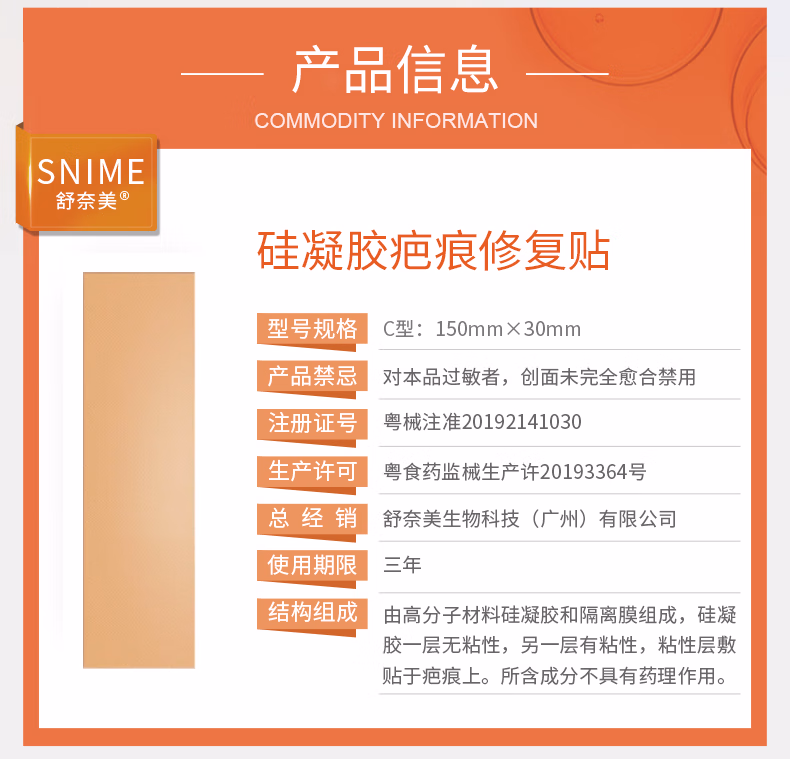 丽森卡疤痕贴剖腹产疤痕贴增生凸起去除疙瘩 一盒装(3贴)
