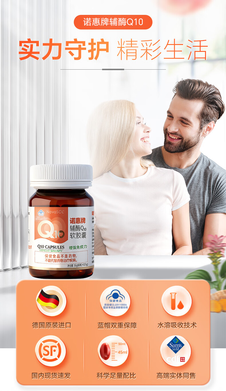 诺惠辅酶q10软胶囊60粒德国原装进口增强免疫力水溶高吸收高含量正品 60粒*2瓶 +赠品(共150粒)【热卖套组】