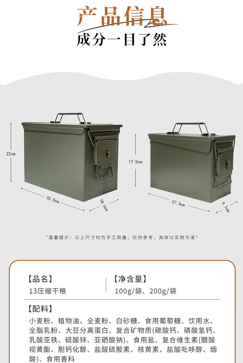 特种兵13型压缩饼干三防箱 应急储备代餐户外方便食品管饱充饥抗饿干粮 13压缩饼干200g*40包(纸箱装)