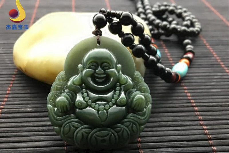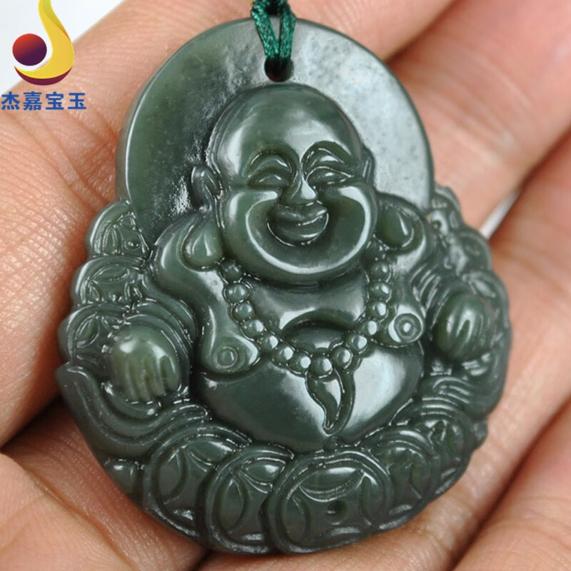 杰嘉宝玉【笑口常开】笑佛吊坠弥勒佛玉坠玉石佛公玉器女友妈妈礼物带证 十八罗汉挂绳+证书+精美包装
