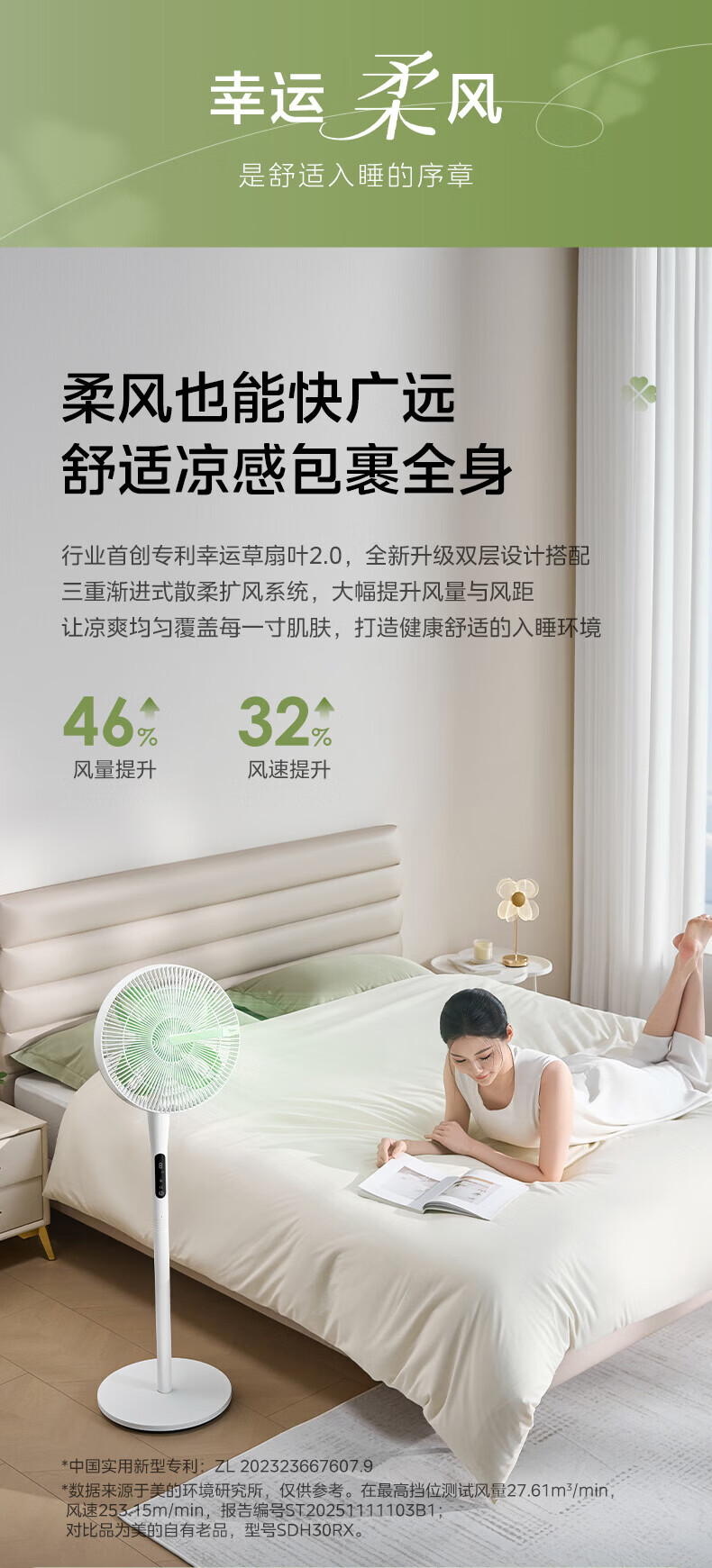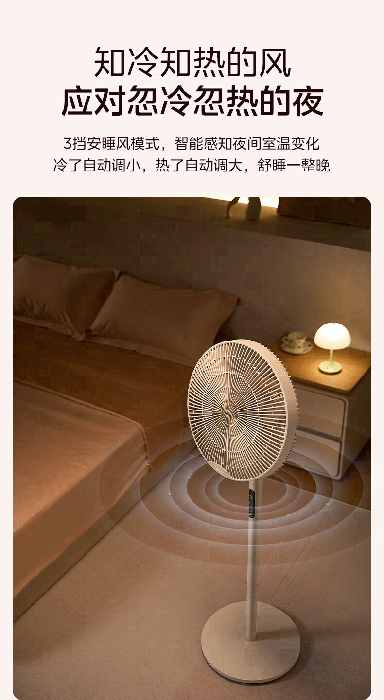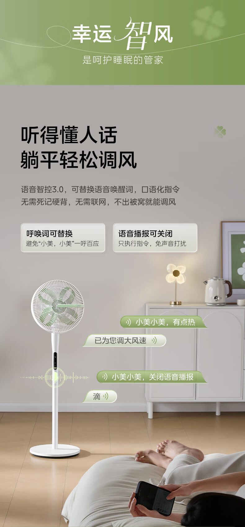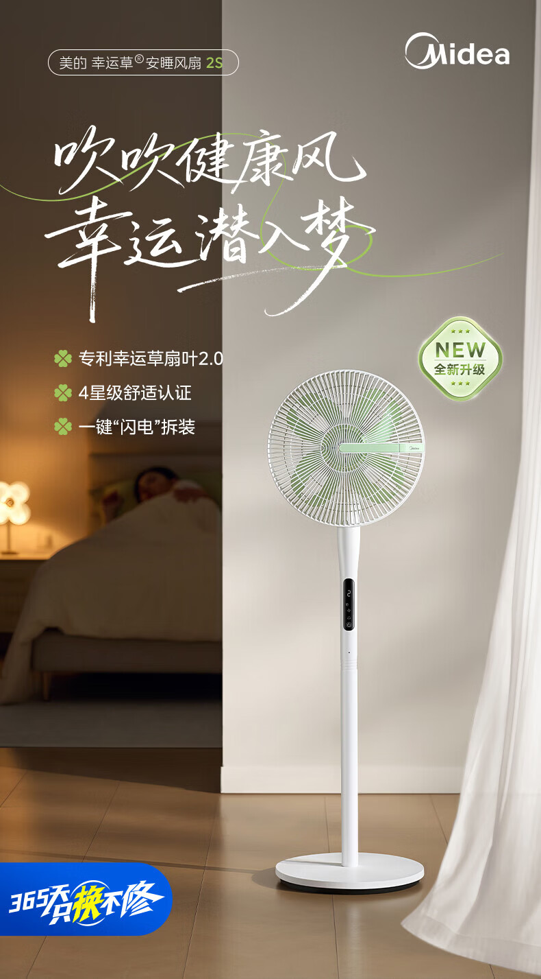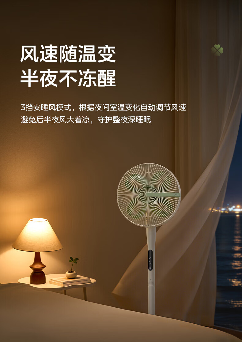 美的(Midea)风扇落地扇幸运草安睡电风扇系列 家用智能变频风扇大风量客厅宿舍轻音柔风 卧室桌面台式立式两用 幸运草2S丨风随温变