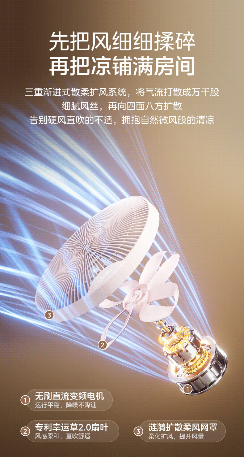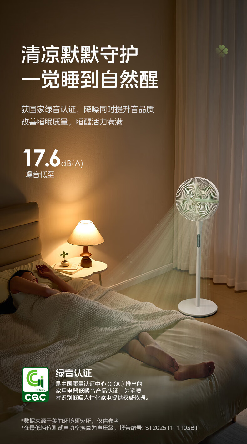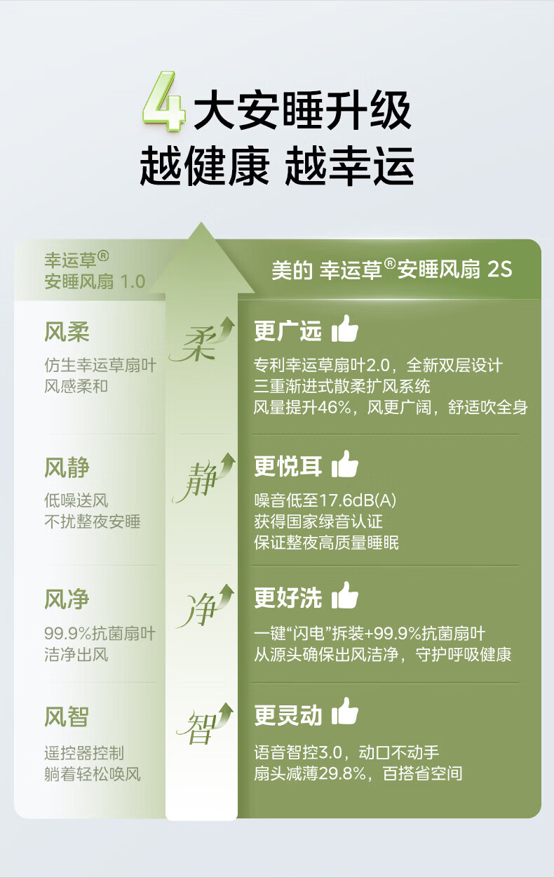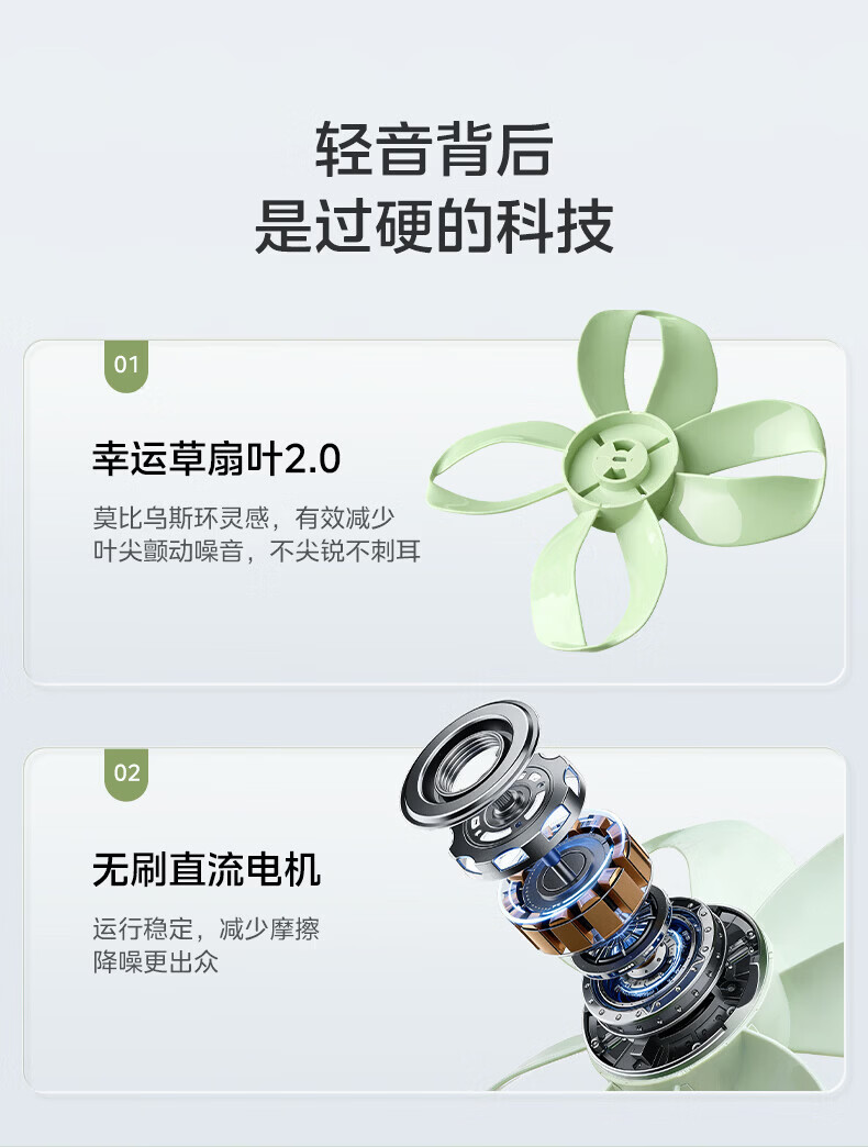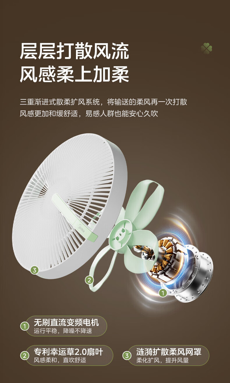 美的(Midea)风扇落地扇幸运草安睡电风扇系列 家用智能变频风扇大风量客厅宿舍轻音柔风 卧室桌面台式立式两用 幸运草2S丨风随温变