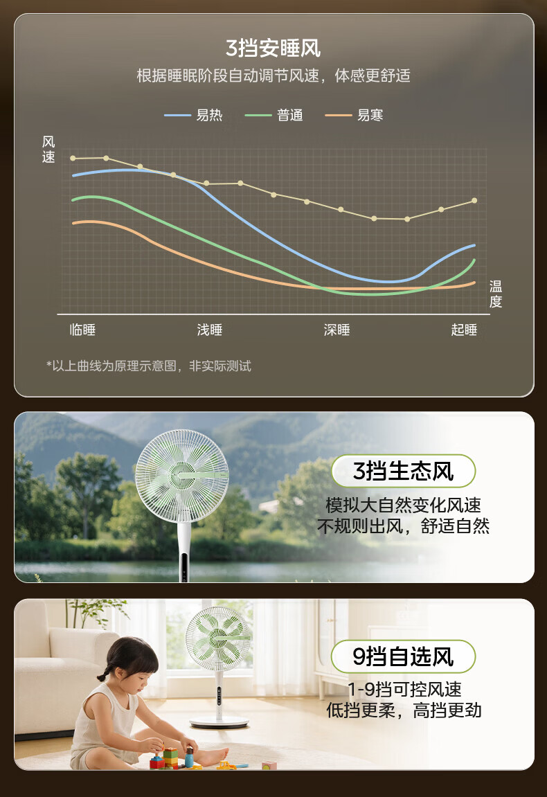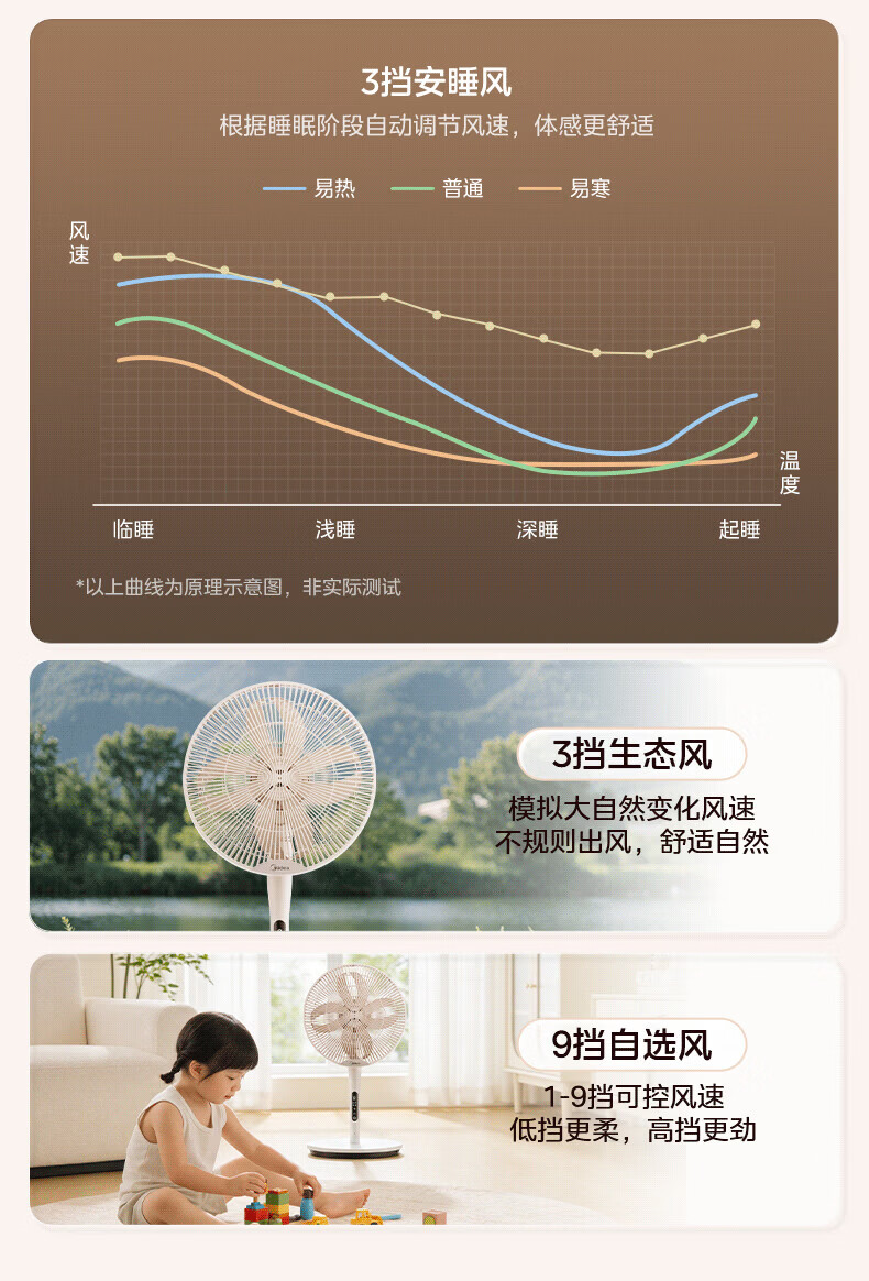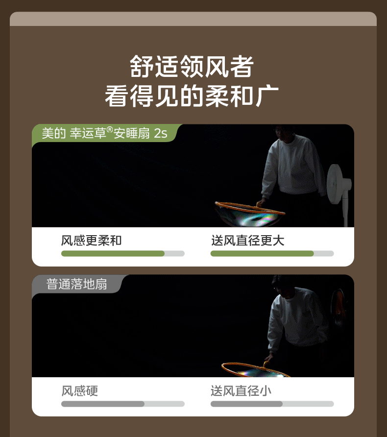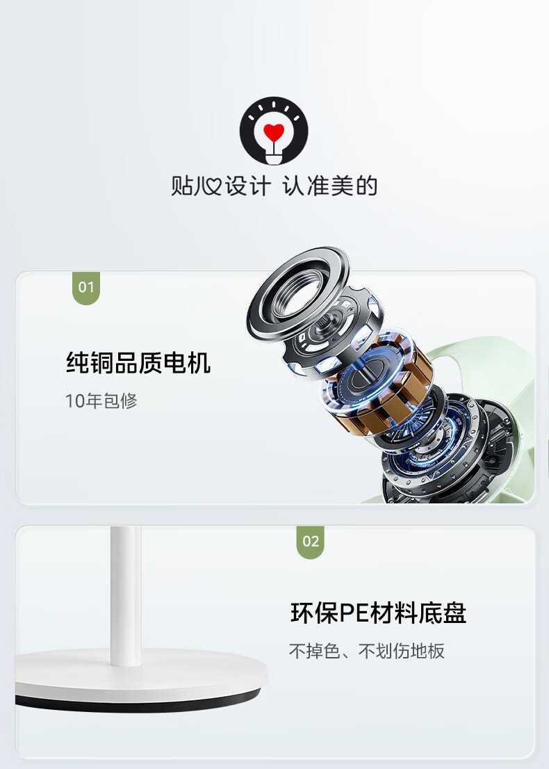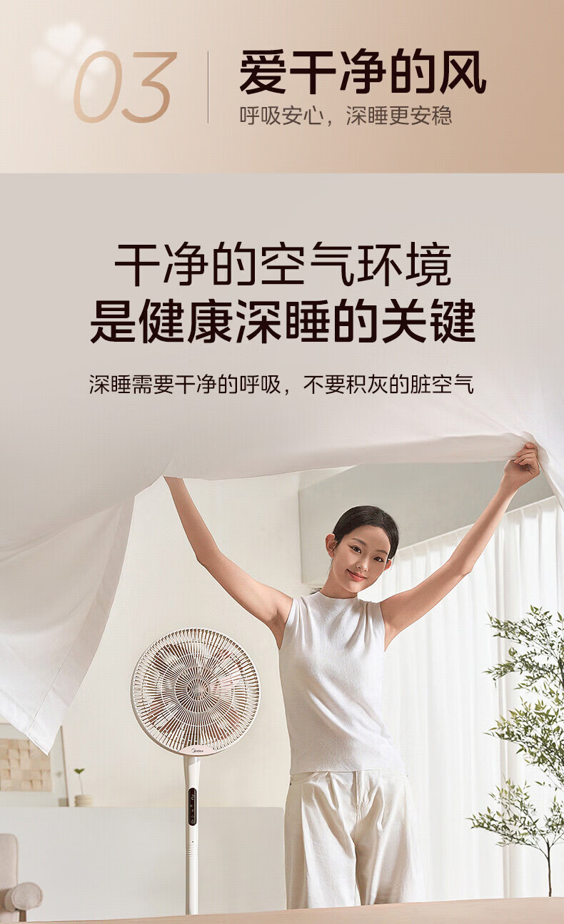 美的(Midea)风扇落地扇幸运草安睡电风扇系列 家用智能变频风扇大风量客厅宿舍轻音柔风 卧室桌面台式立式两用 幸运草2S丨风随温变