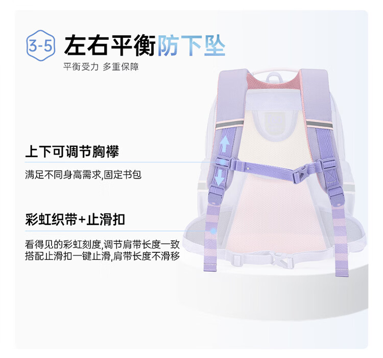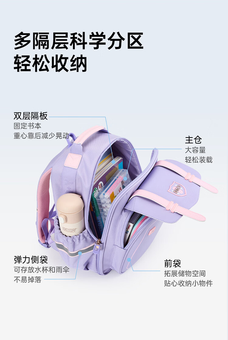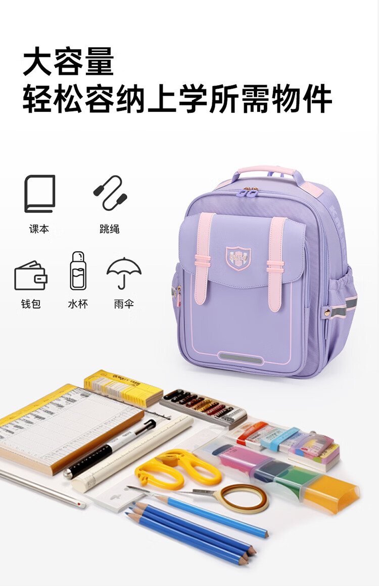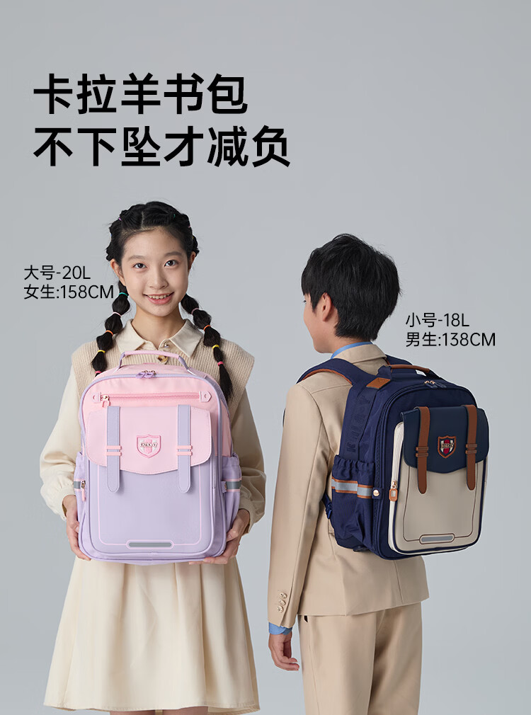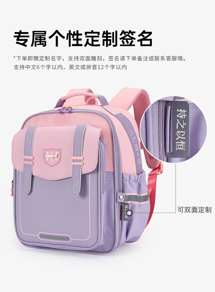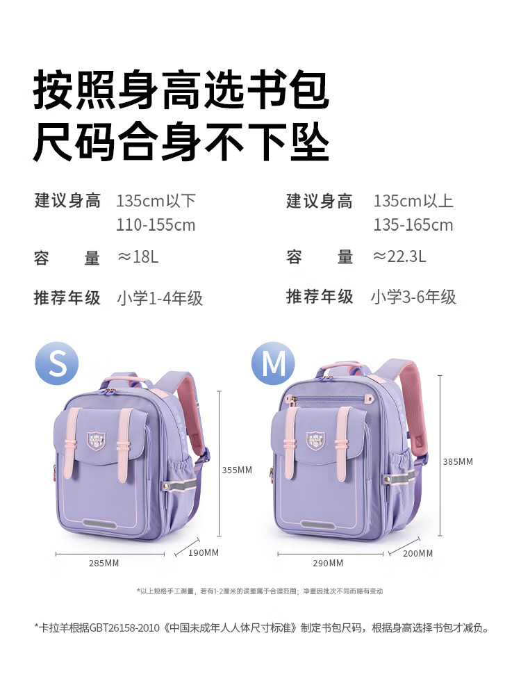 卡拉羊【蒋勤勤代言】小学生书包18/22L五维防下坠减负男女双肩包背包 【22L】薰衣草紫