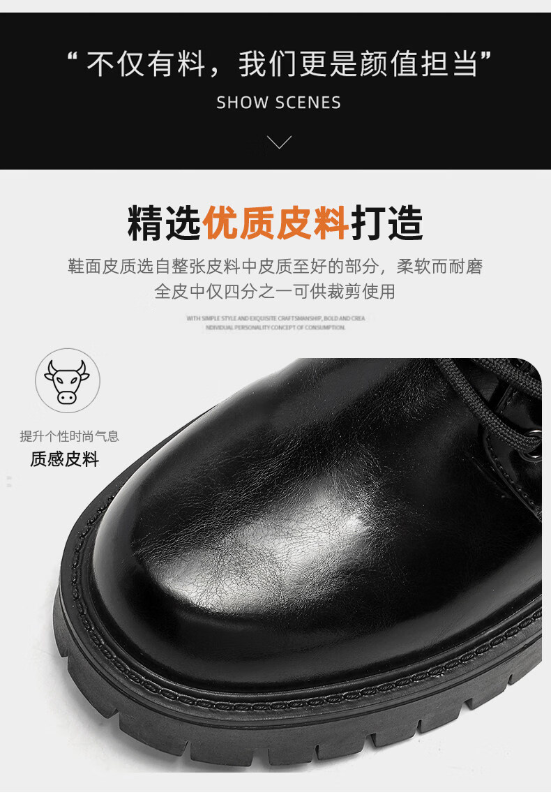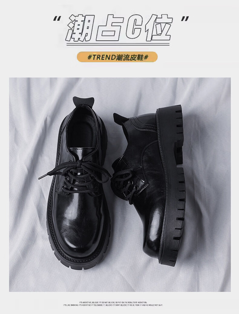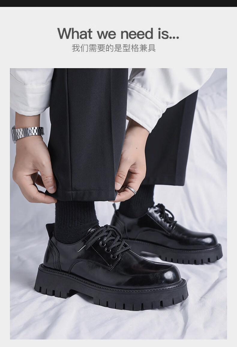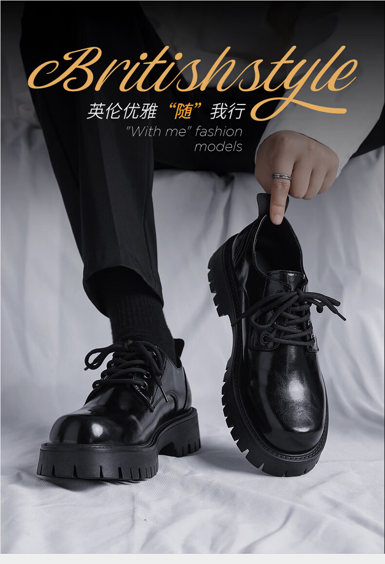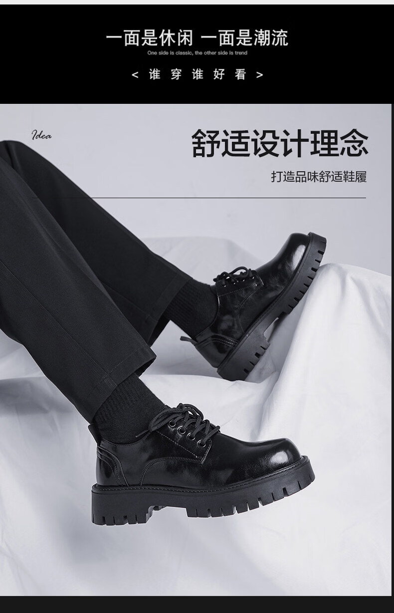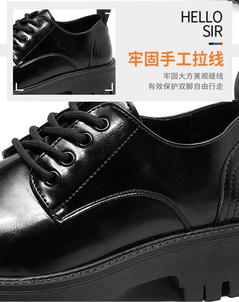 Walker Shop皮鞋男商务轻奢2026新款英伦正装大头皮鞋厚底内增高休闲皮鞋男款 黑色 39