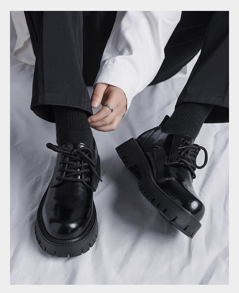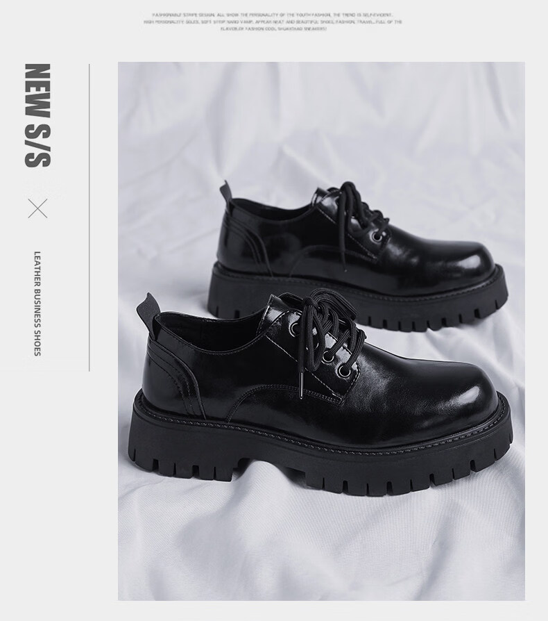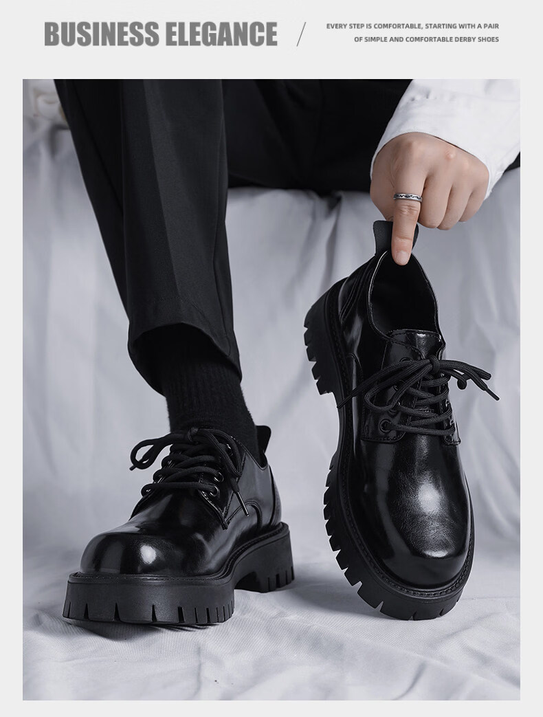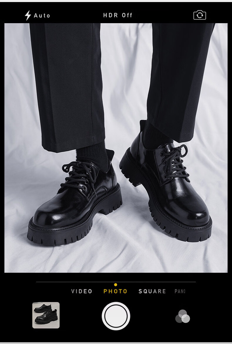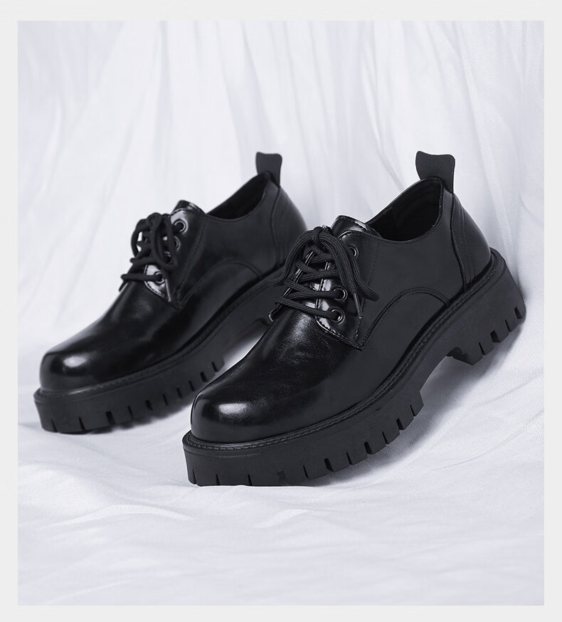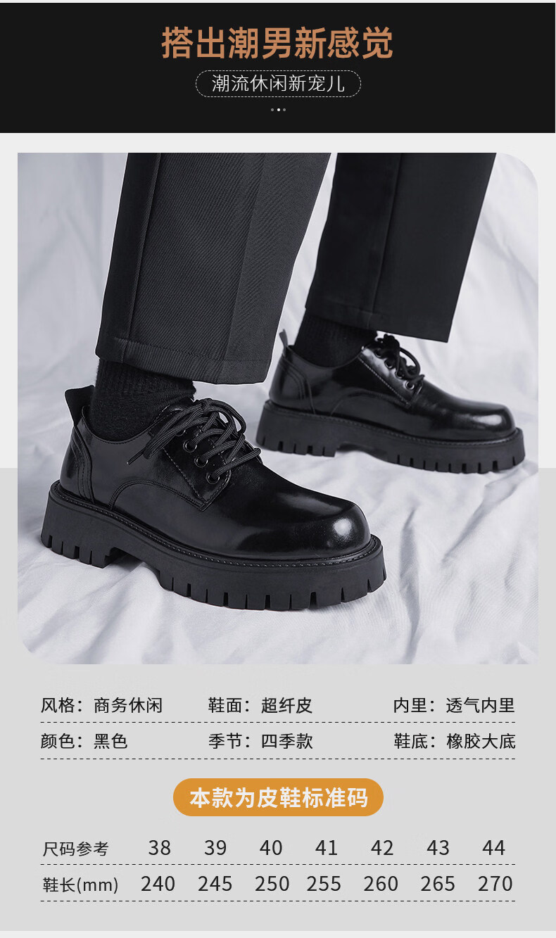 Walker Shop皮鞋男商务轻奢2026新款英伦正装大头皮鞋厚底内增高休闲皮鞋男款 黑色 39