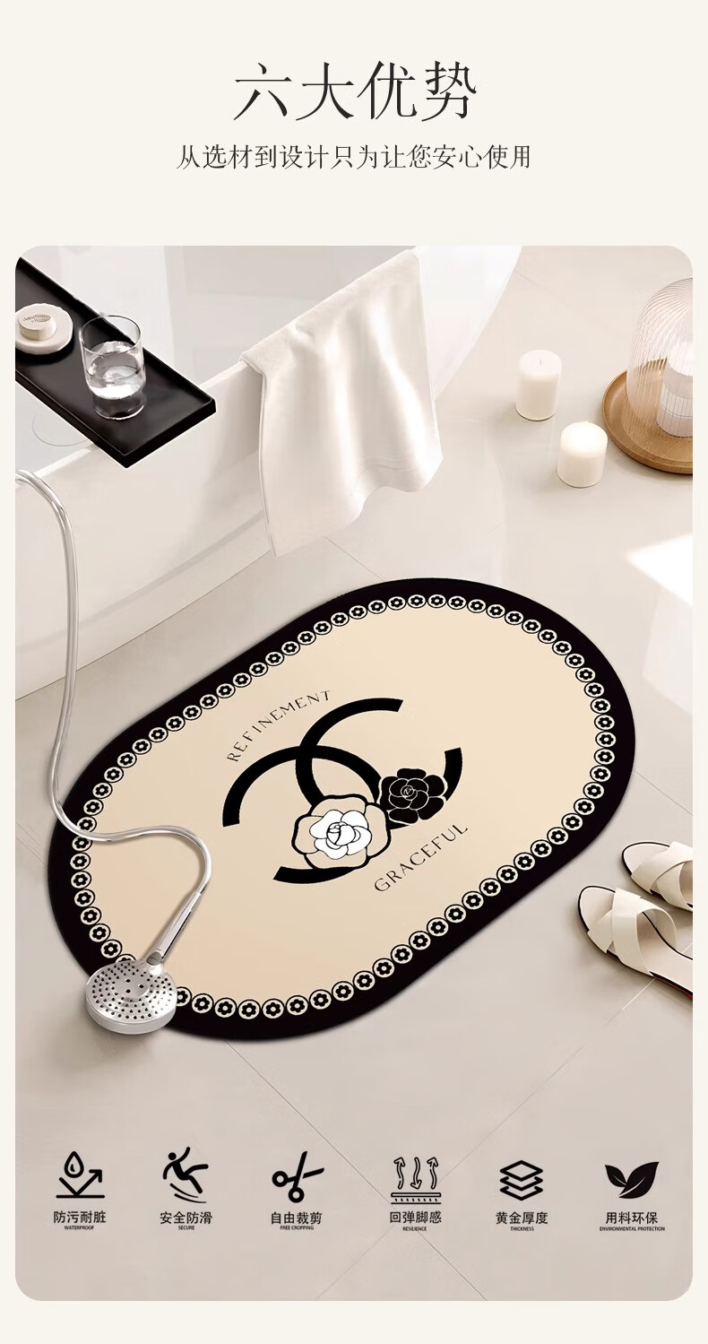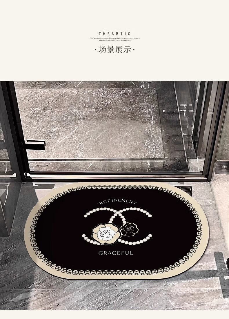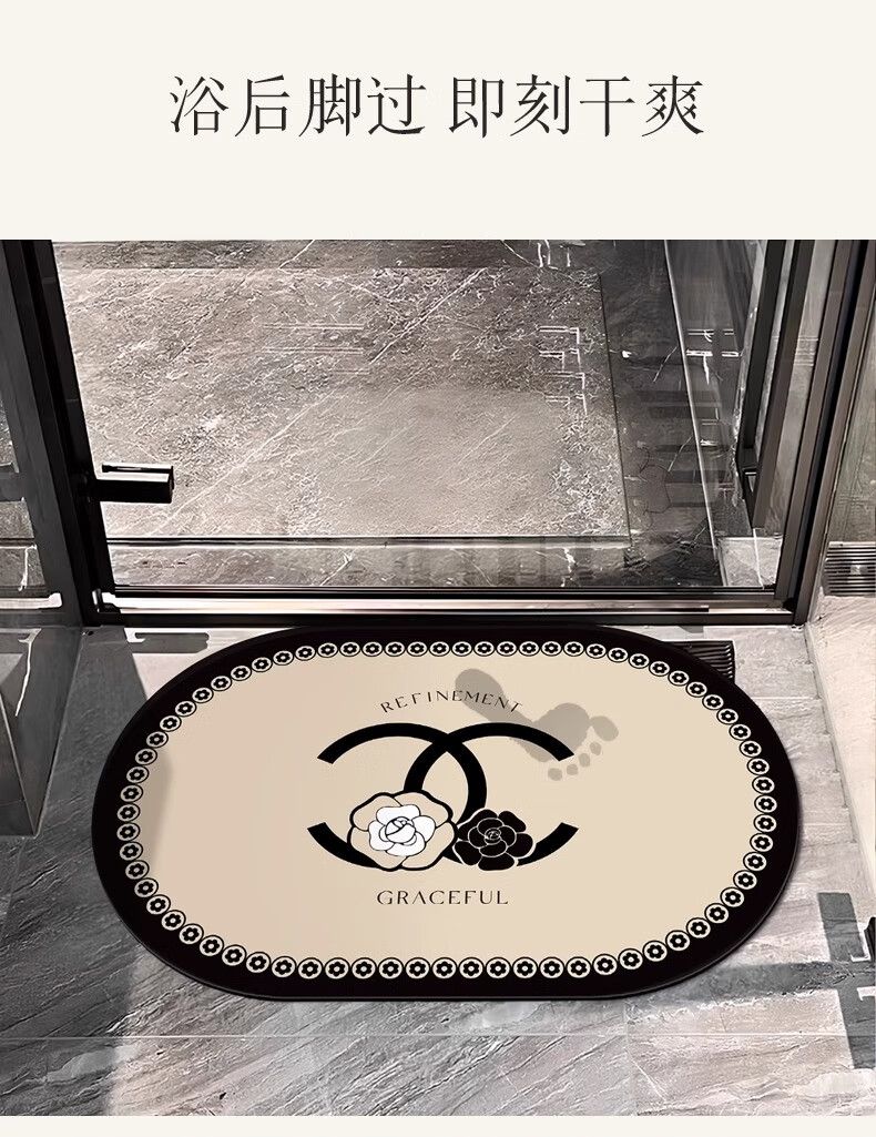 金玉铭川进门吸水速干地垫卫生间门口浴室防滑脚垫子厕所踩脚地垫 GZN-香风山茶花 40X60cm【吸水速干超值款】