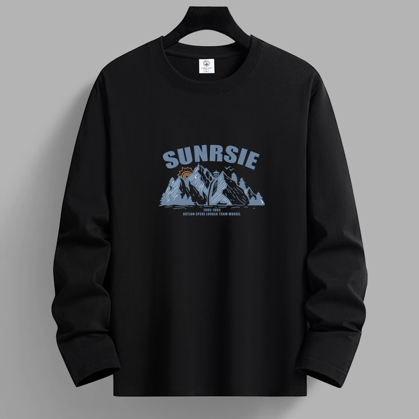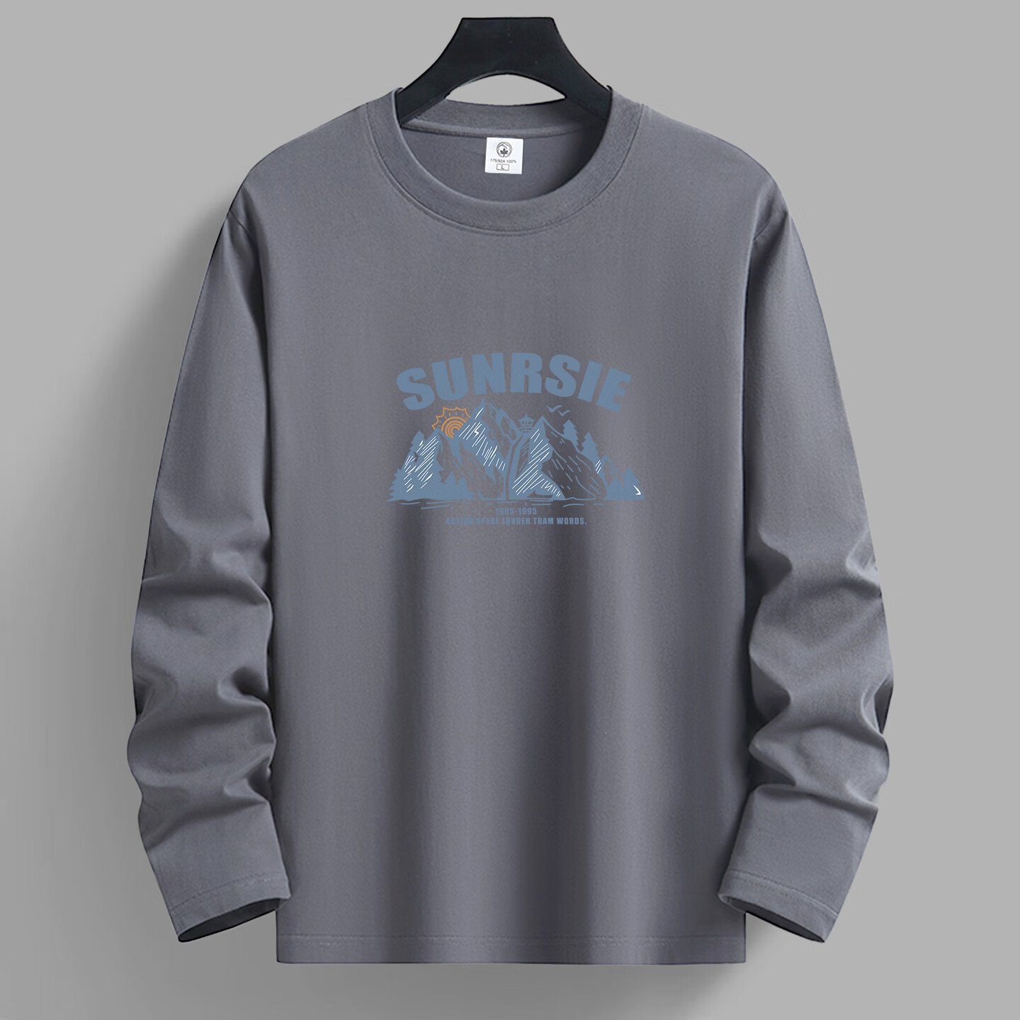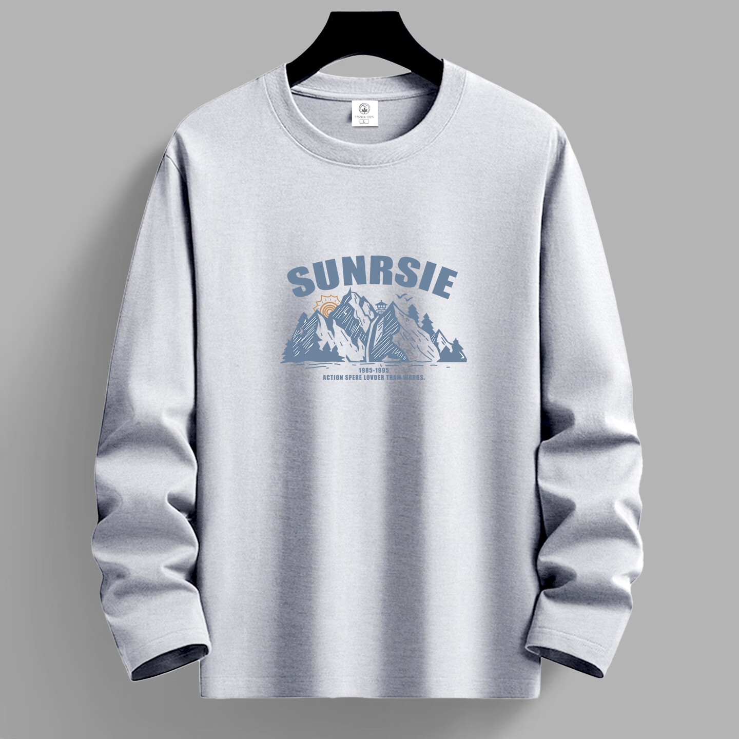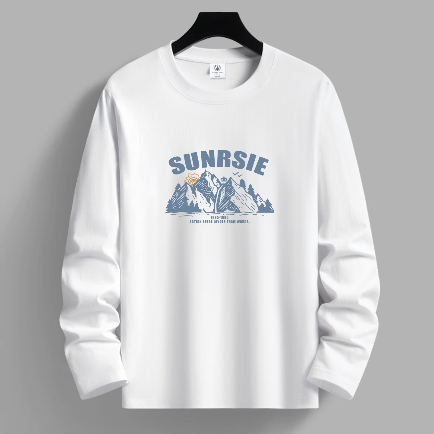 布卡澜琦春秋季新款男士圆领长袖T恤时尚潮流印花圆领长袖休闲体恤衫卫衣 白色SUN山峰长袖 XL 【建议120-135斤】