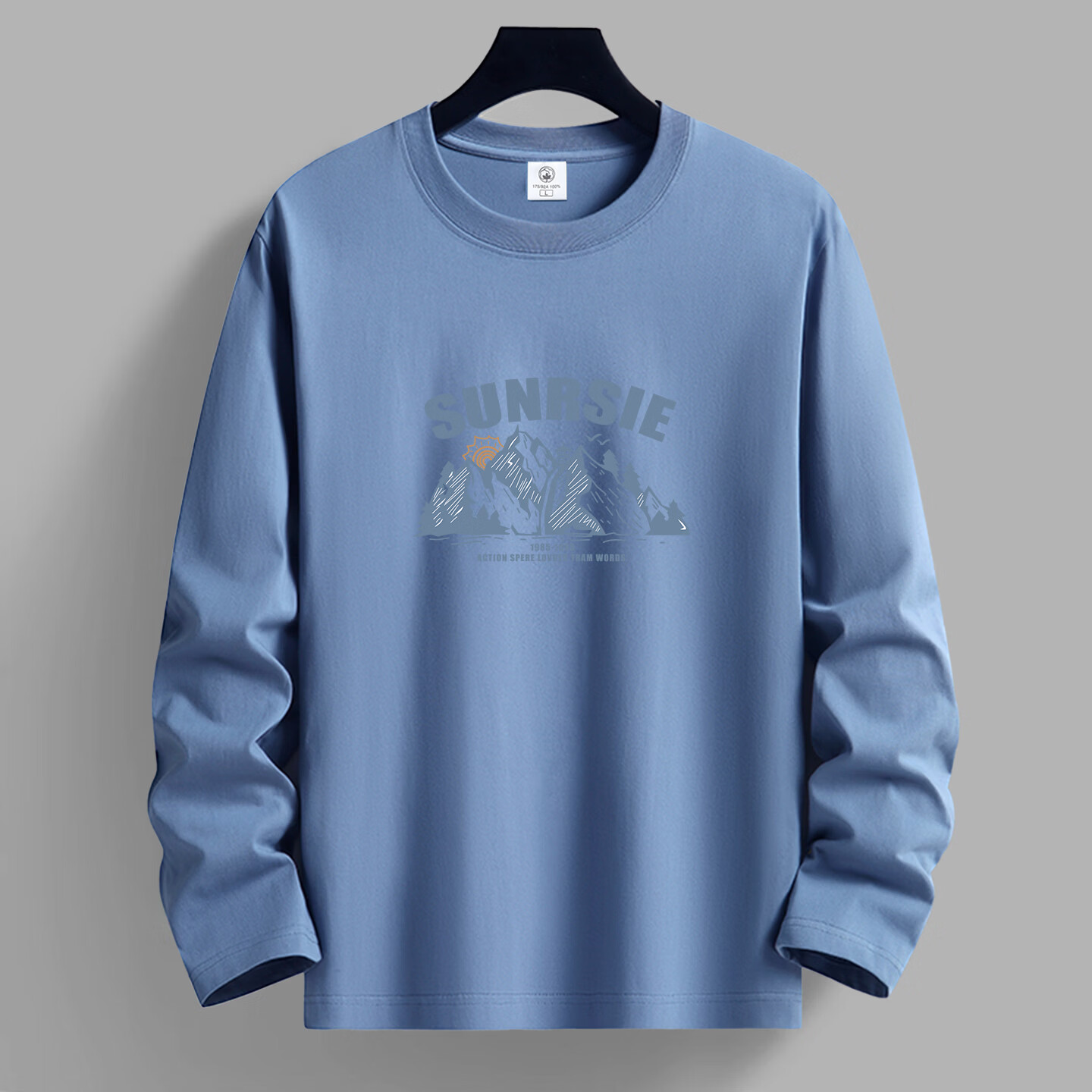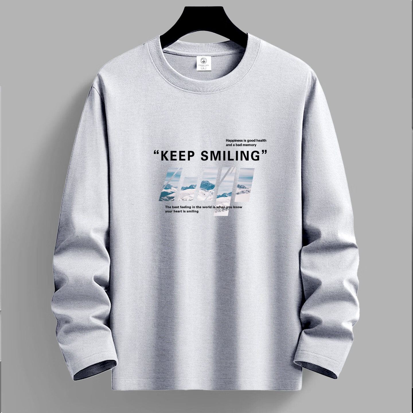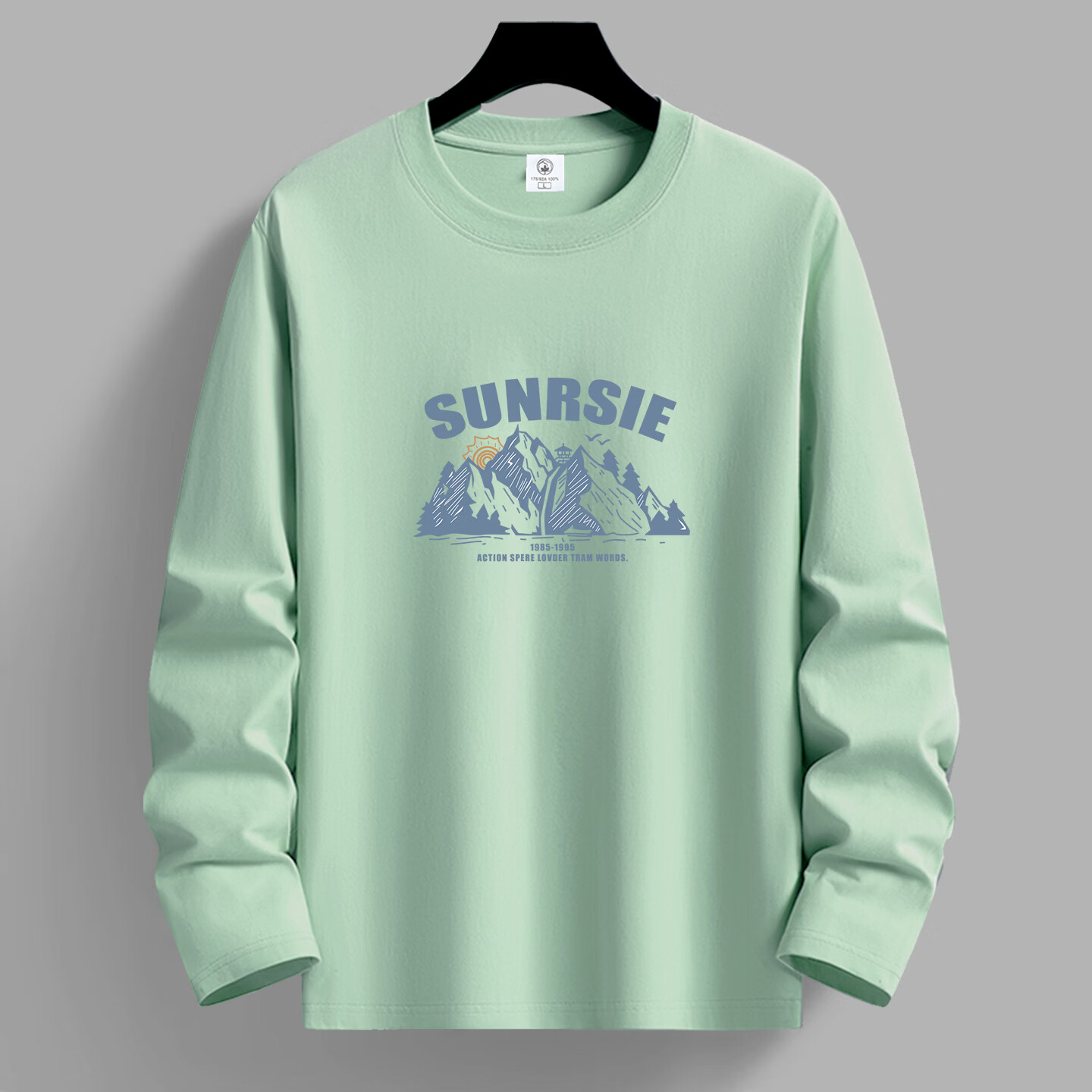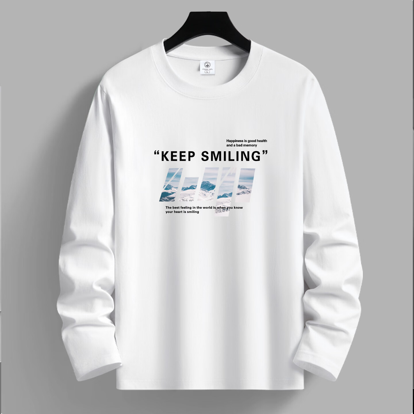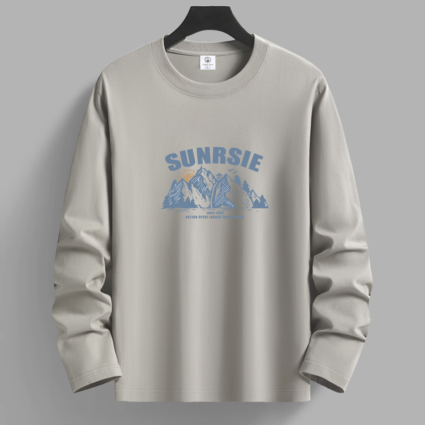 布卡澜琦春秋季新款男士圆领长袖T恤时尚潮流印花圆领长袖休闲体恤衫卫衣 白色SUN山峰长袖 XL 【建议120-135斤】
