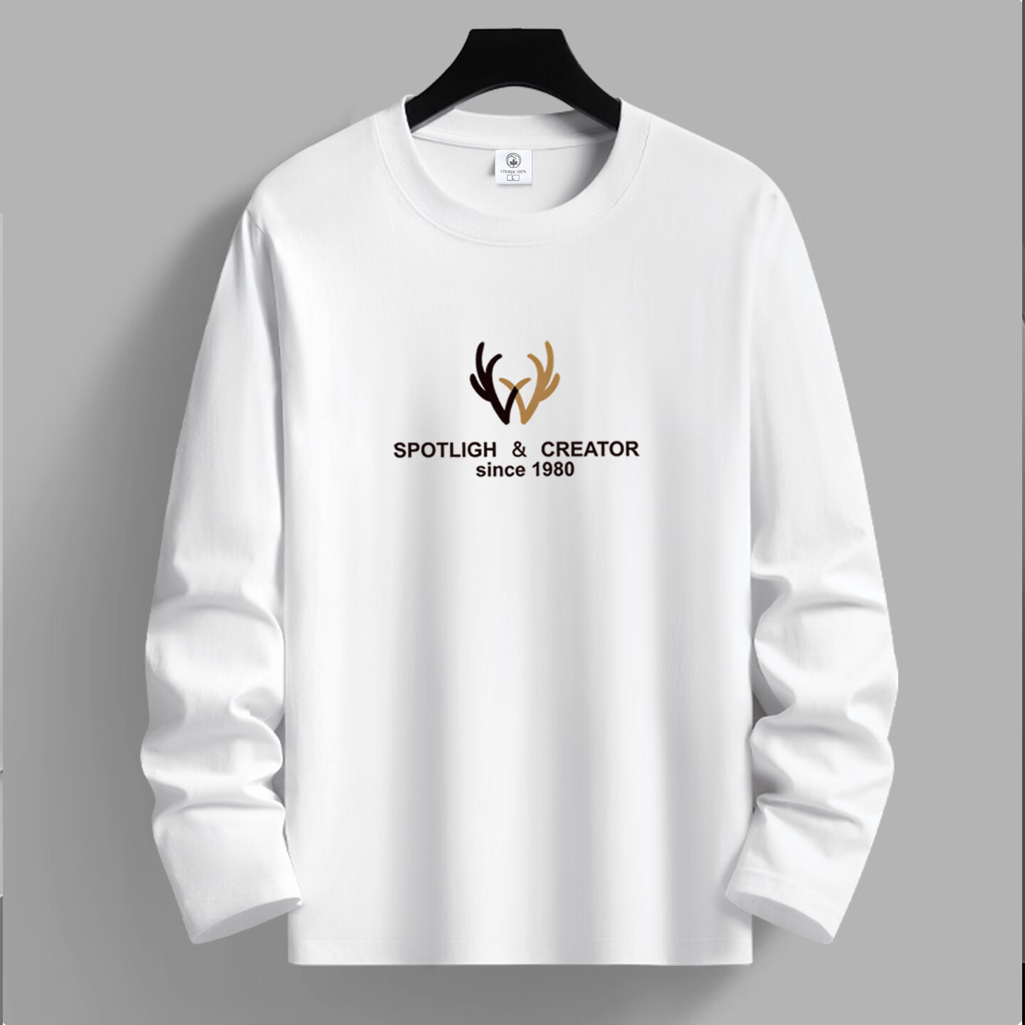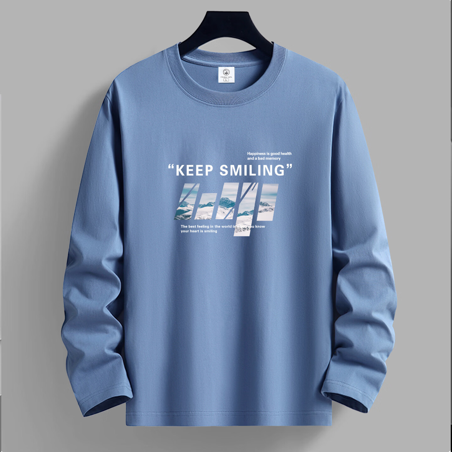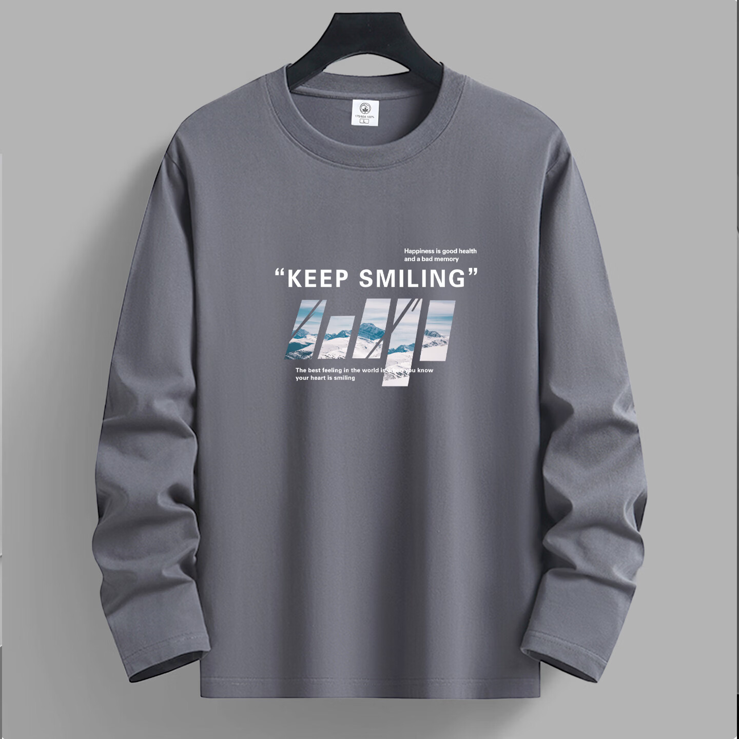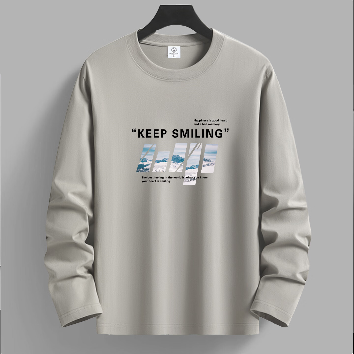 布卡澜琦春秋季新款男士圆领长袖T恤时尚潮流印花圆领长袖休闲体恤衫卫衣 白色SUN山峰长袖 XL 【建议120-135斤】