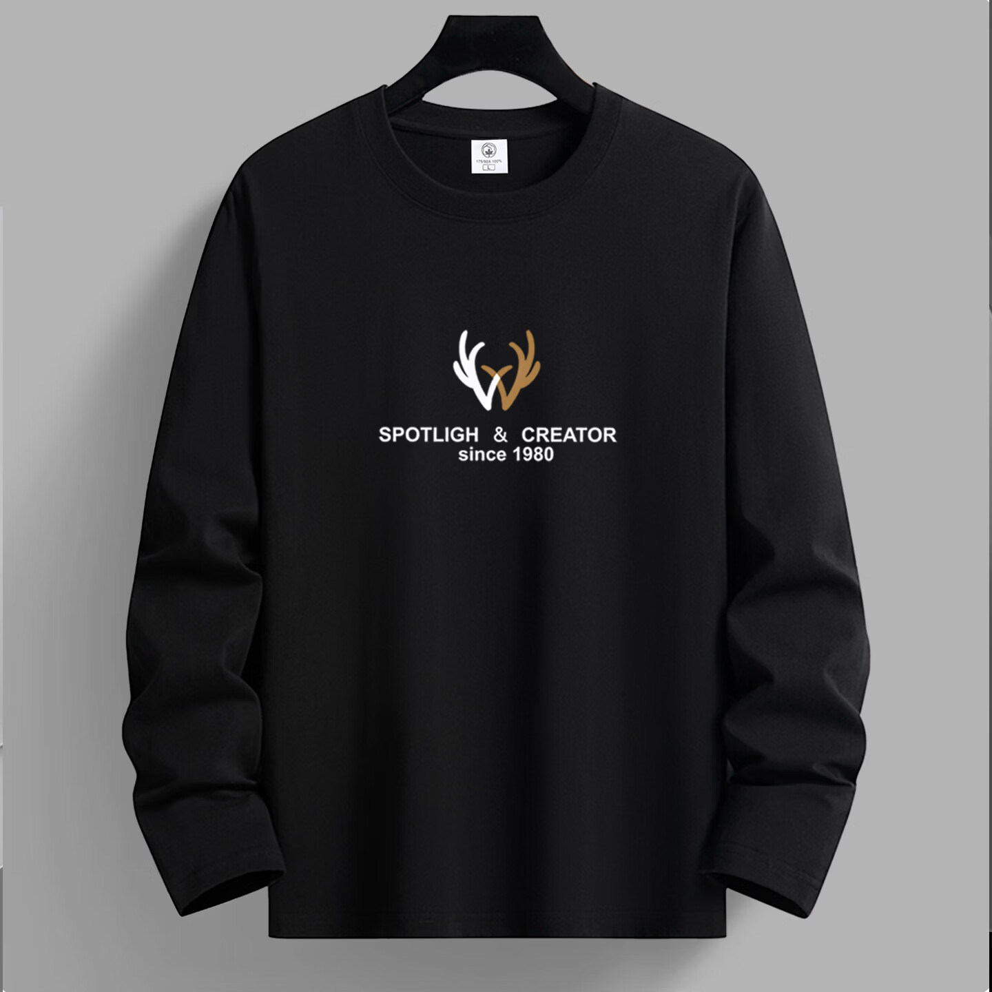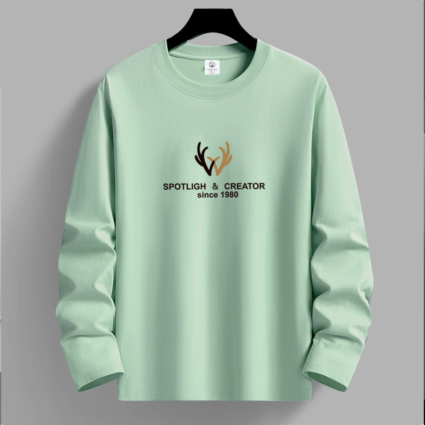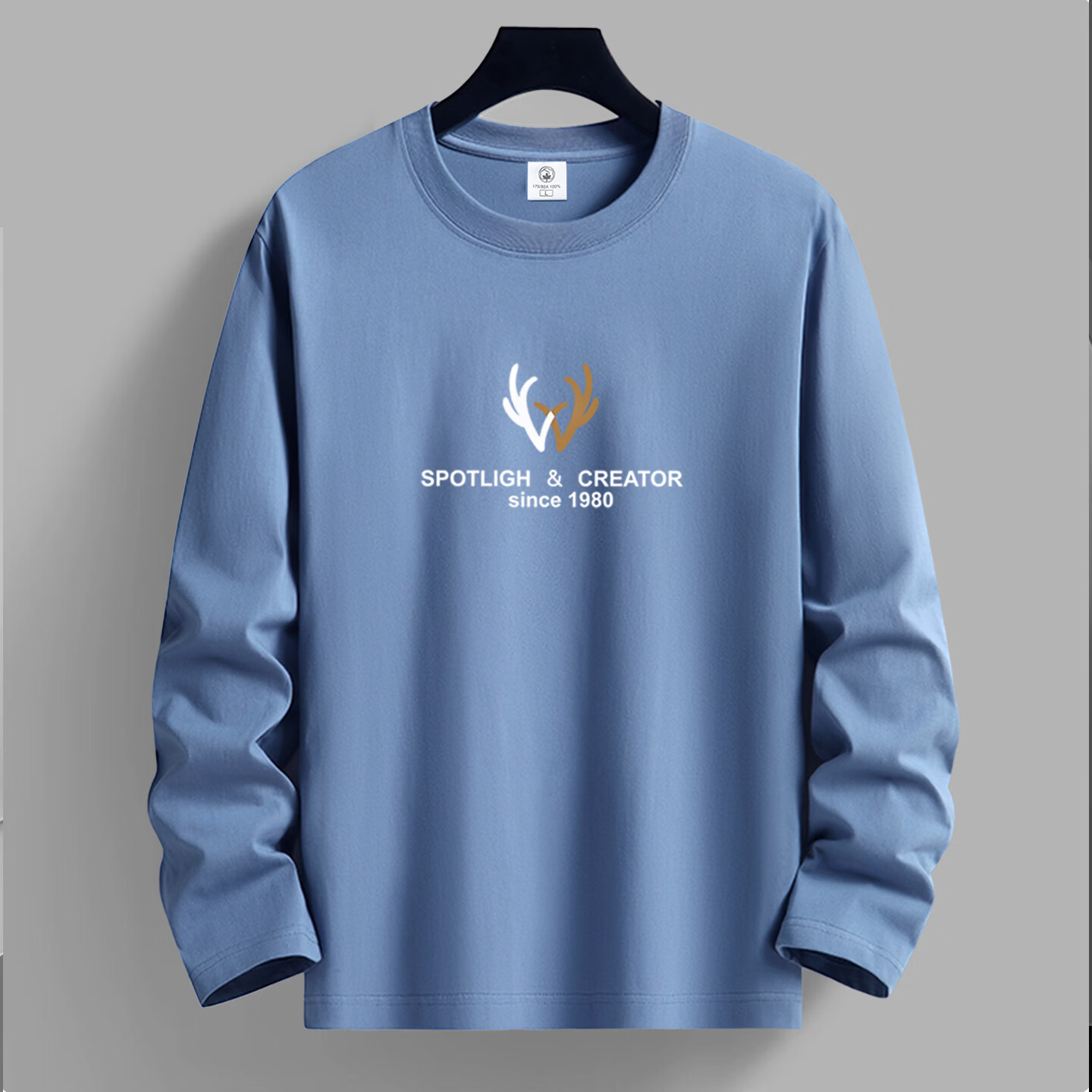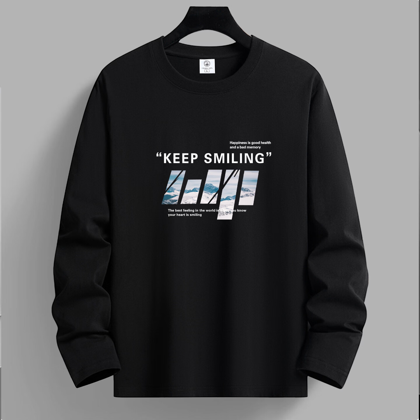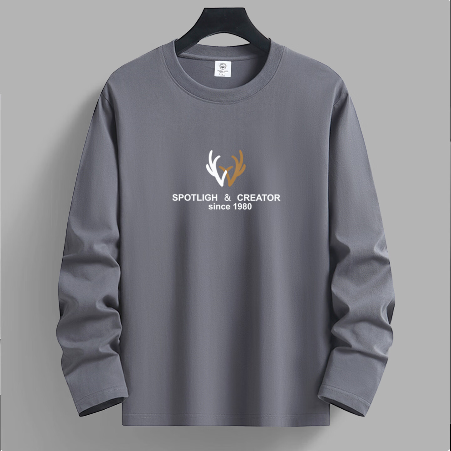 布卡澜琦春秋季新款男士圆领长袖T恤时尚潮流印花圆领长袖休闲体恤衫卫衣 白色SUN山峰长袖 XL 【建议120-135斤】