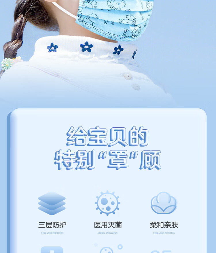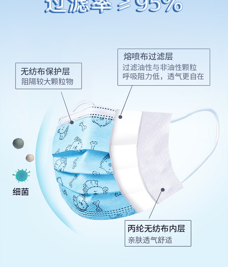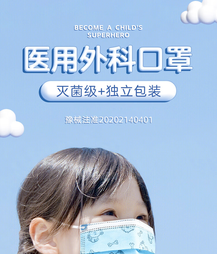 美仕康儿童款多花色独立包装医用外科口罩灭菌级轻薄透气医疗防护口罩 印花狗100只