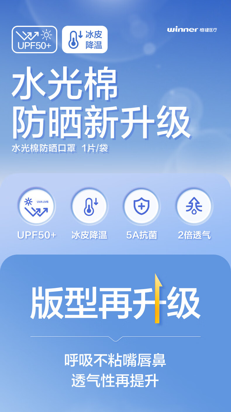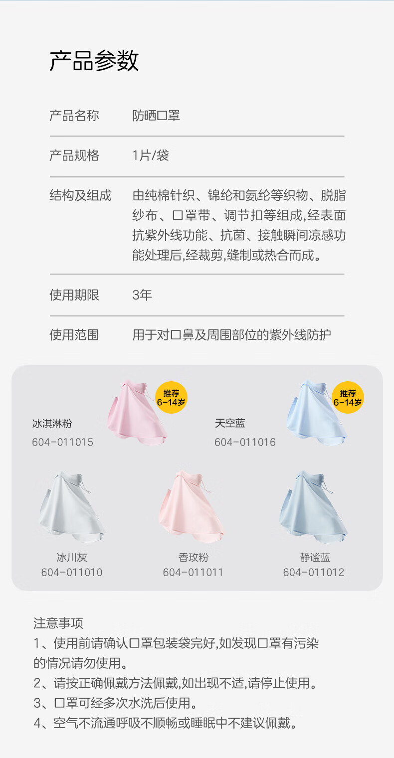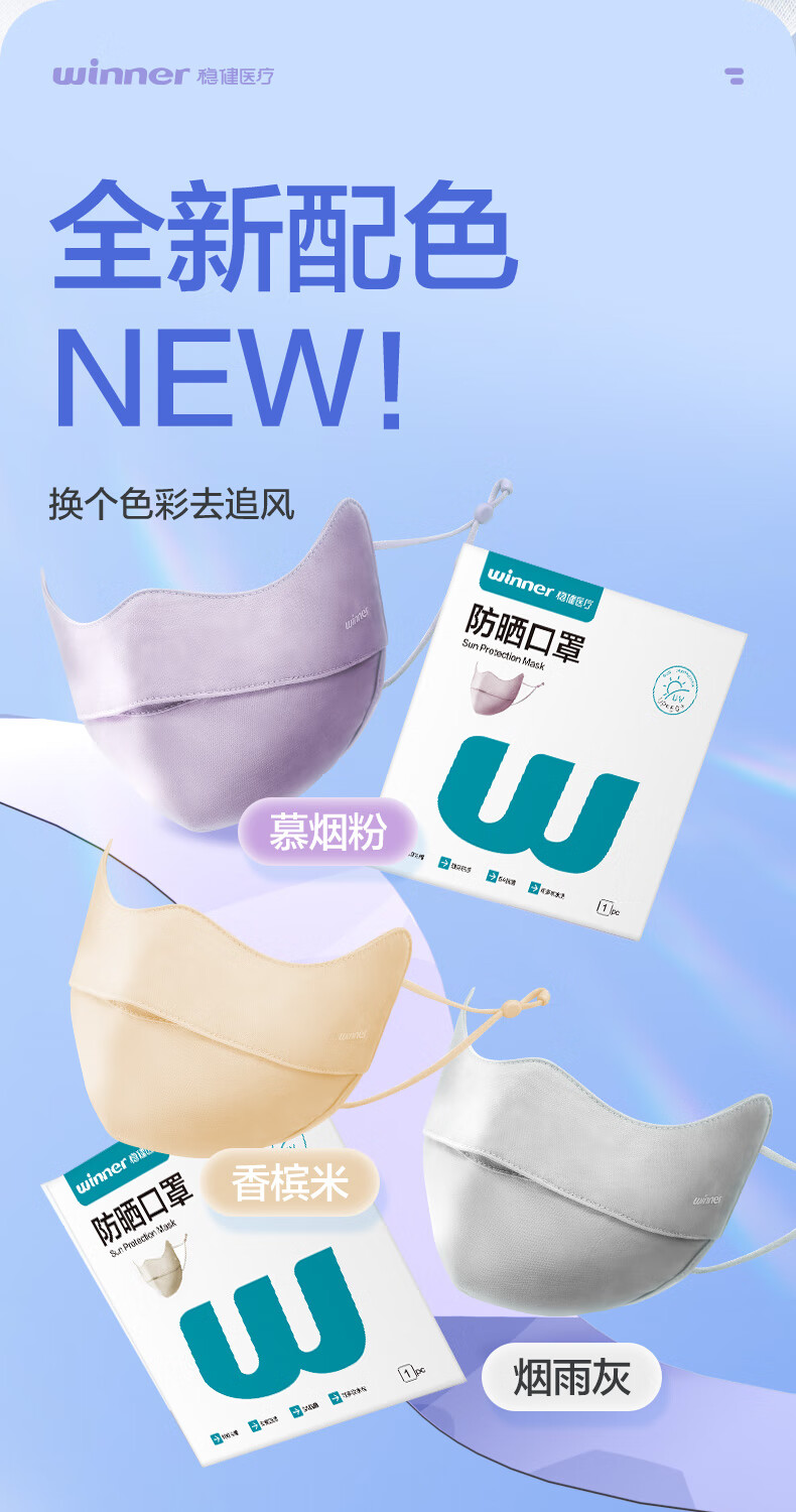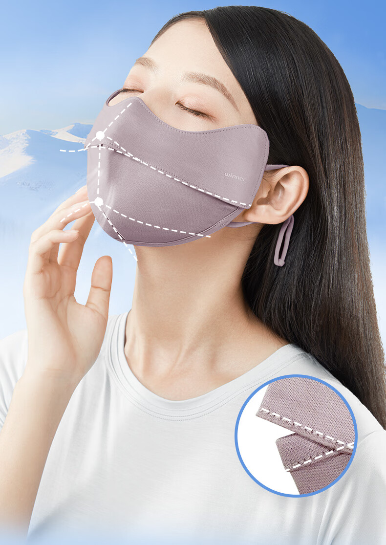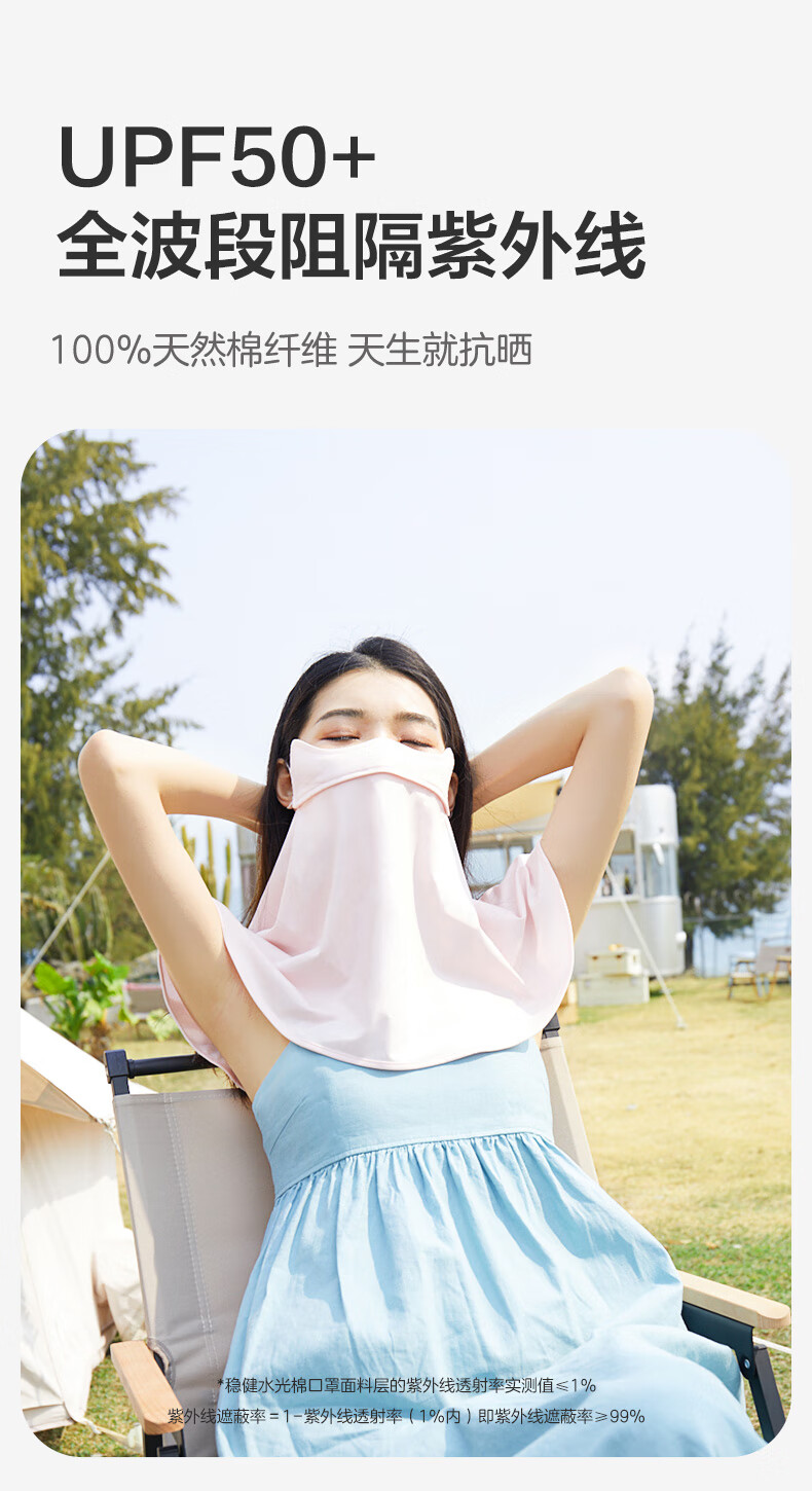 稳健防晒口罩UPF50+水光棉5A级抗菌紫外线防护3D立体瘦脸轻薄可水洗 成人防晒口置慕烟粉M码