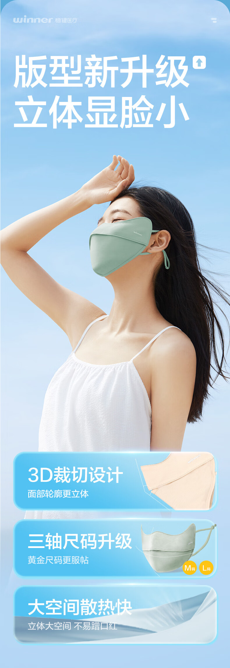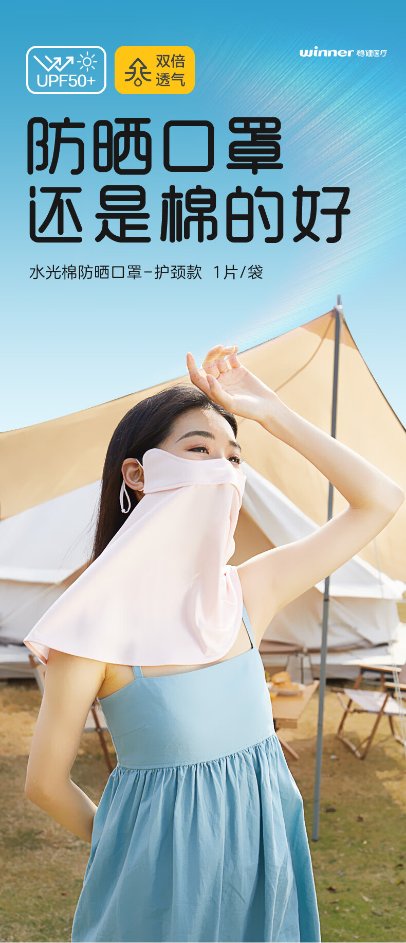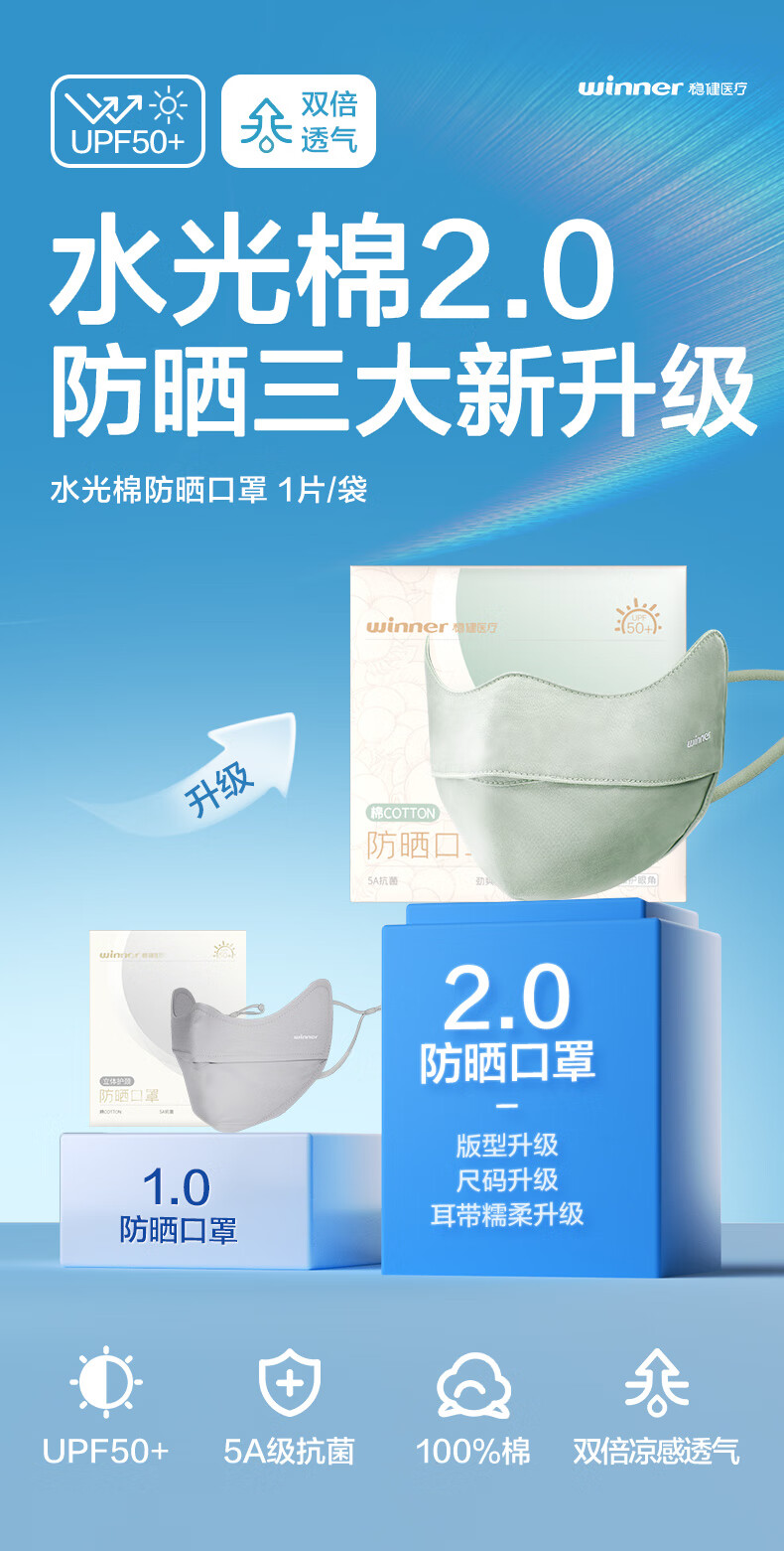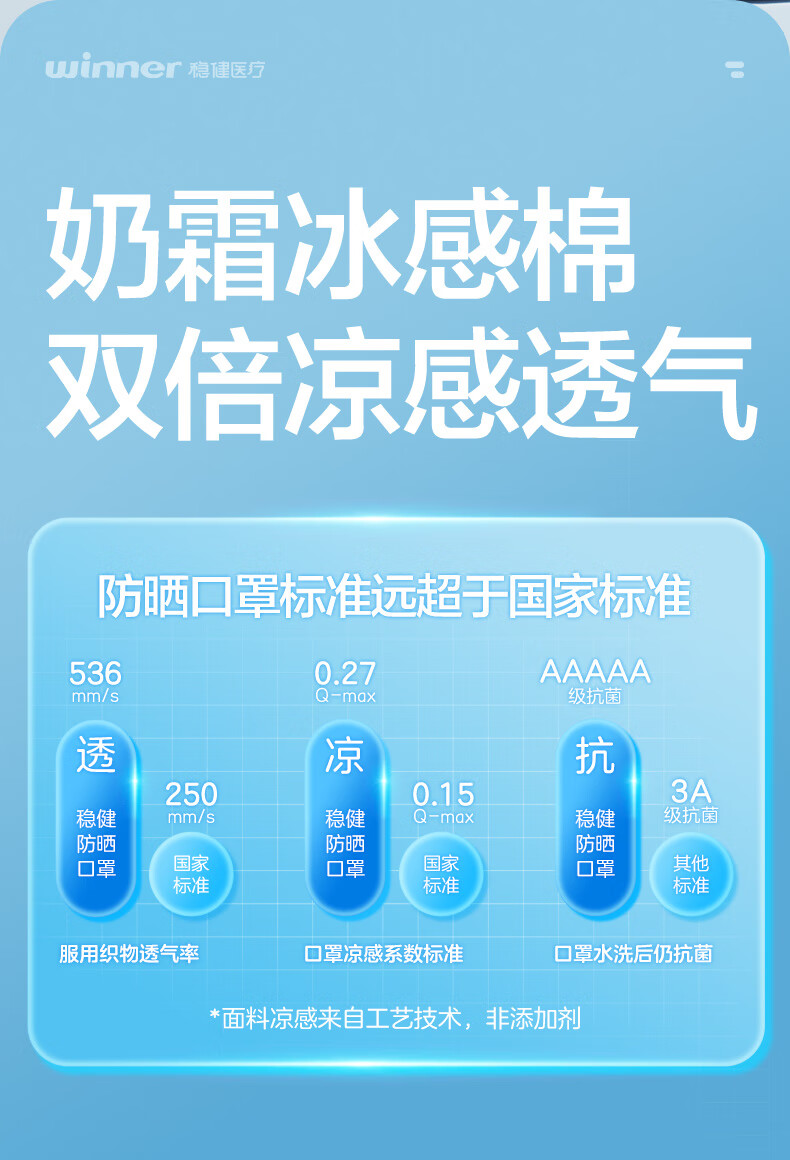 稳健防晒口罩UPF50+水光棉5A级抗菌紫外线防护3D立体瘦脸轻薄可水洗 成人防晒口置慕烟粉M码