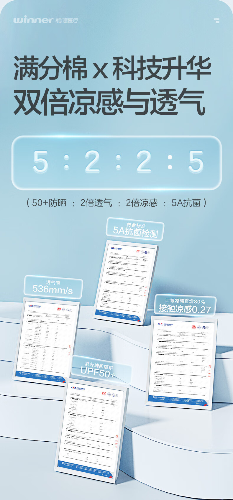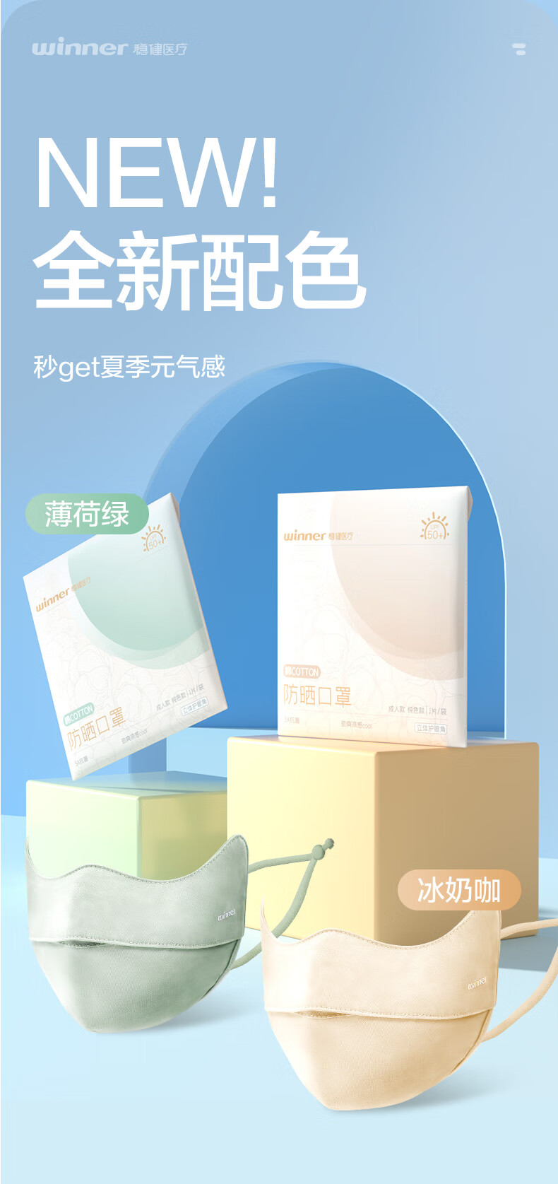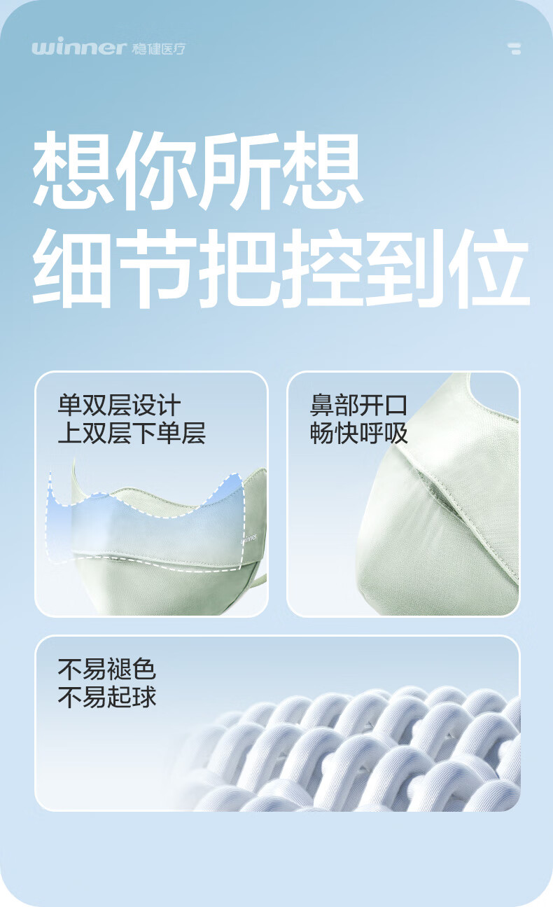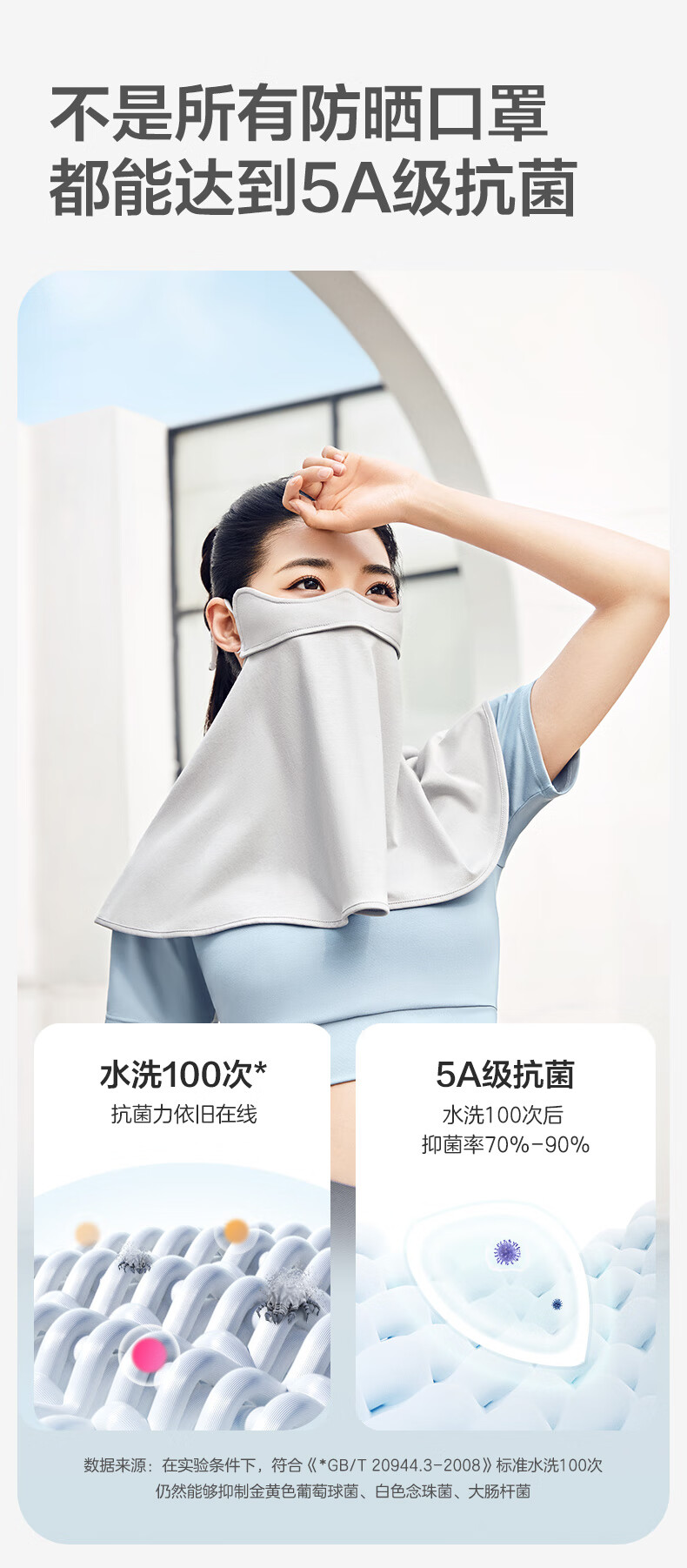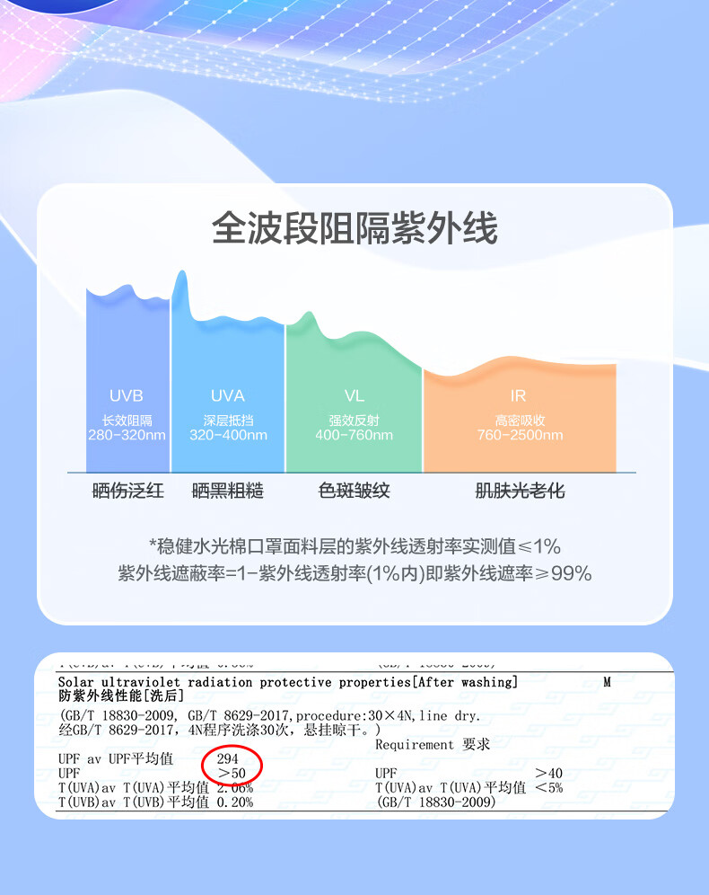 稳健防晒口罩UPF50+水光棉5A级抗菌紫外线防护3D立体瘦脸轻薄可水洗 成人防晒口置慕烟粉M码