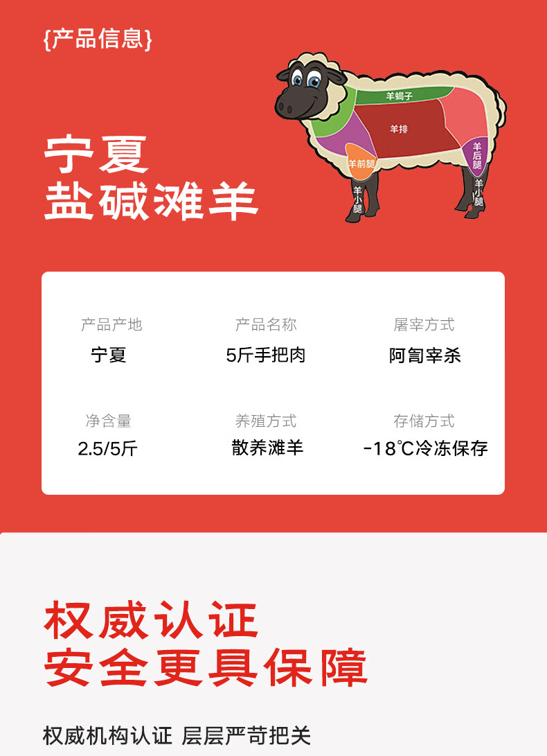 宁夏滩羊羊肉生鲜羊腿羊排全羊半羊净重5斤手把肉清炖烧烤食材 手把肉5斤