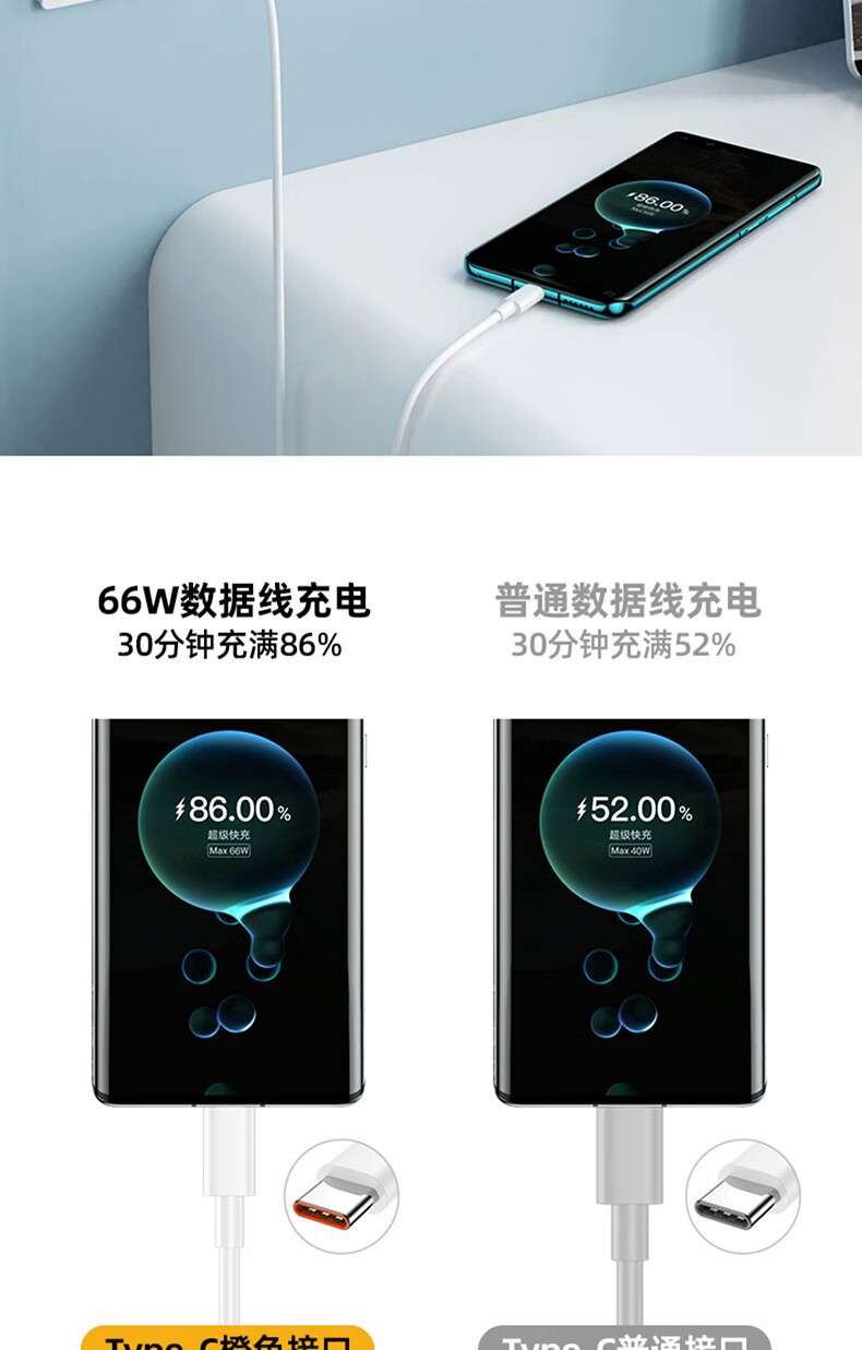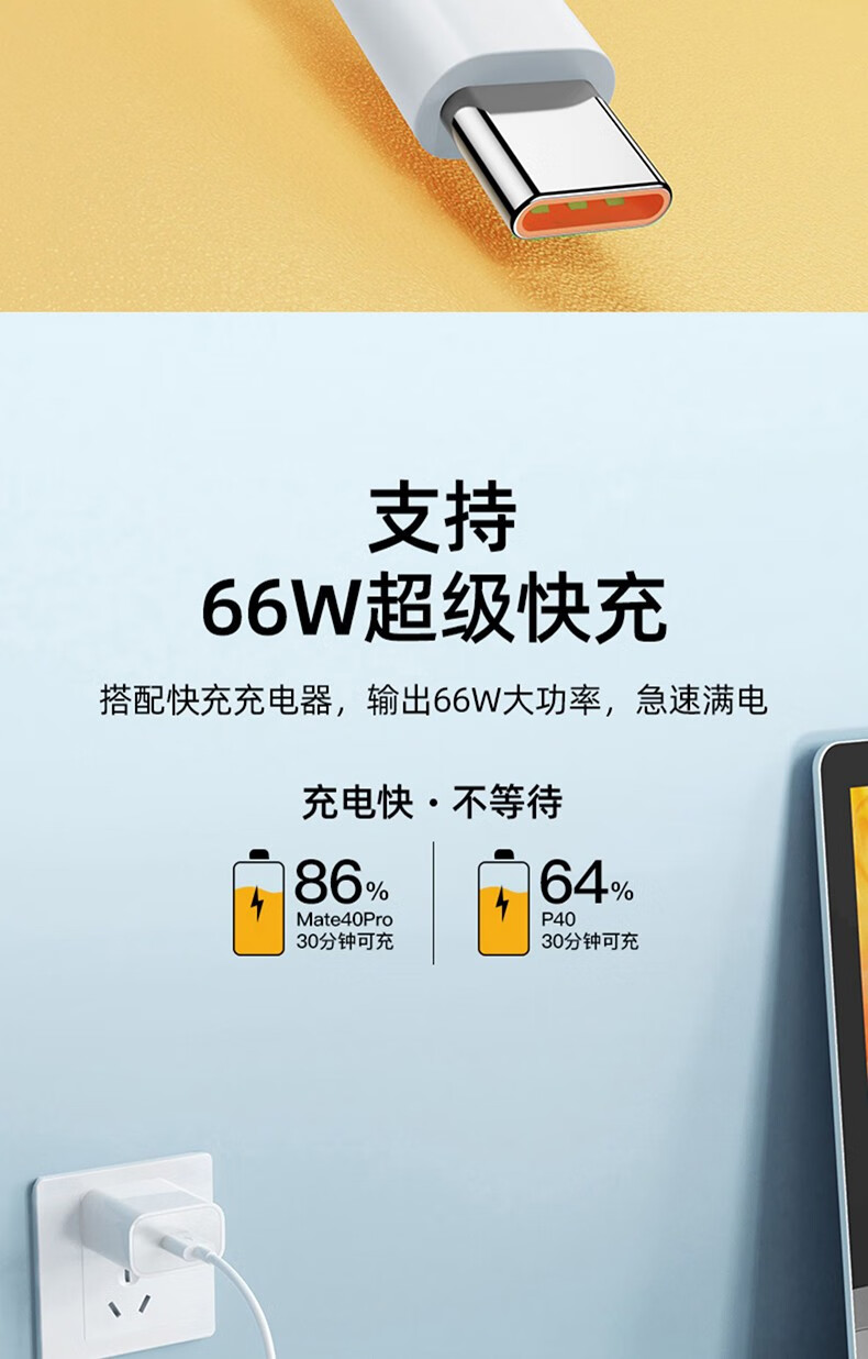 mijv适用华为66w充电器6A数据线Type-c超级快充mate60pro mate80 nova12/13/14快充线pura70/mate70 6A超级快充线66W/100W【0.5米短线】