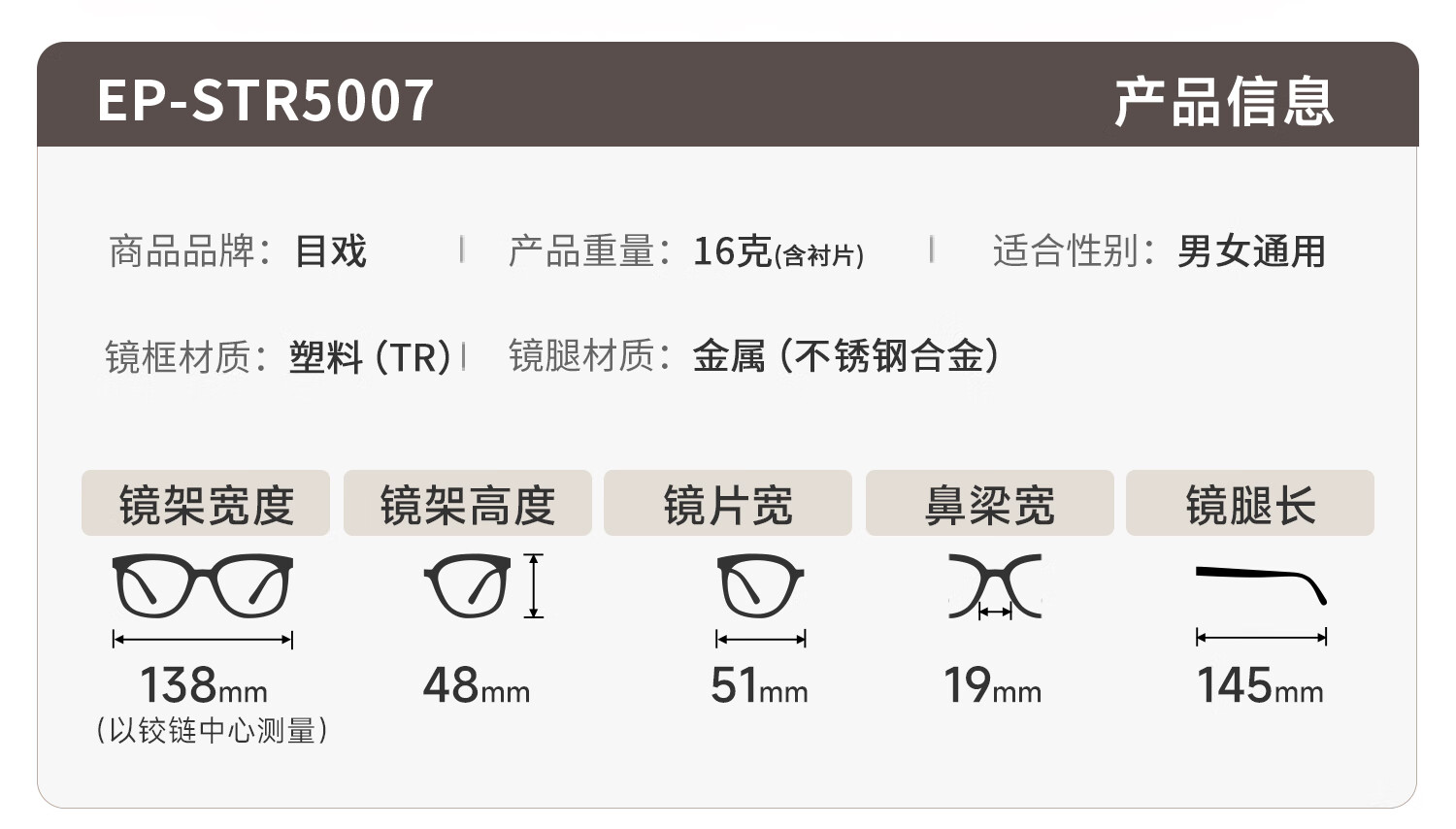 万新(WAN XIN)近视眼镜配眼镜框防蓝光非球面男女组合镜框多种框型选择宝岛配镜 5007-冷茶色-轻盈TR框 1.67多屏防蓝光片【300-700度】