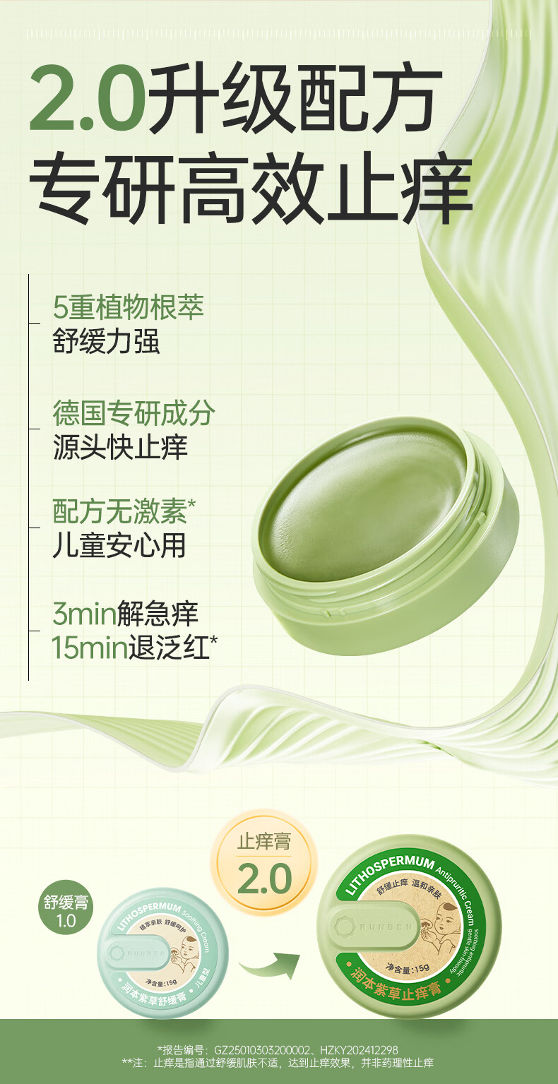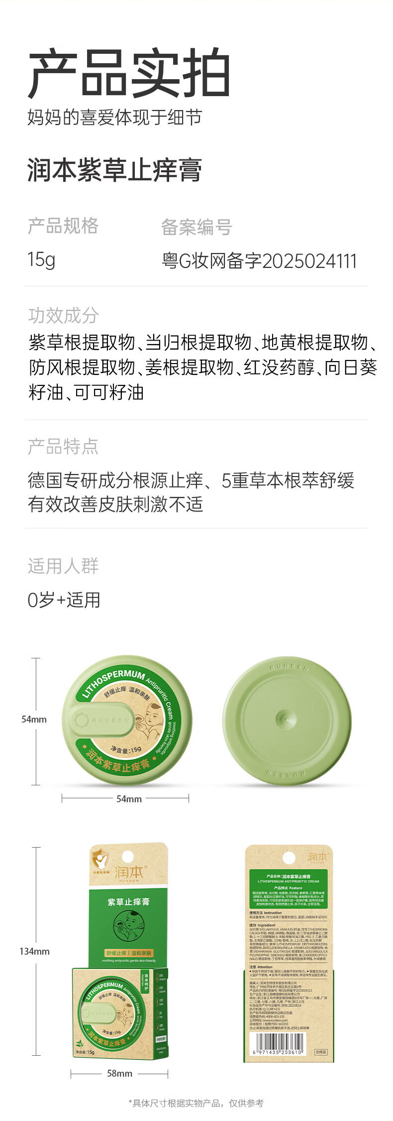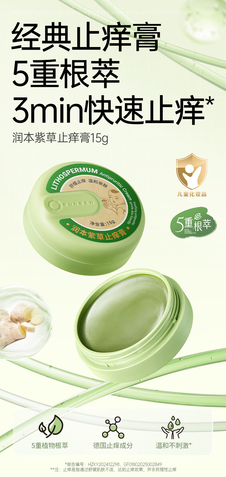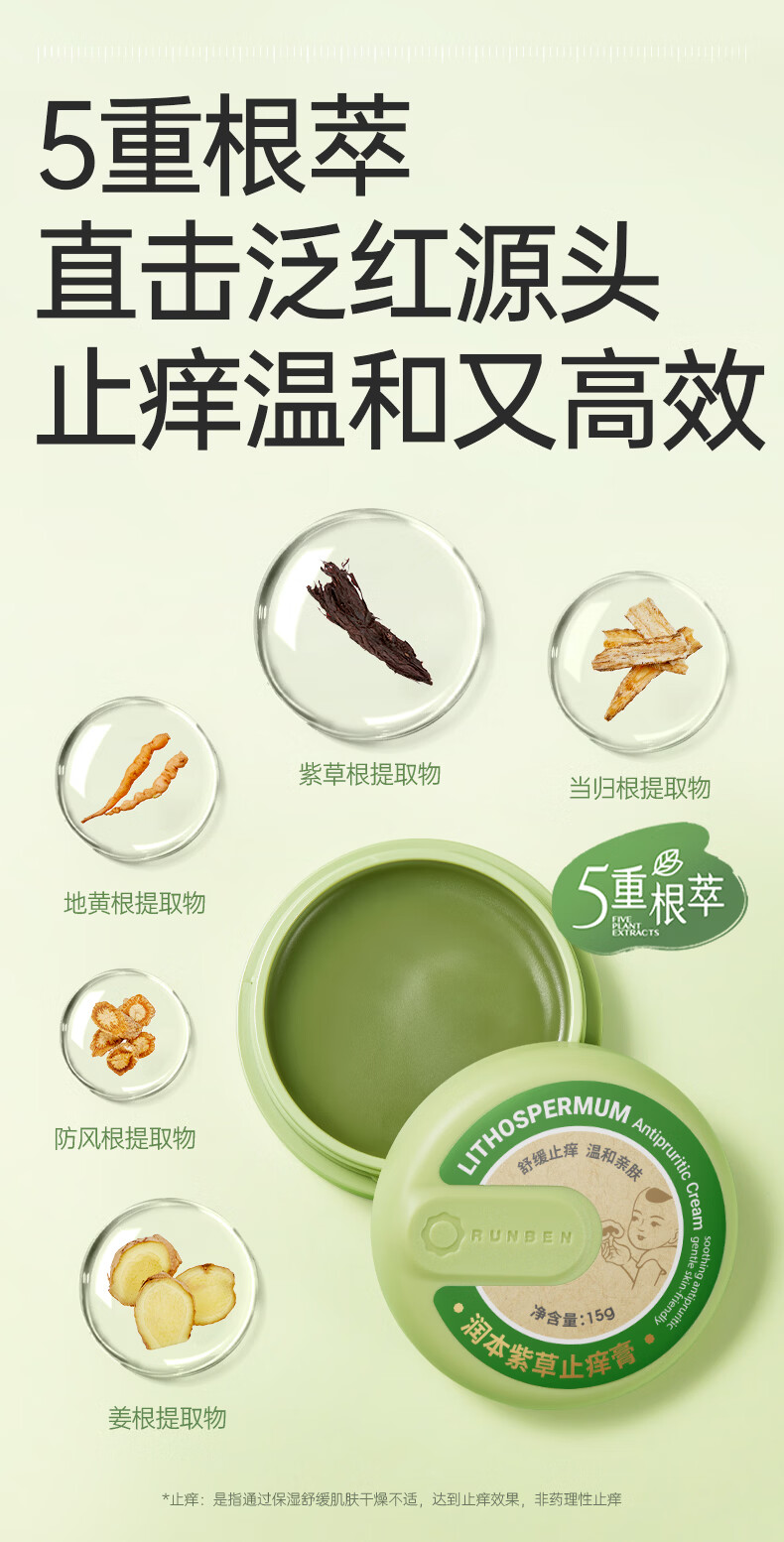 润本(RUNBEN)紫草止痒膏15g儿童舒缓红痒清凉膏蚊虫叮咬多效止痒退红便携 [经典爆款小绿盒]止痒膏15g