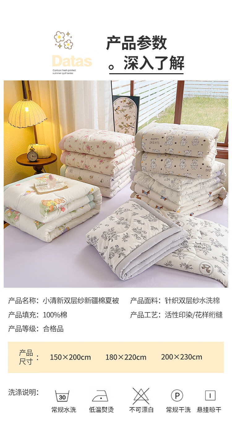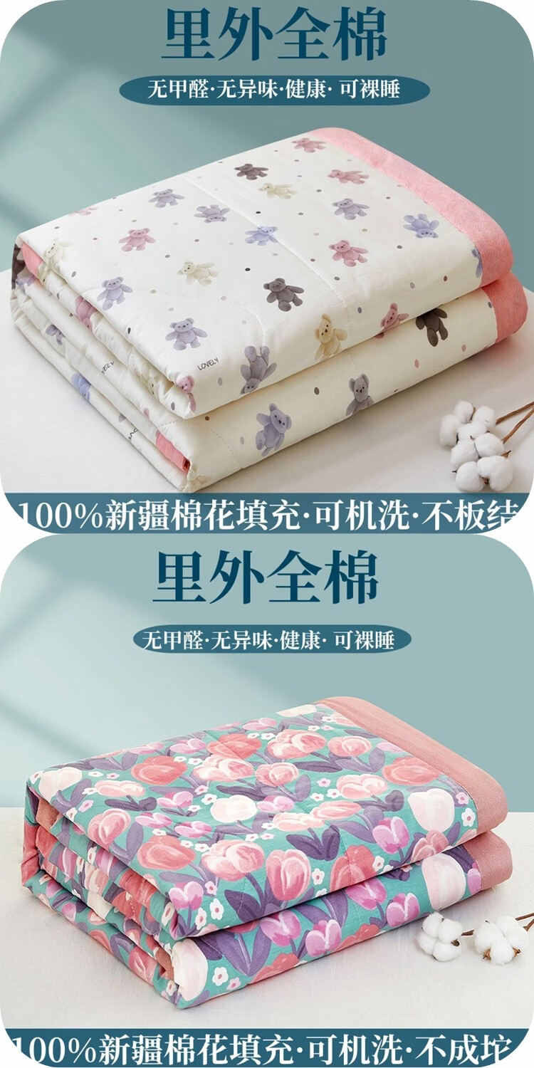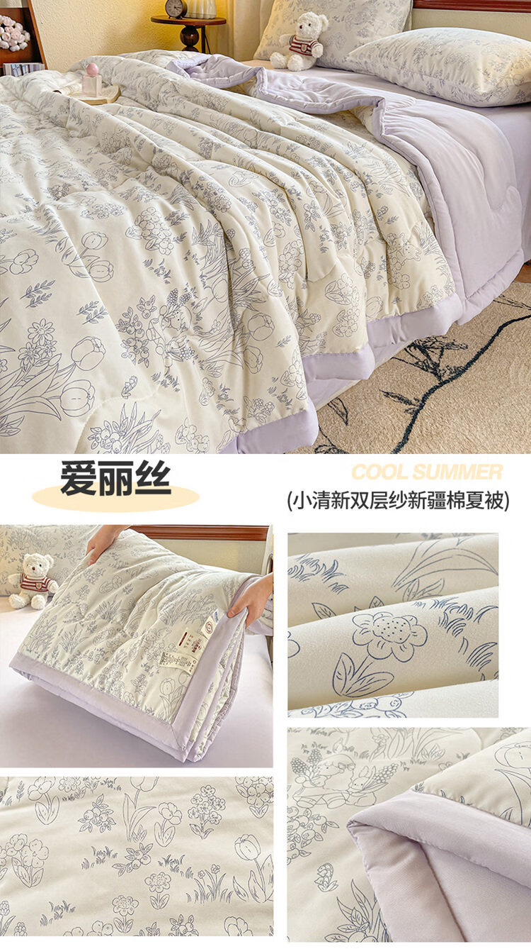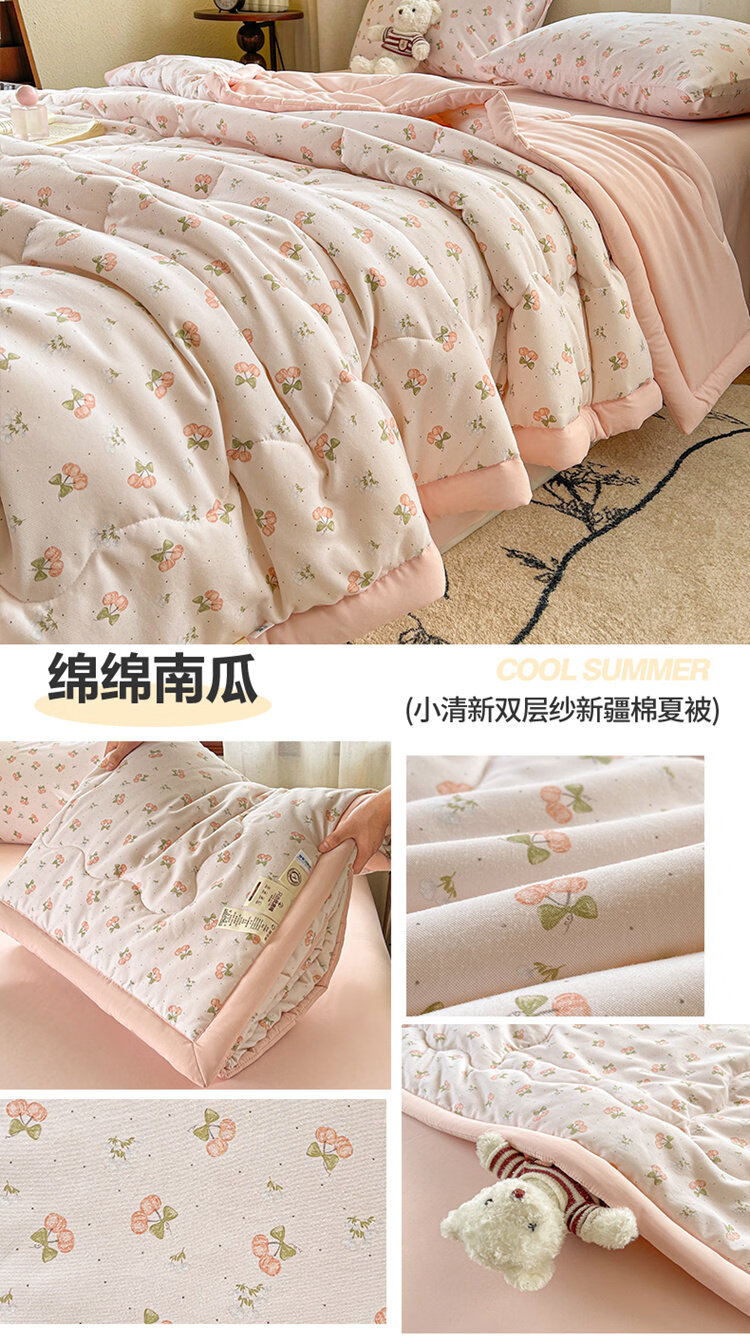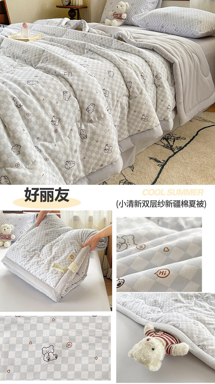 春夏款空调被夏凉棉全棉可机洗子2026芯学生宿舍春秋夏 好丽友【双层纱面料/棉花填充】 双人尺寸200x230cm春秋薄被