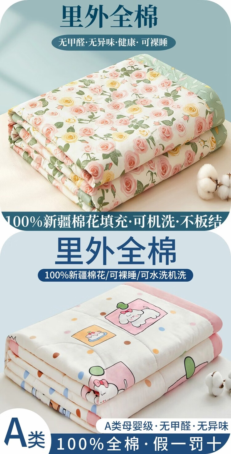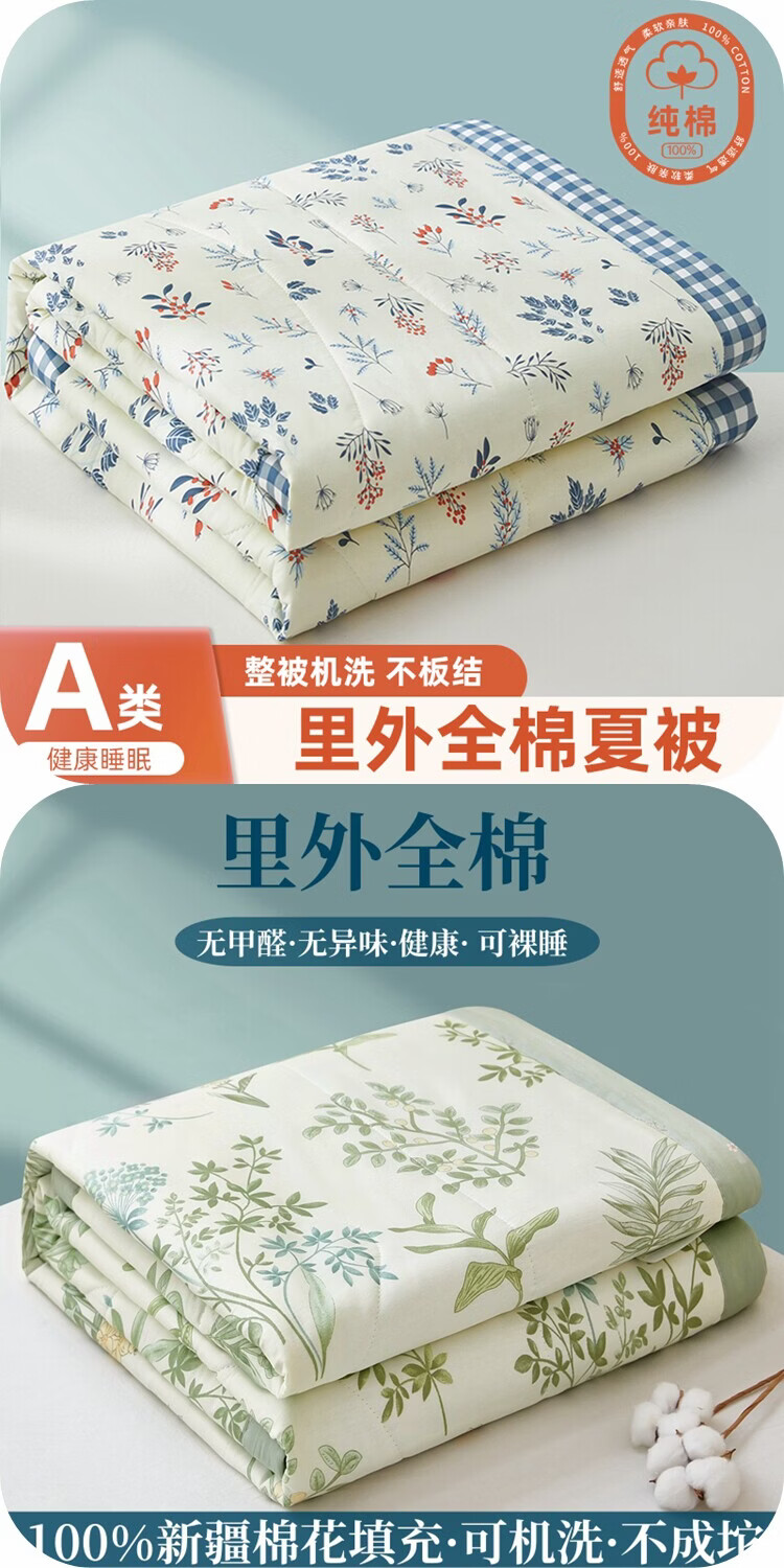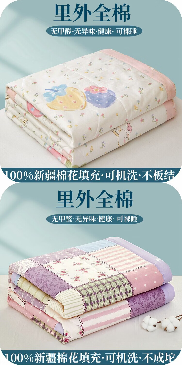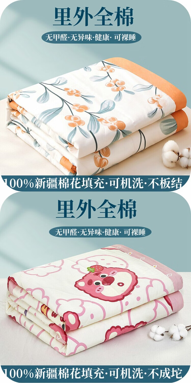 春夏款空调被夏凉棉全棉可机洗子2026芯学生宿舍春秋夏 好丽友【双层纱面料/棉花填充】 双人尺寸200x230cm春秋薄被