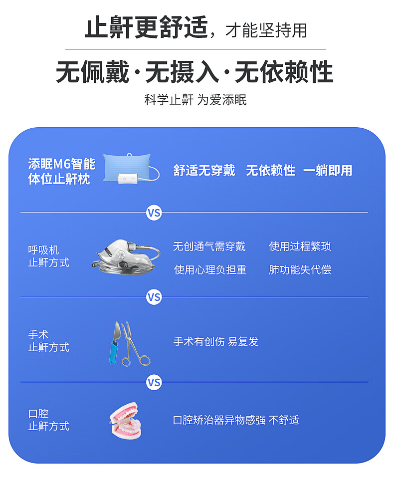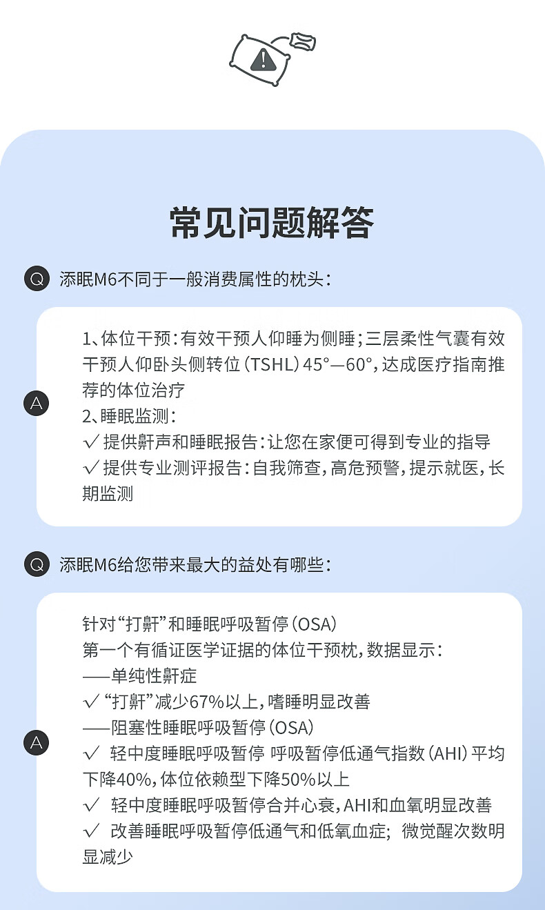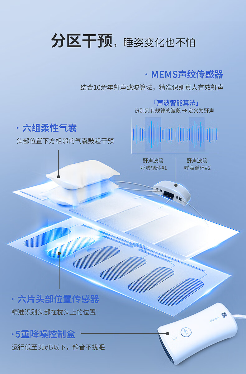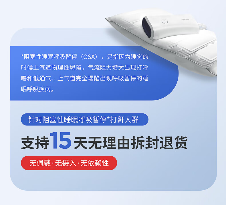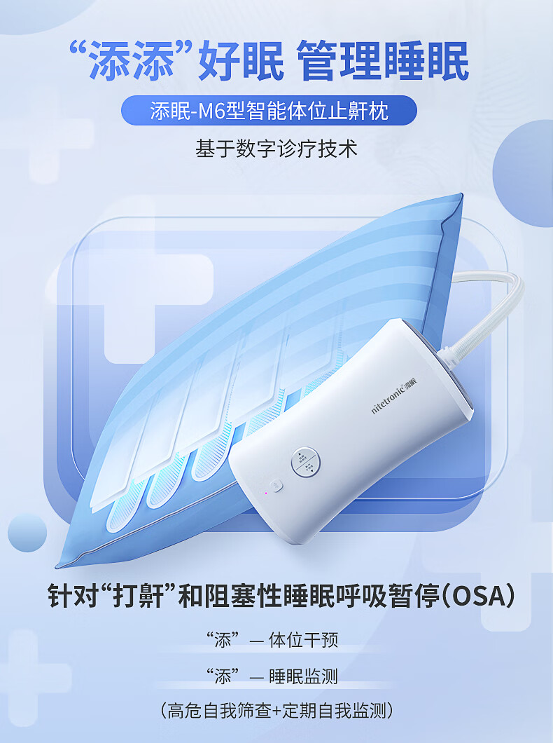 Nitetronic添眠智能止鼾枕M6旗舰 重鼾呼吸暂停打鼾打呼噜神器(体位干预枕) 添眠止鼾枕M6旗舰款 全年价保 单只