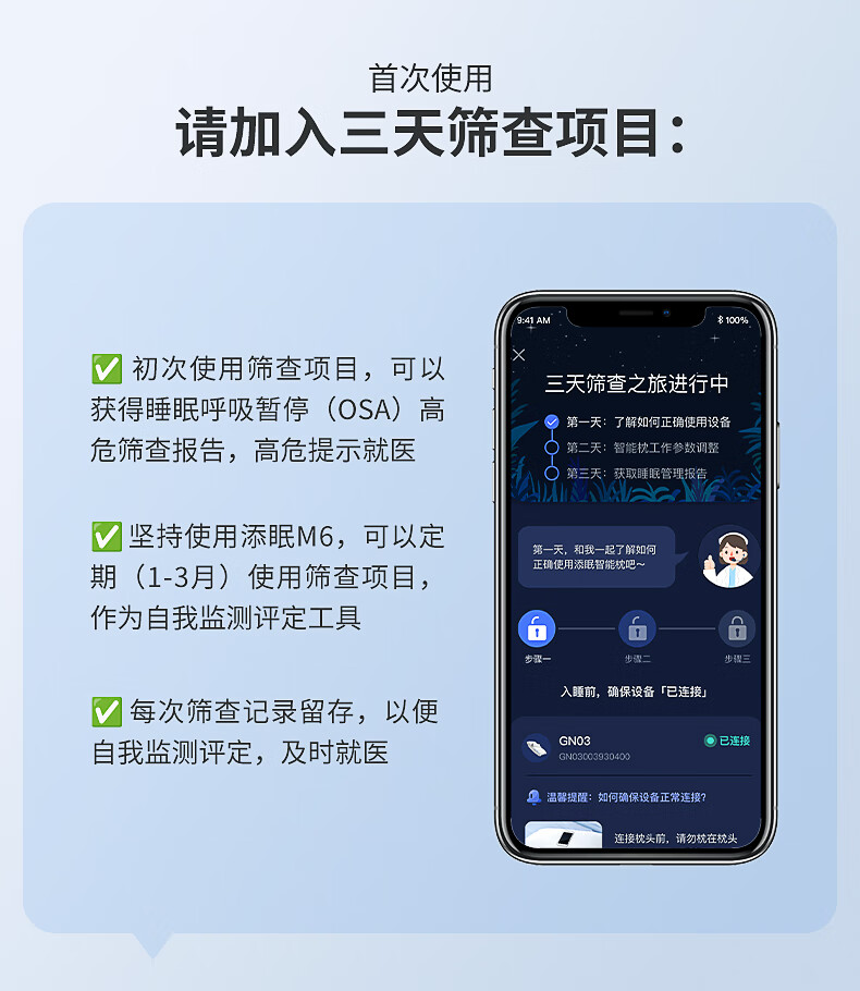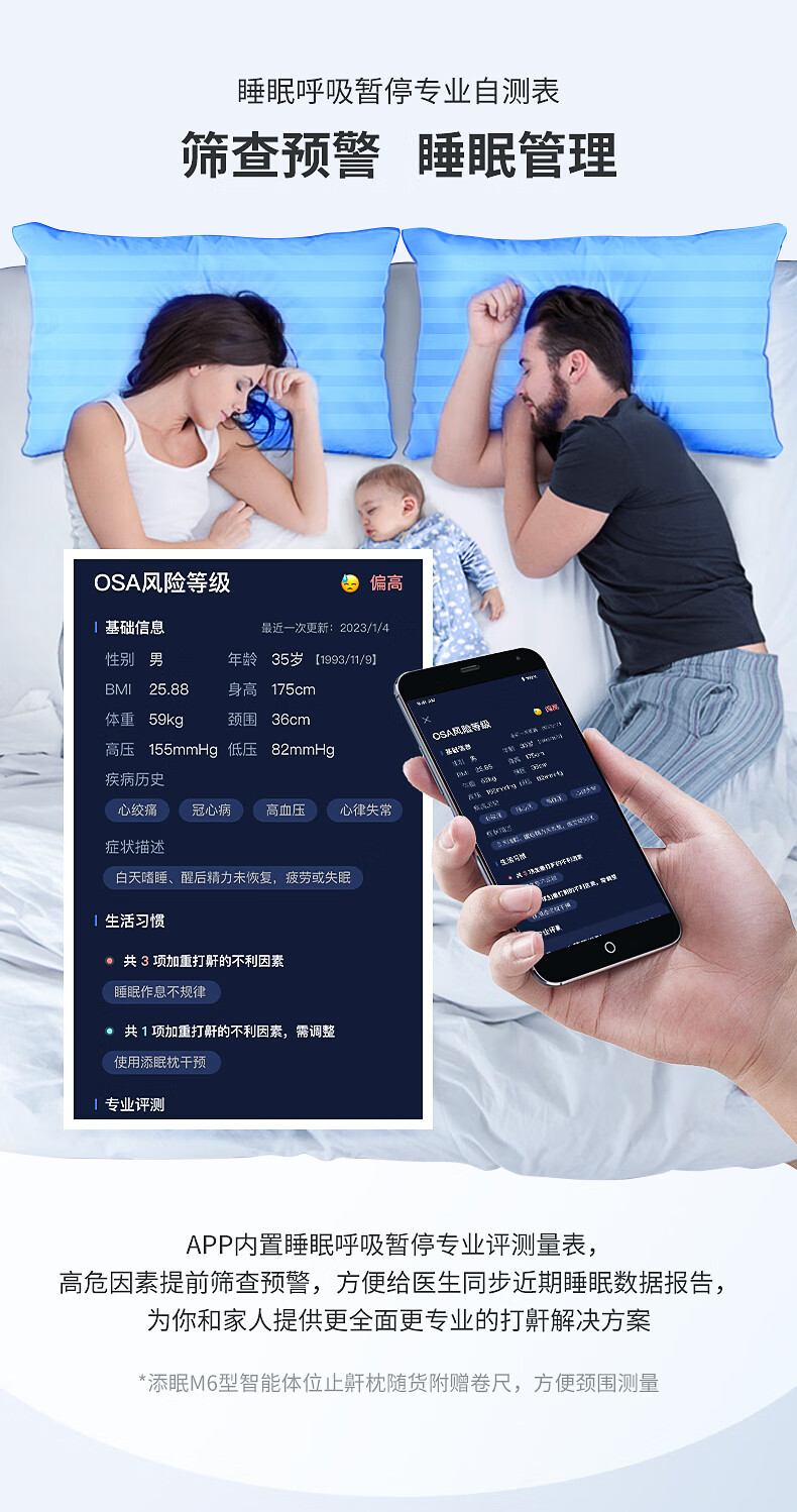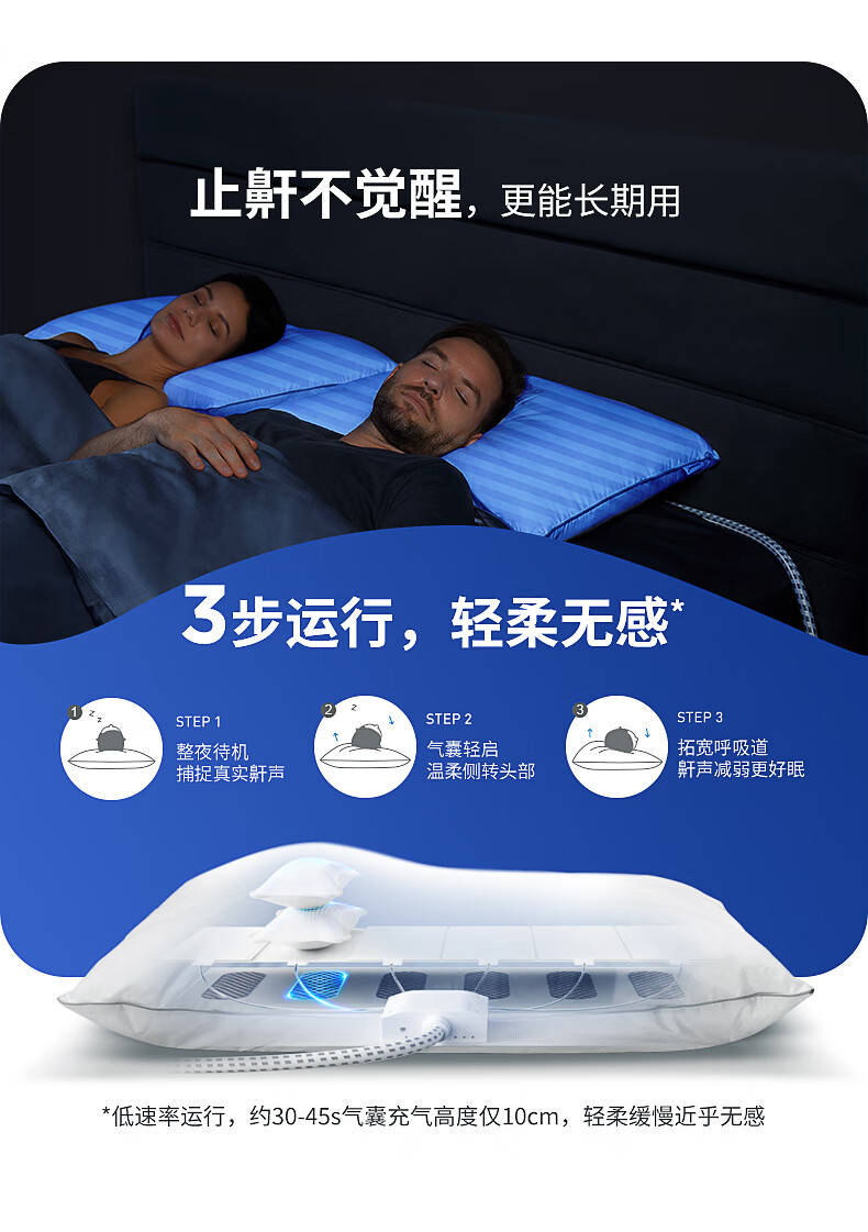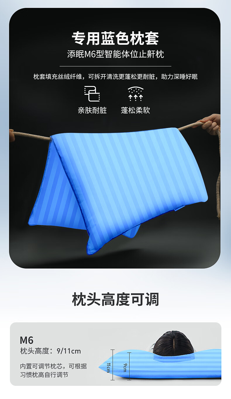 Nitetronic添眠智能止鼾枕M6旗舰 重鼾呼吸暂停打鼾打呼噜神器(体位干预枕) 添眠止鼾枕M6旗舰款 全年价保 单只