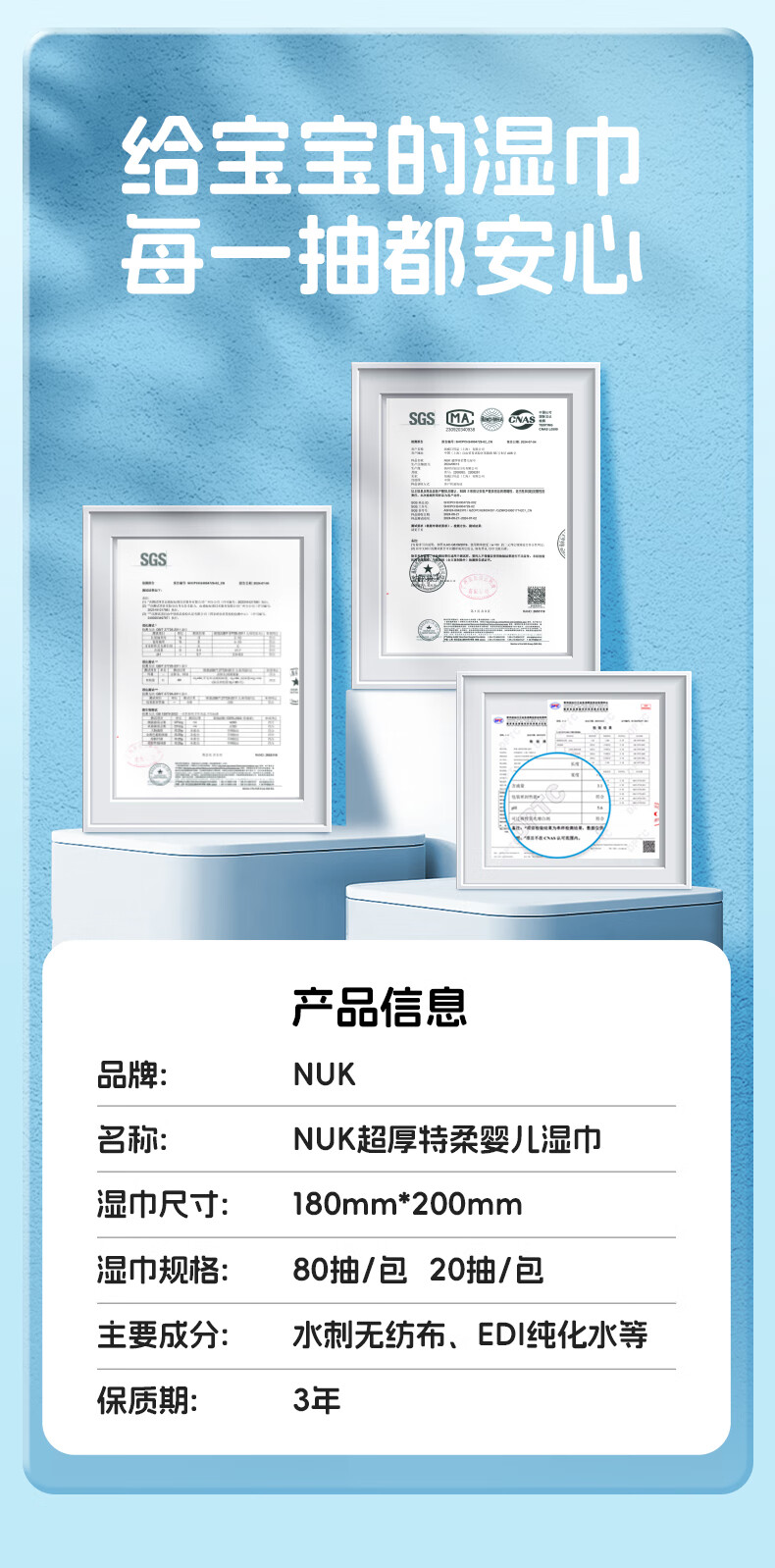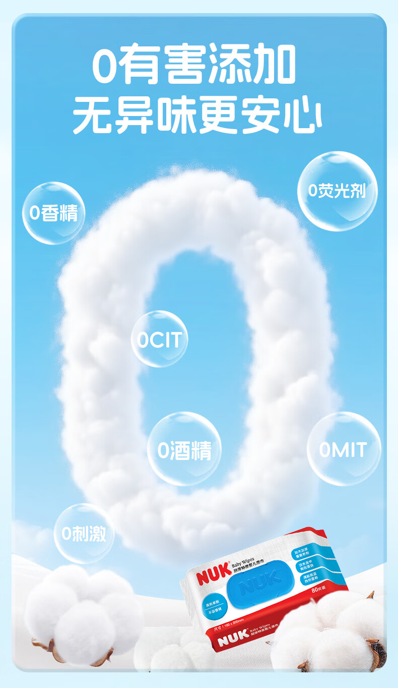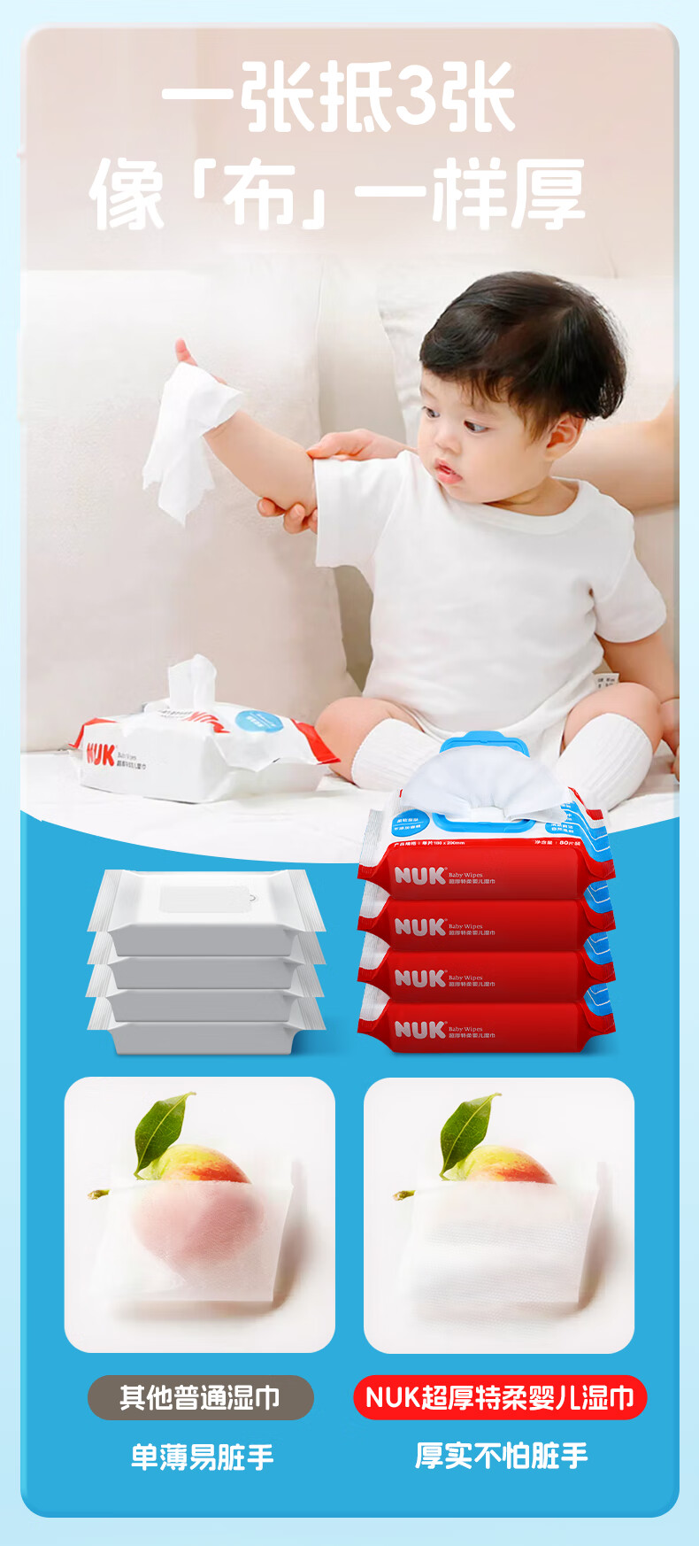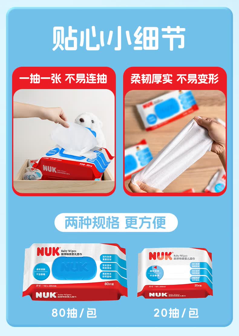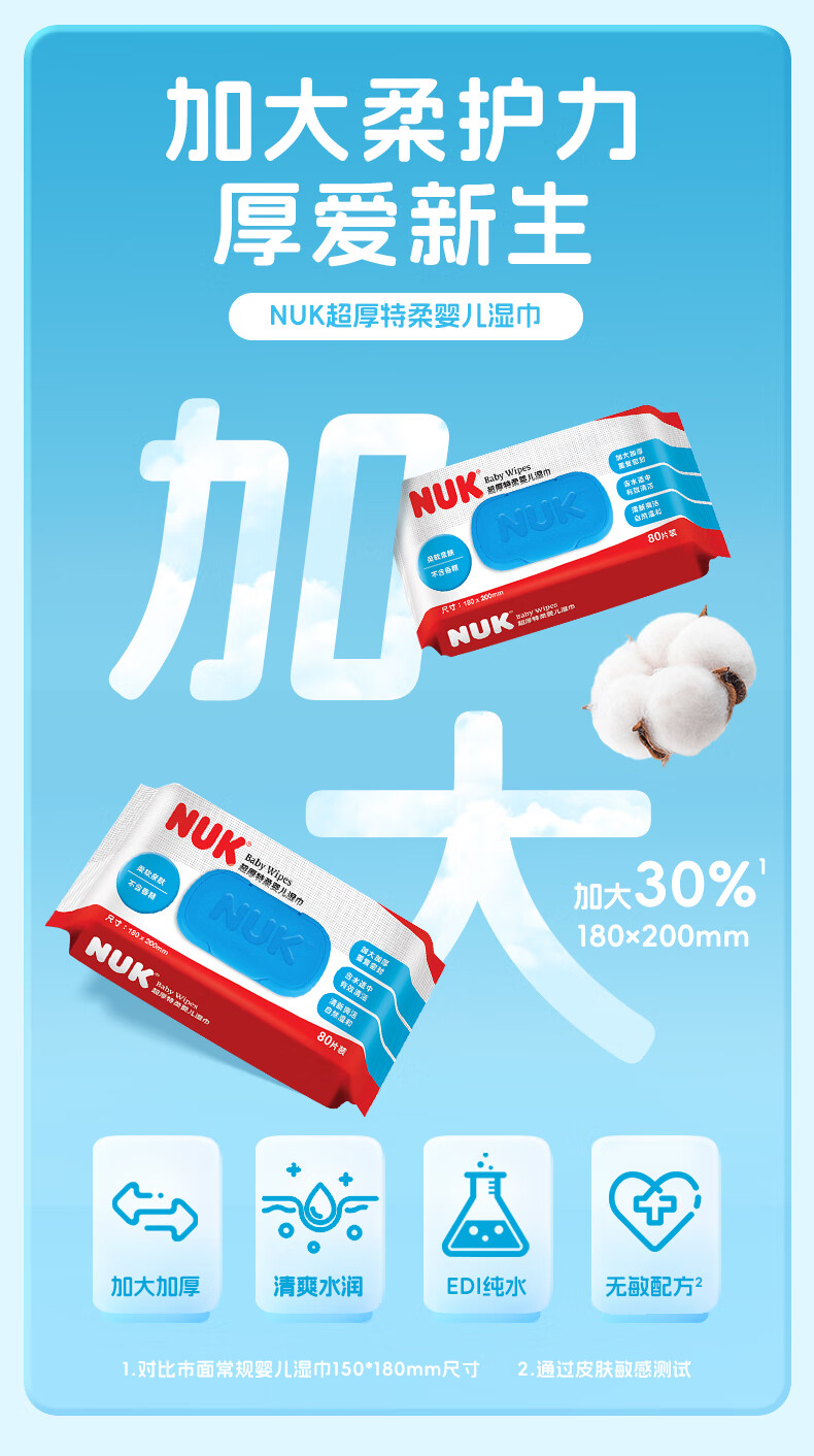 NUK婴儿湿巾新生儿童母婴宝宝专用超柔特厚湿纸巾加盖纯水清洁湿巾纸 【囤货1箱】 80抽 25包