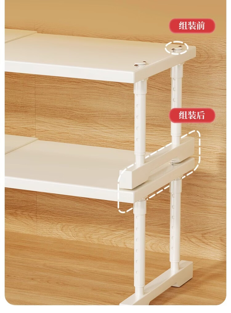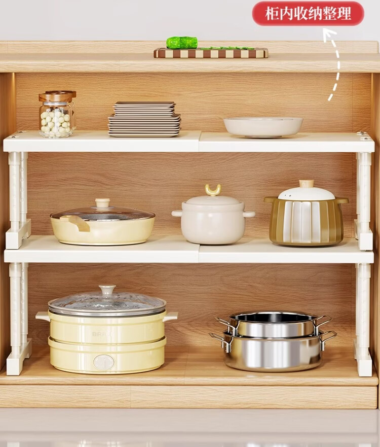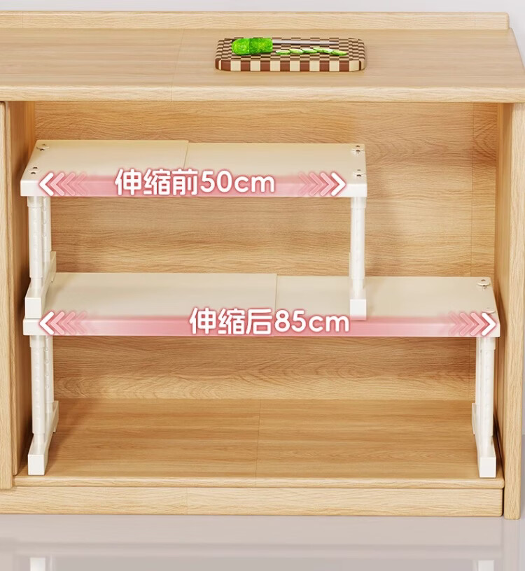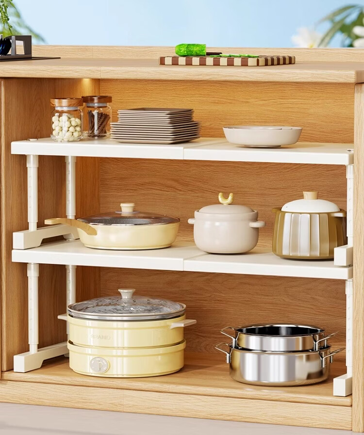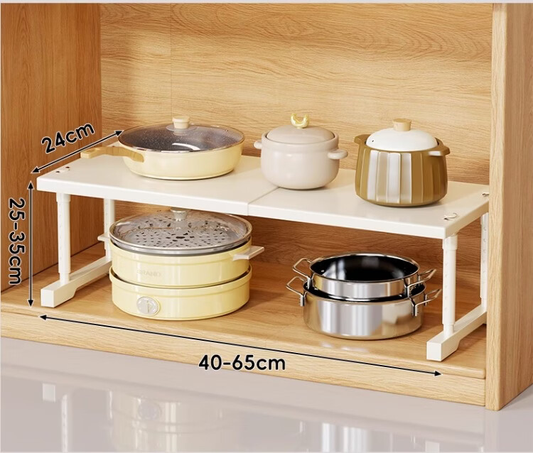 尔思家厨房多功能置物架可伸缩下水槽柜分层橱柜收纳台面整理微波炉架 长40-65【宽24】高25-35cm