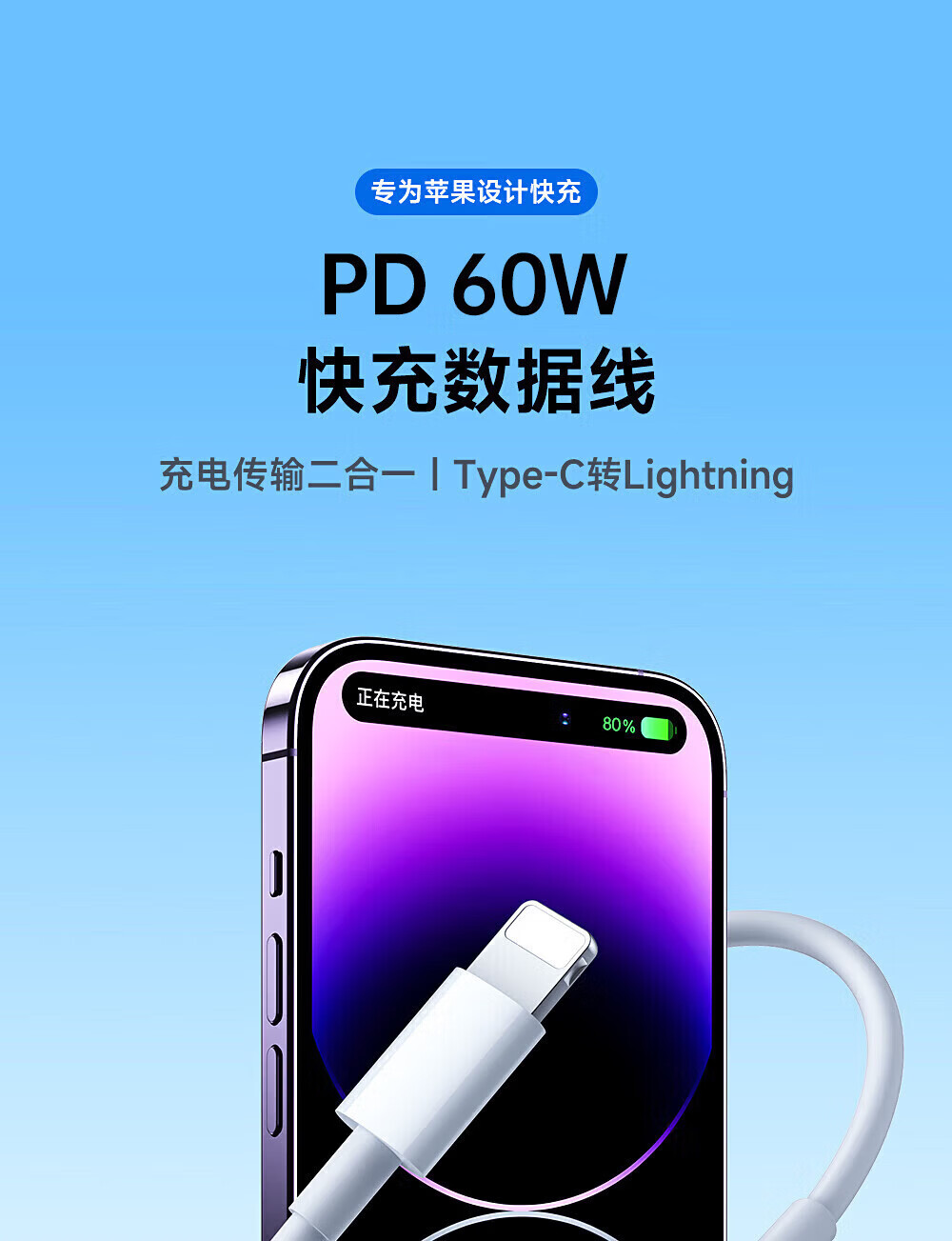 SHMXING闪星【直营正品】适配苹果充电线60W快充iPhone14/13promax手机充电器原装数据线Lighting 【直营正品】苹果1米闪充线丨60W iPhone8-14全系快充