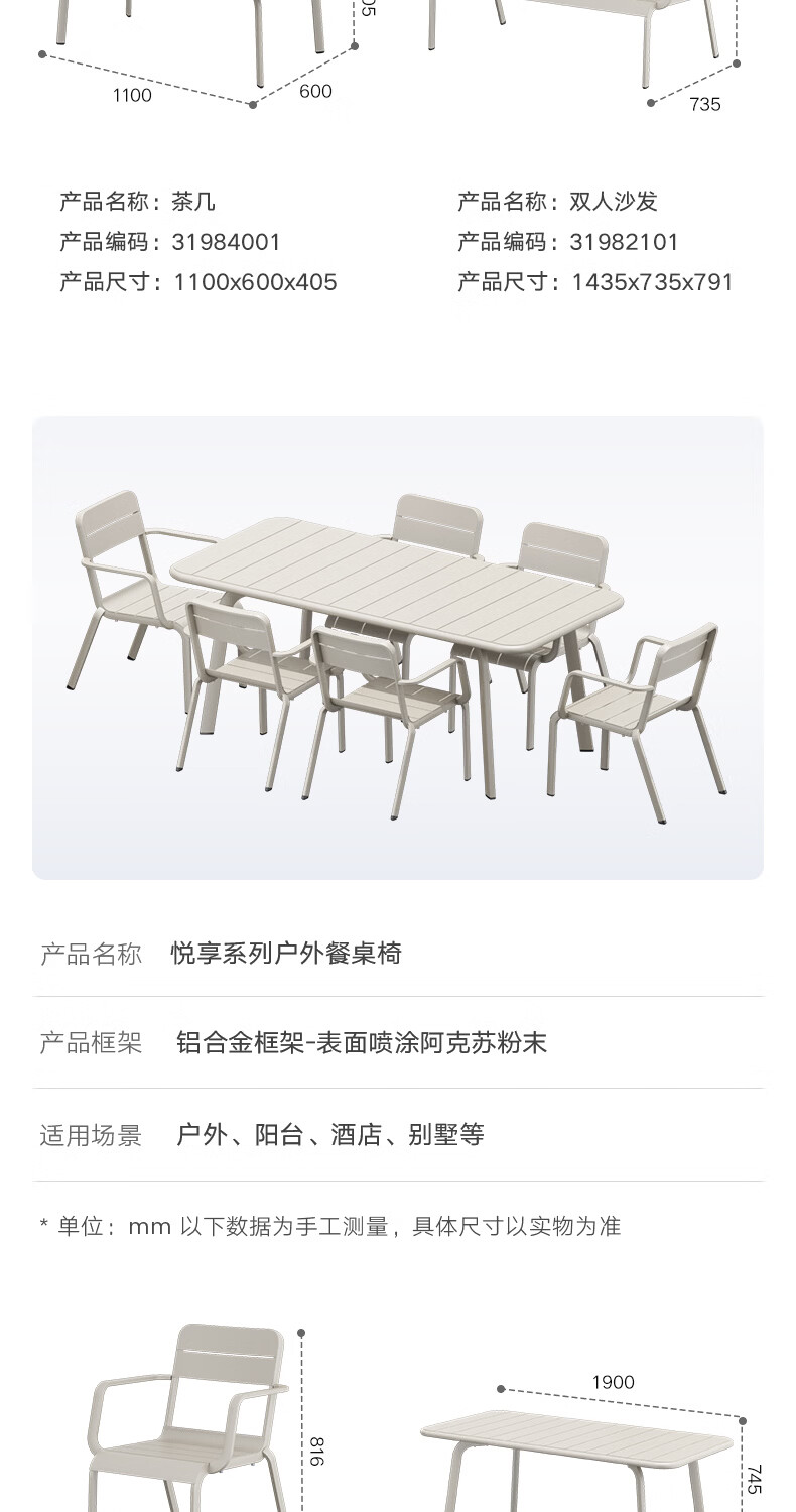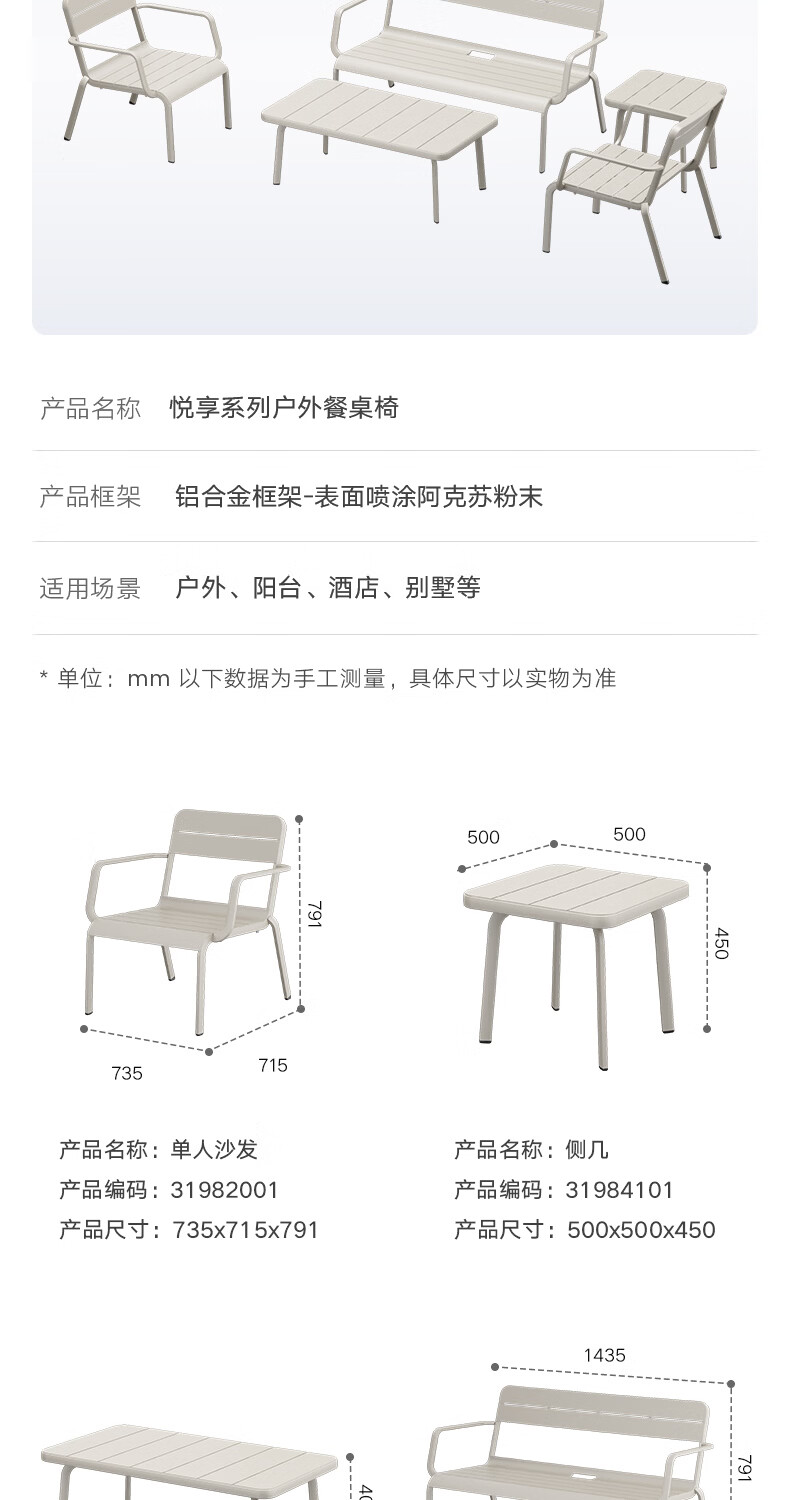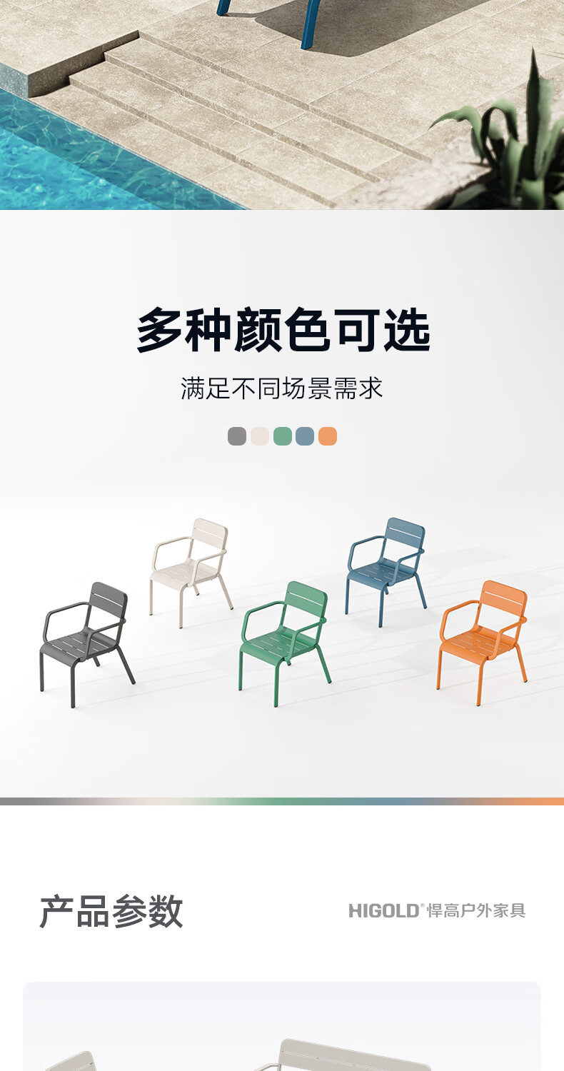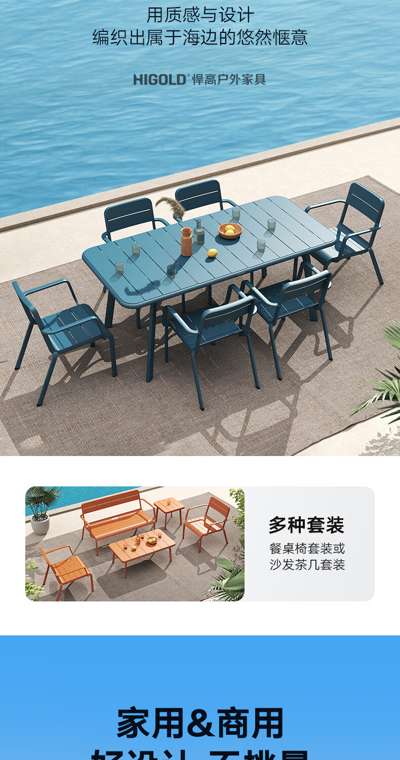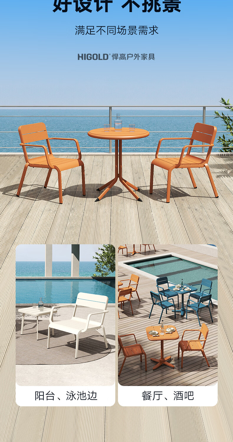 悍高(HIGOLD)户外桌椅室外别墅花园庭院阳台休闲喝茶餐桌椅组合铝合金防雨防晒 餐椅坐垫*1