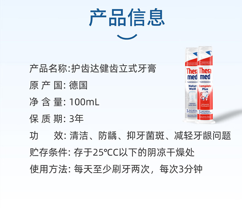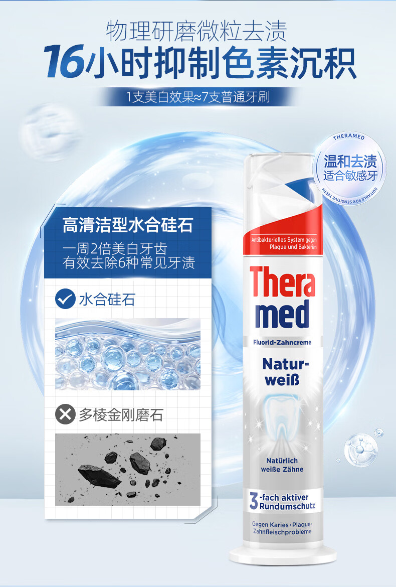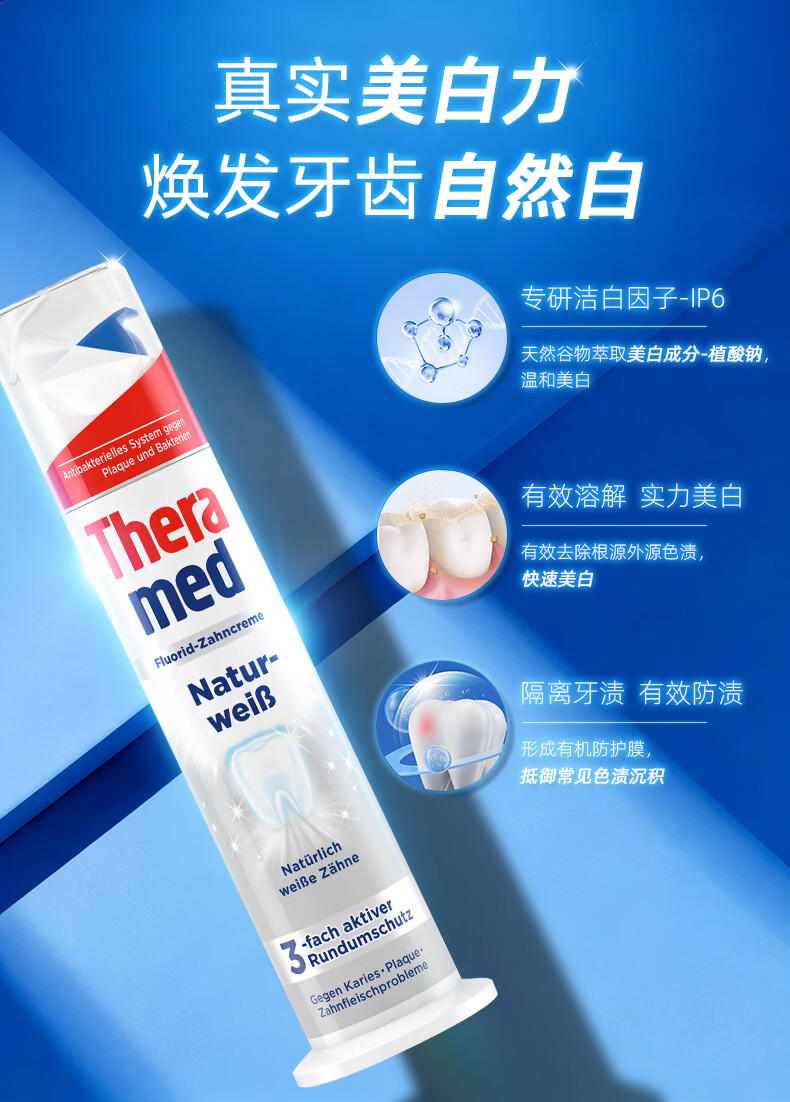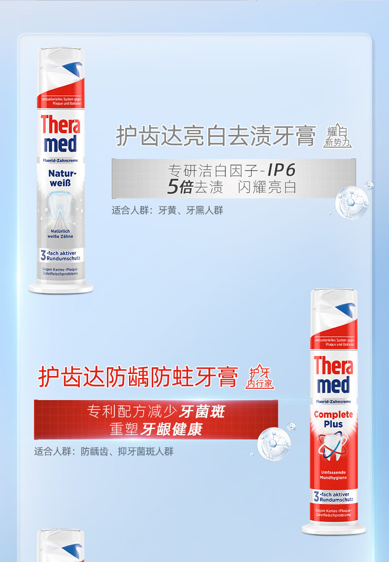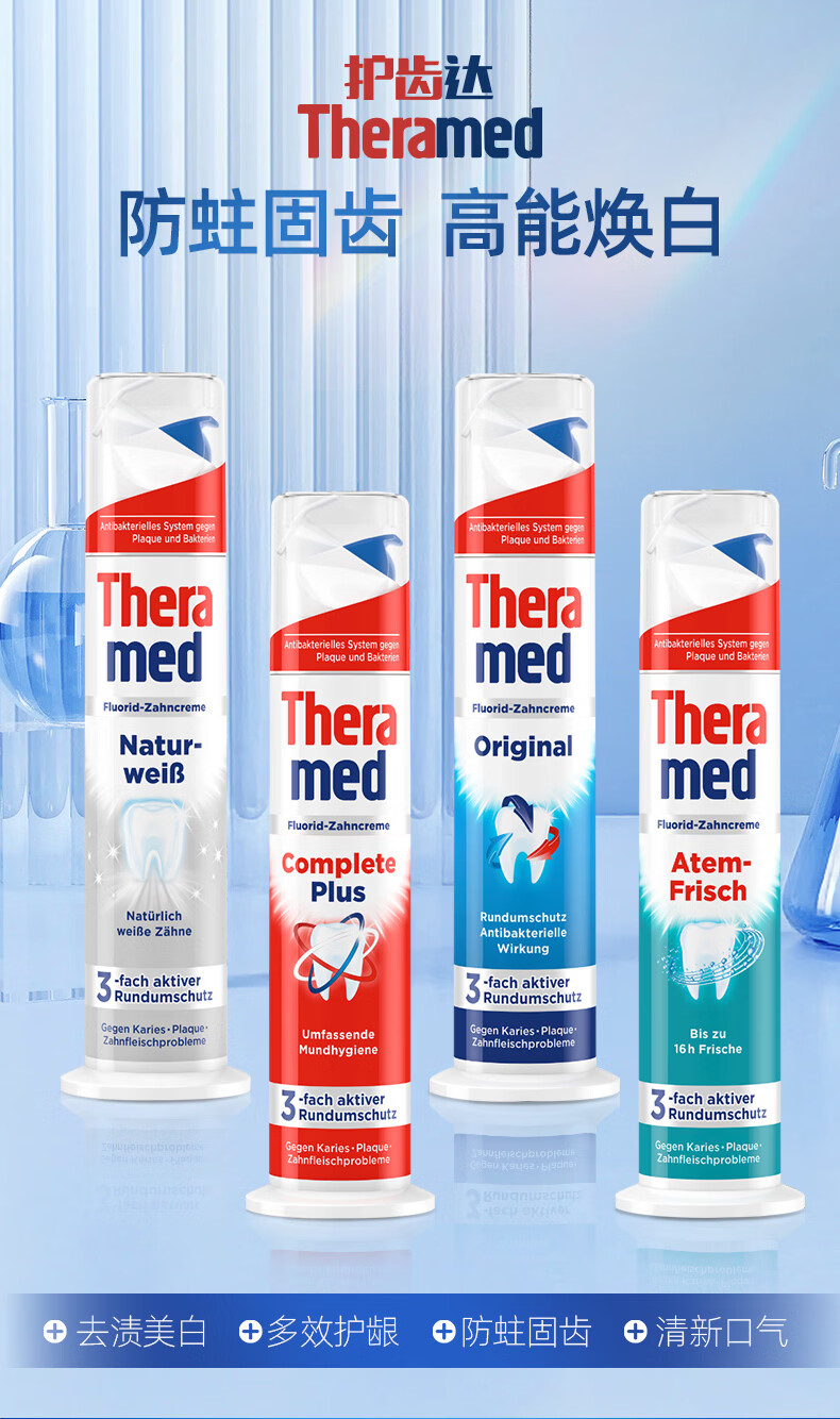 护齿达(THERAMED)德国进口汉高美白亮白去渍祛烟渍防蛀健齿清新口气牙膏