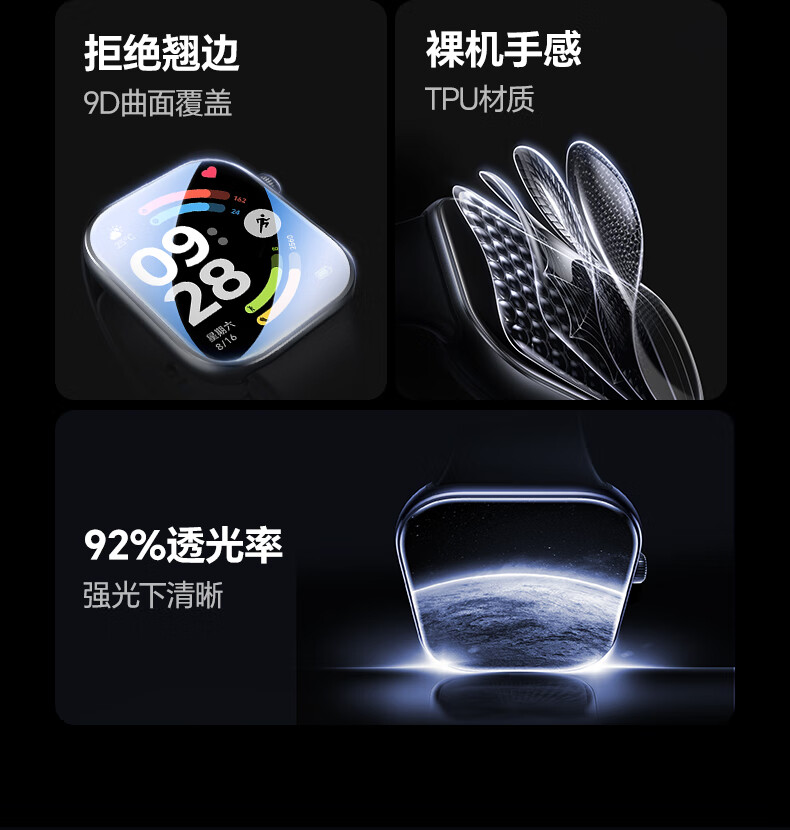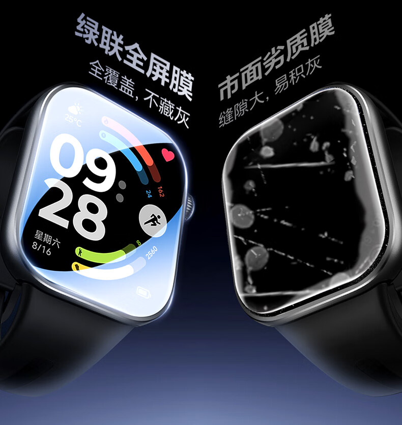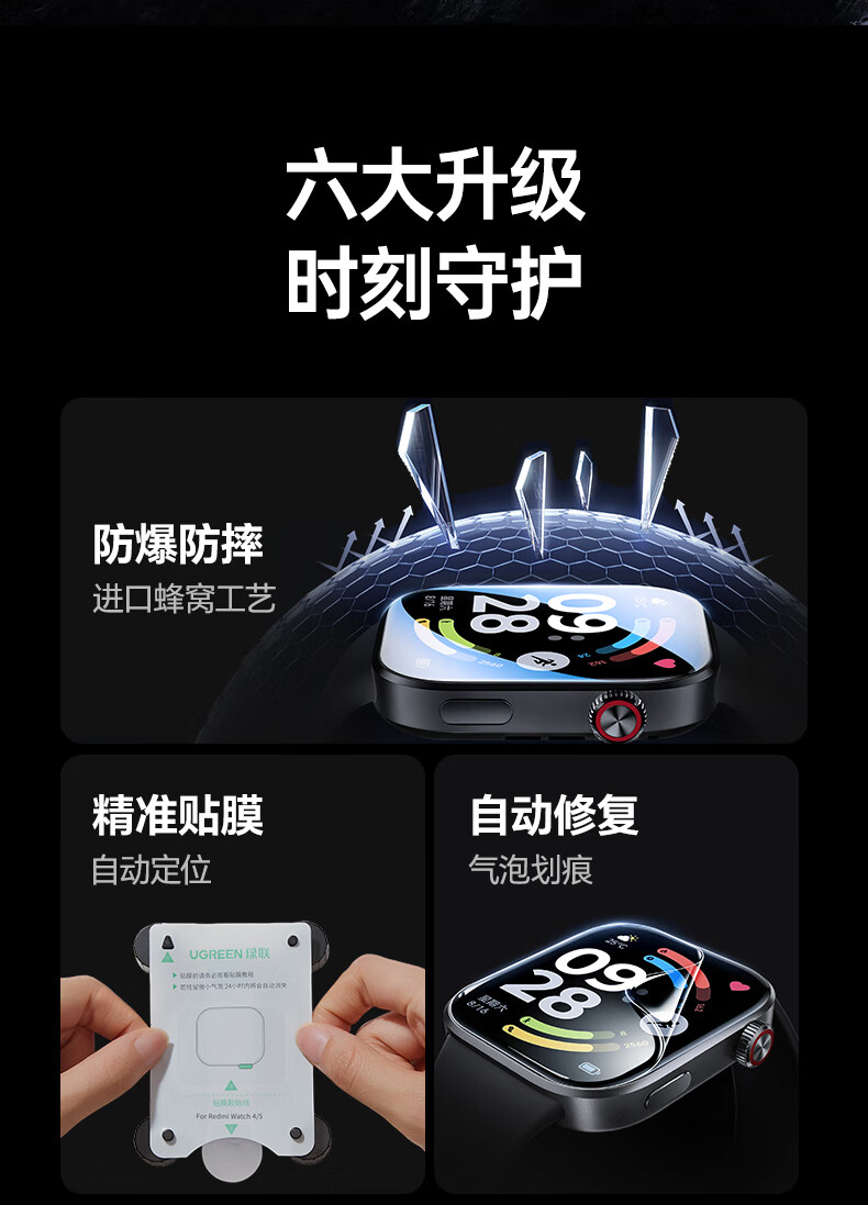 绿联(UGREEN)适用红米watch6保护膜小米Redmi watch6手表膜全屏覆盖防刮耐磨防摔防爆高清全胶软膜带贴膜器刮卡 红米watch6【定位秒贴膜】2片装*软膜