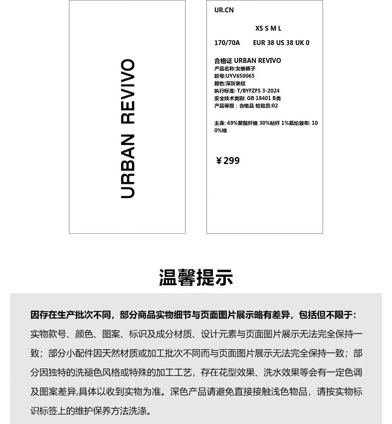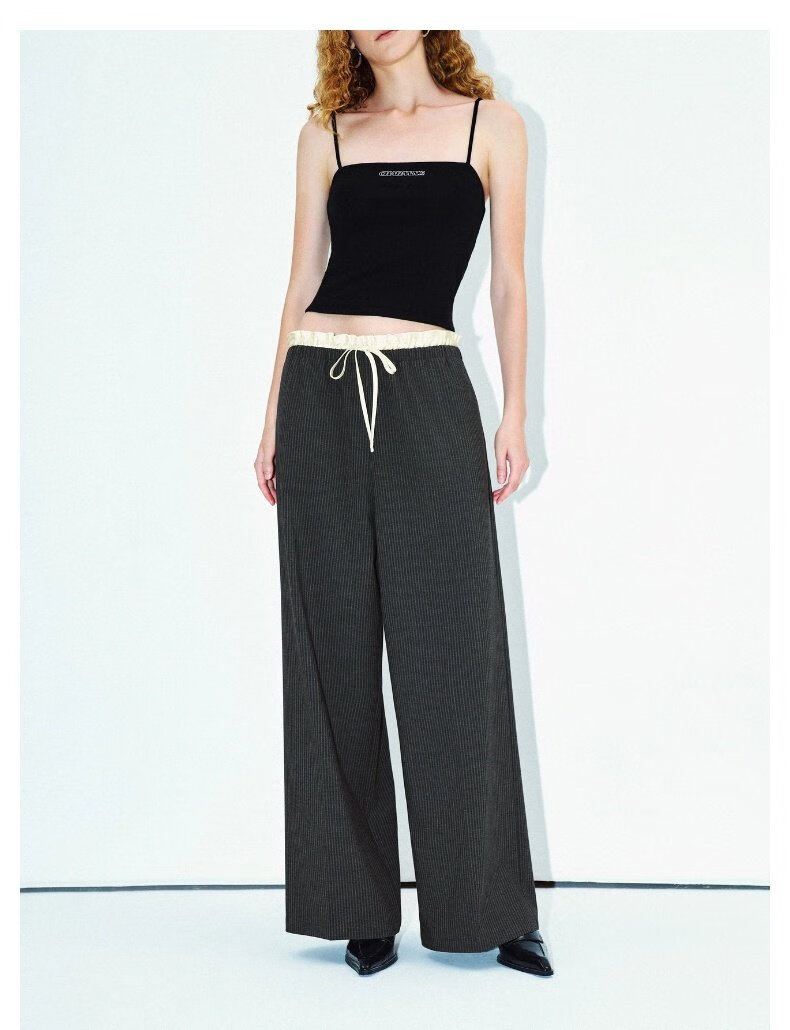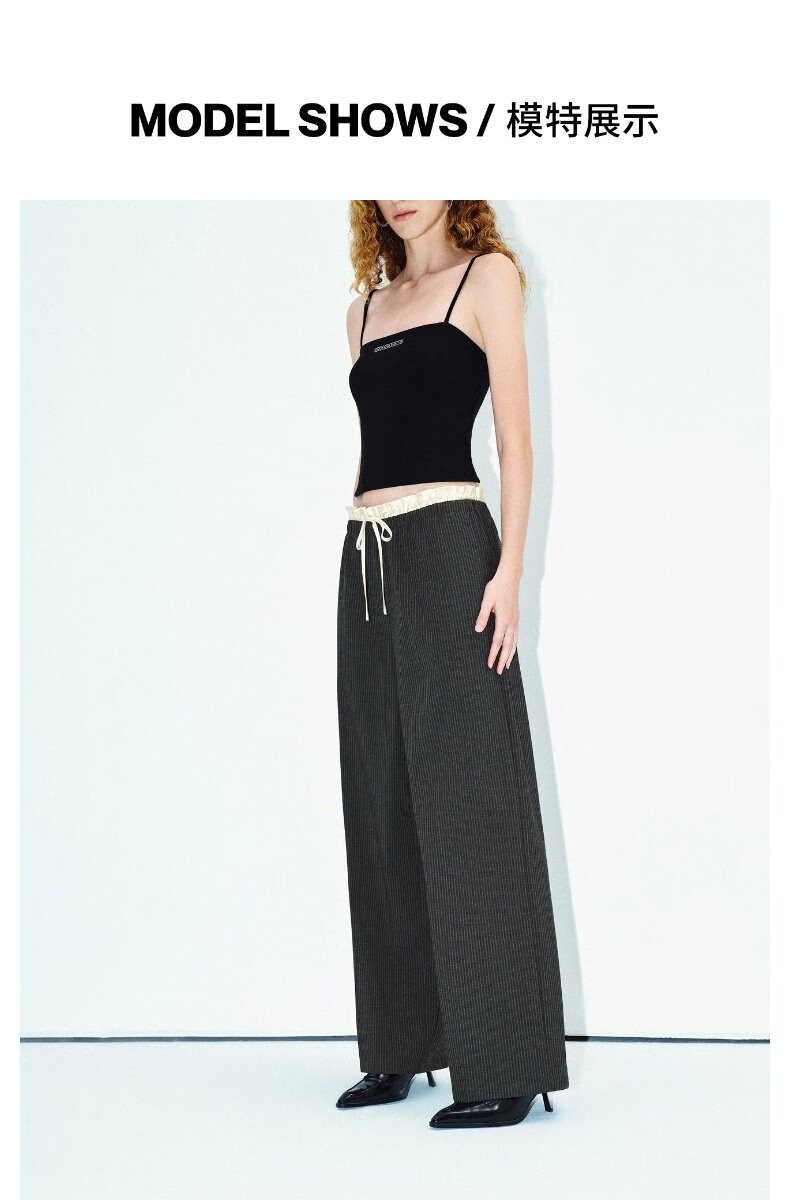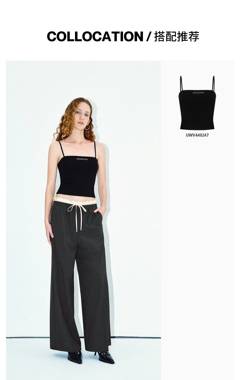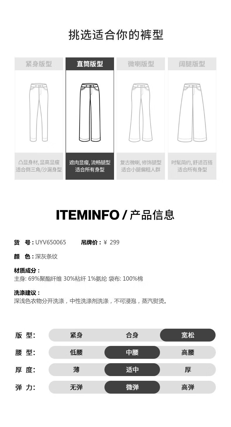 UR2025秋季新款女装高智格雷系气质拼接条纹直筒裤UYV650065