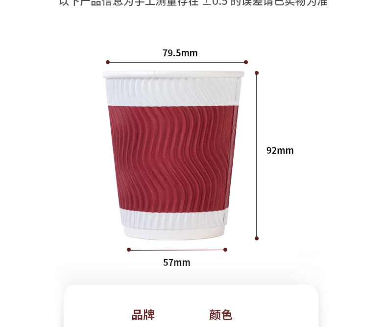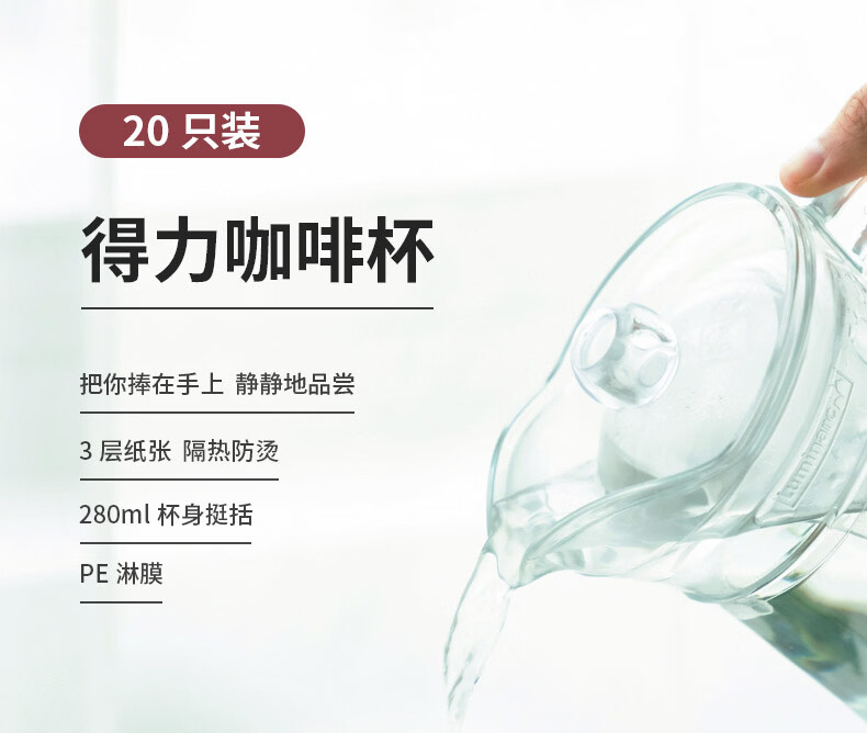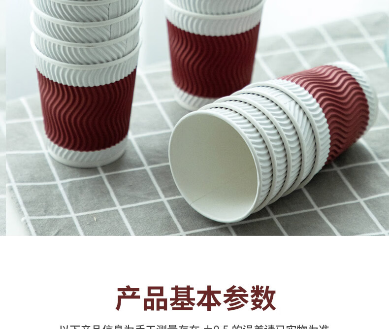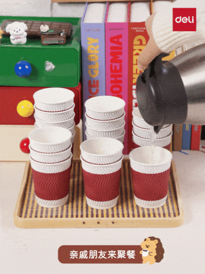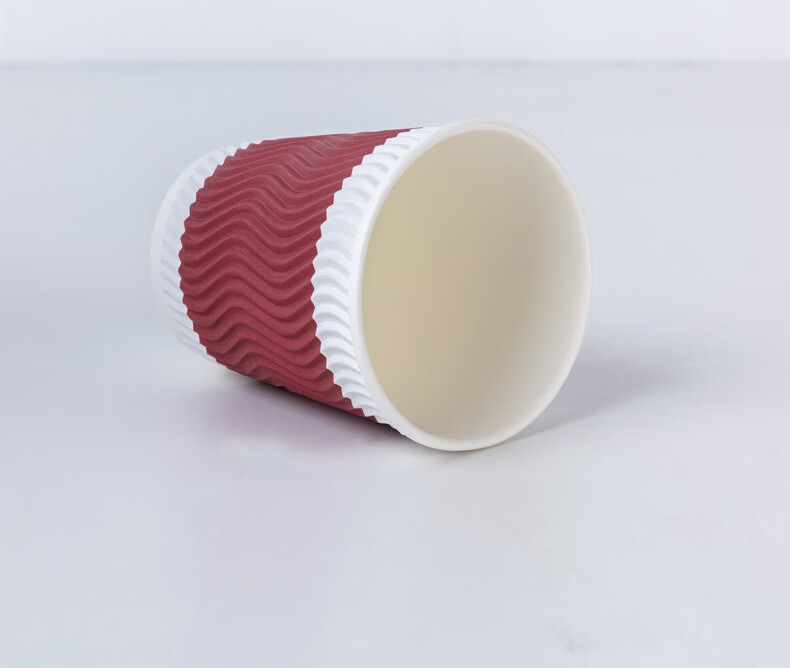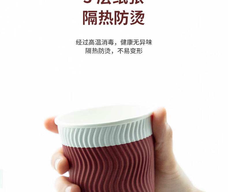 得力(deli)280ml一次性纸杯 杯子/水杯 防滑三层加厚波纹 红色 20只装 19206