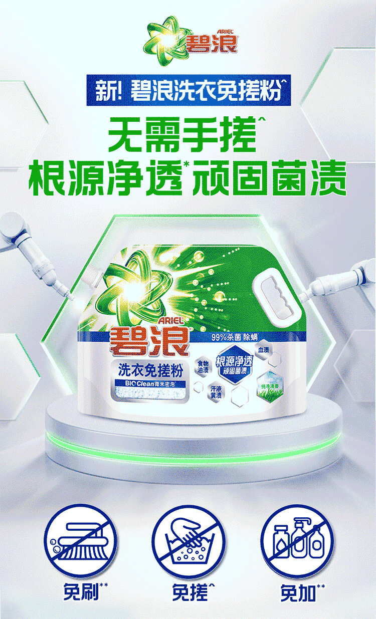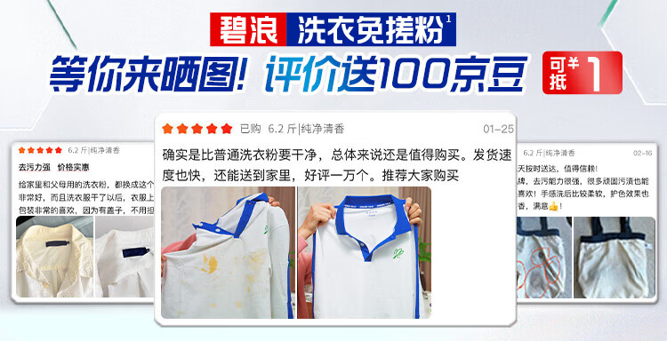 碧浪洗衣免搓粉 纯净清香6.2斤装 洗衣粉非爆炸盐皂粉 99%杀菌除螨