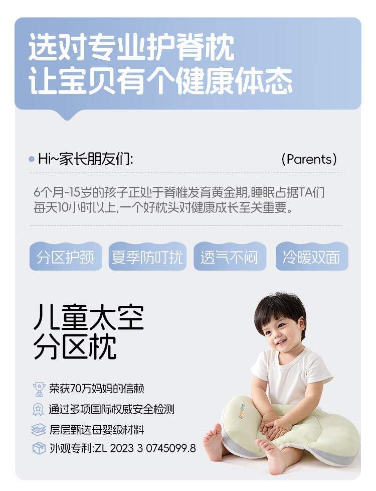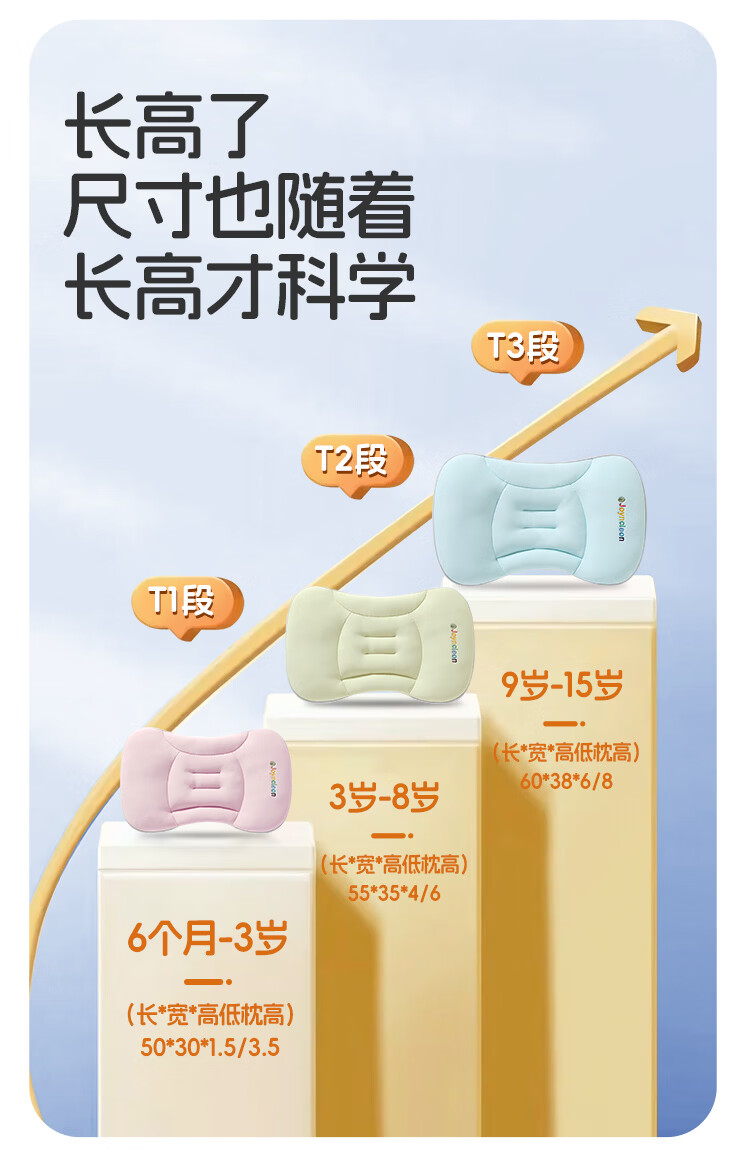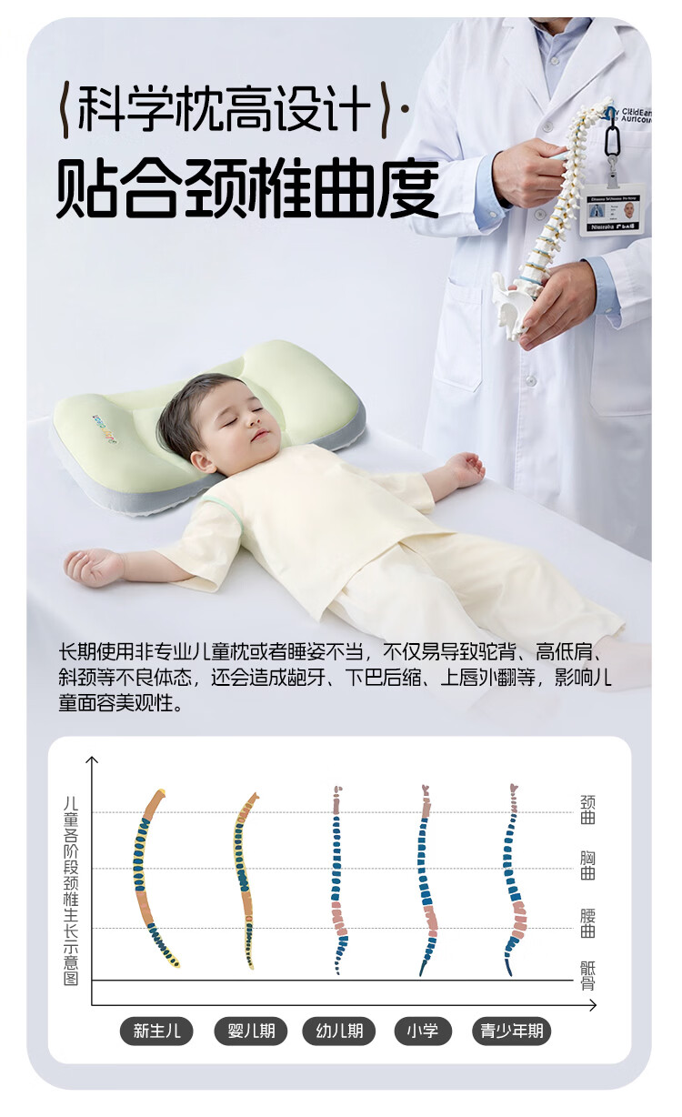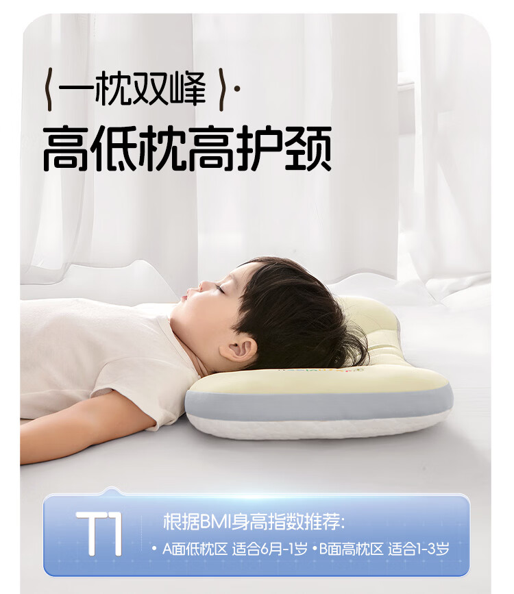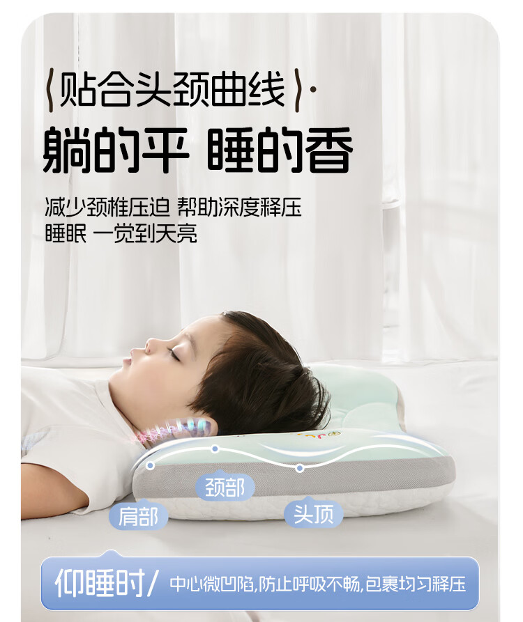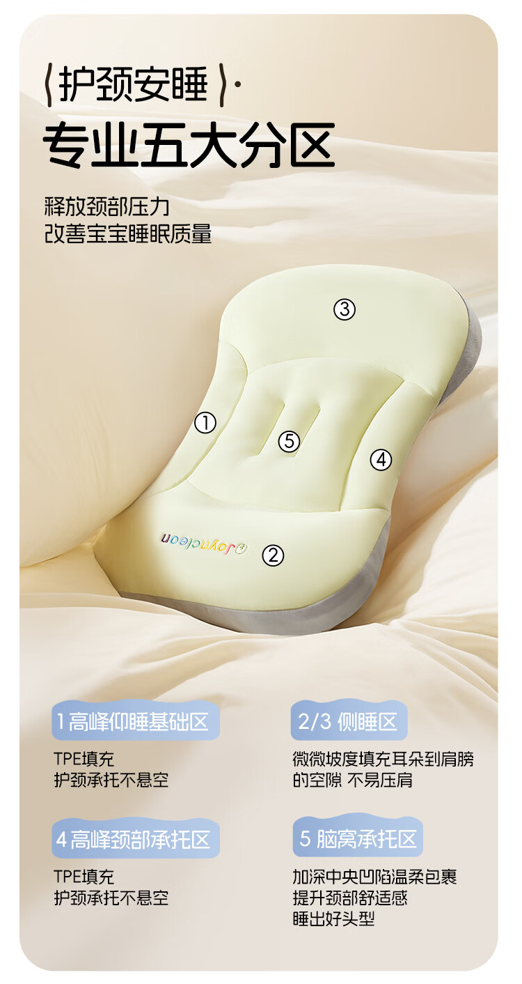 婧麒(JOYNCLEON)婴儿枕头分区宝宝枕护颈神器6个月以上儿童枕头1-3岁 绿Jzt191221