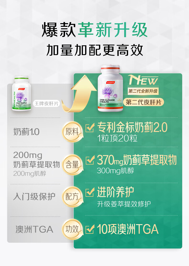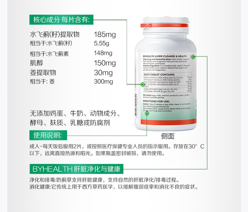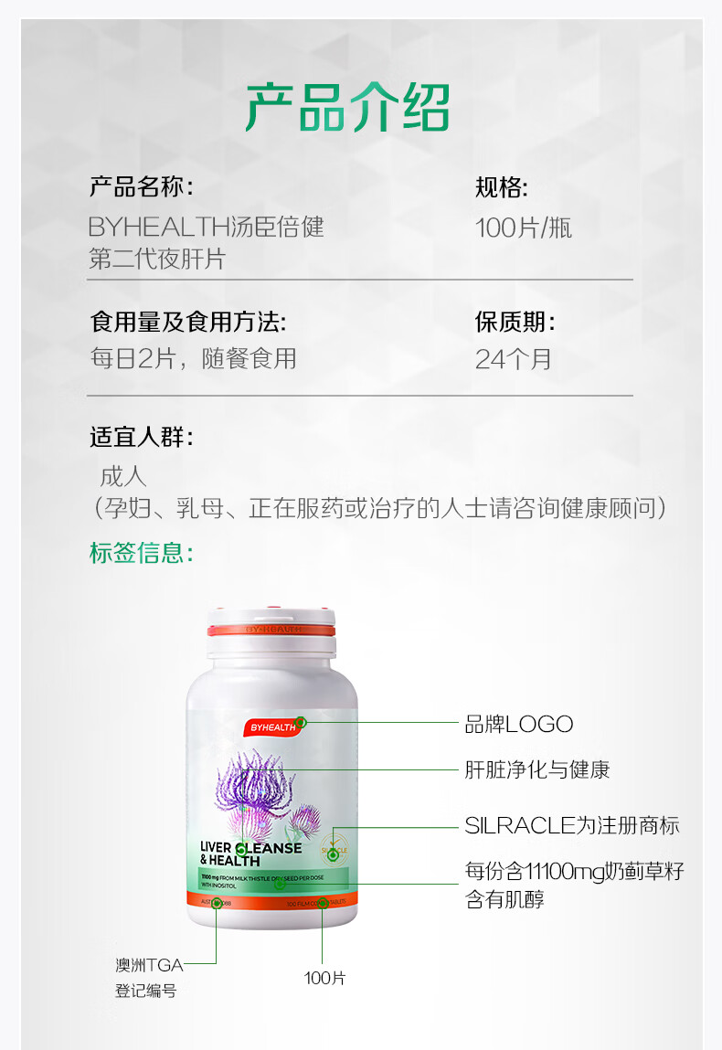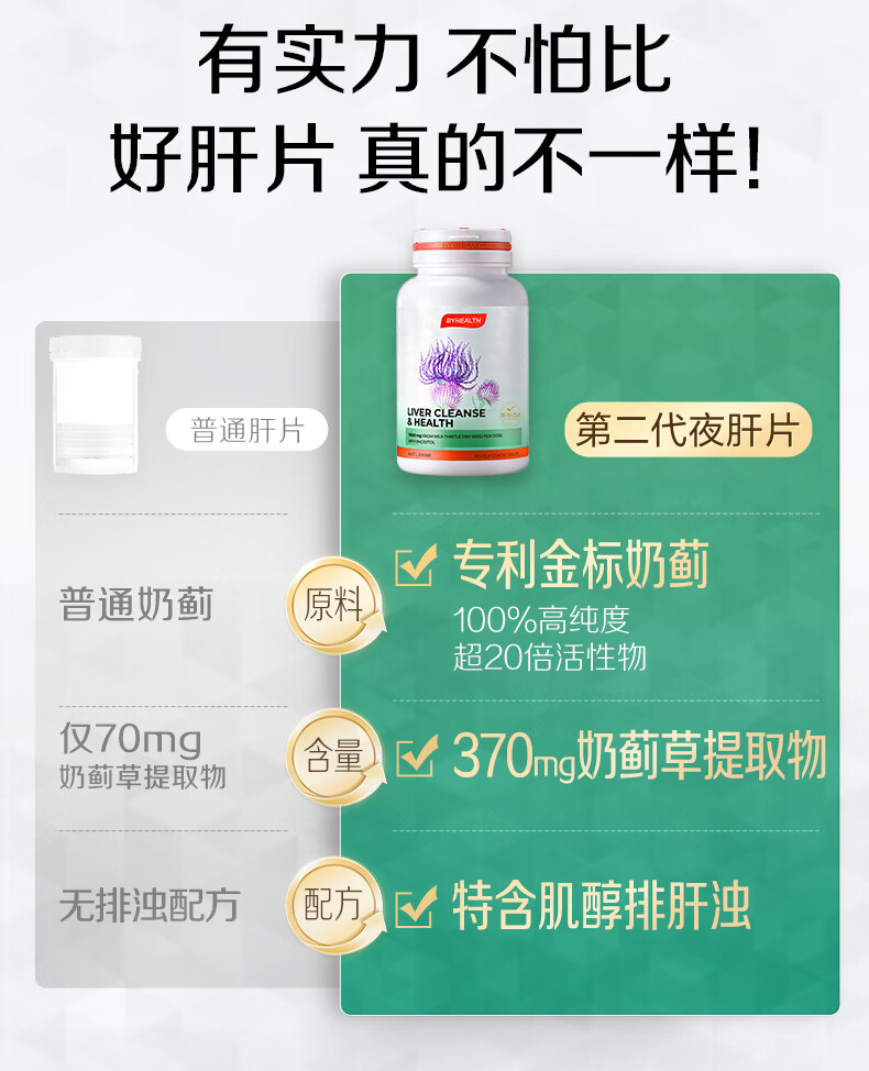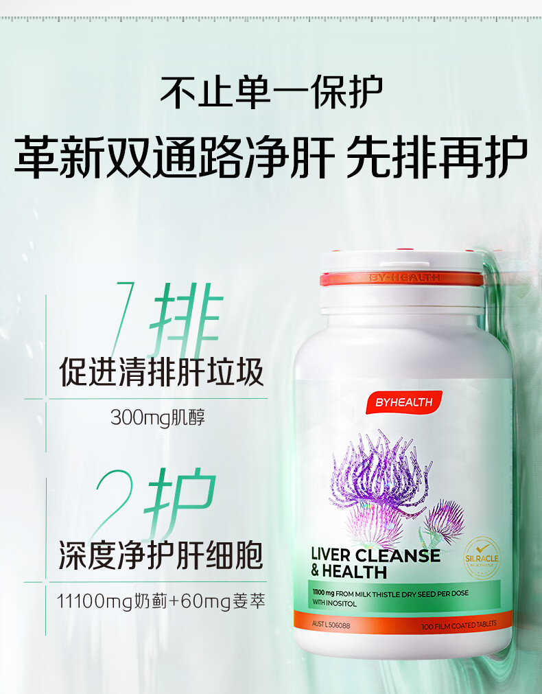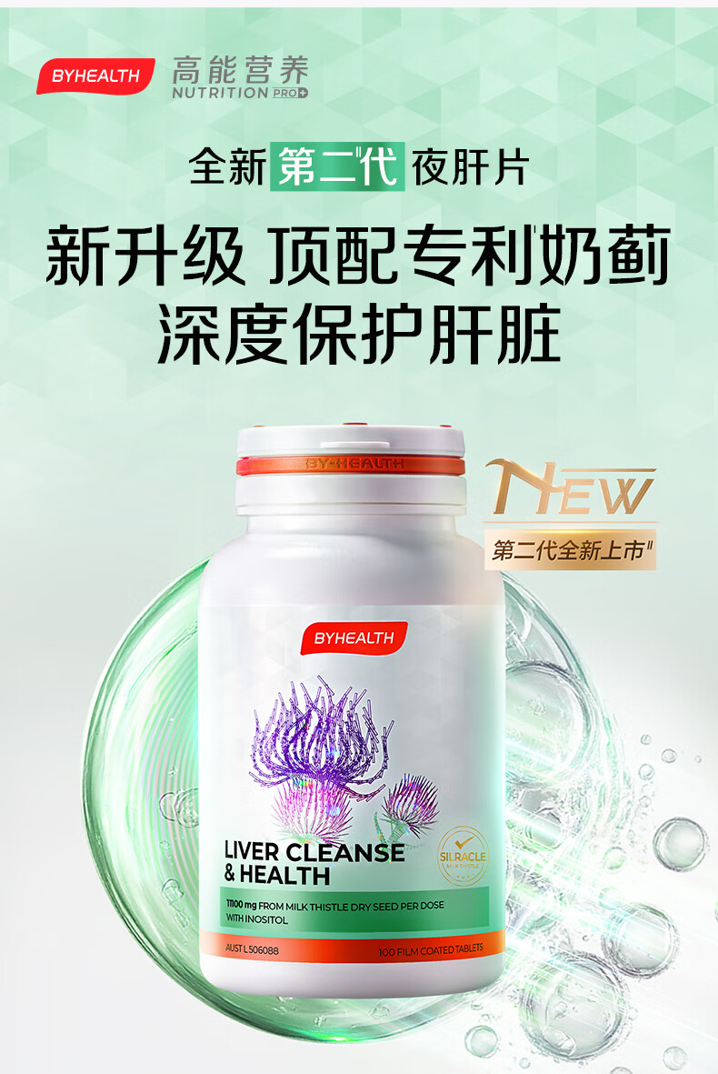 BYHEALTH第二代夜肝片100粒 奶蓟草护肝片水飞蓟养肝(不参与赠品活动)