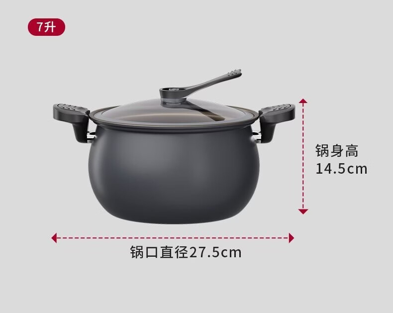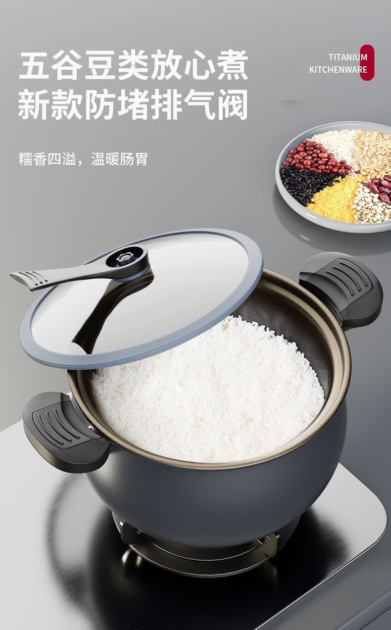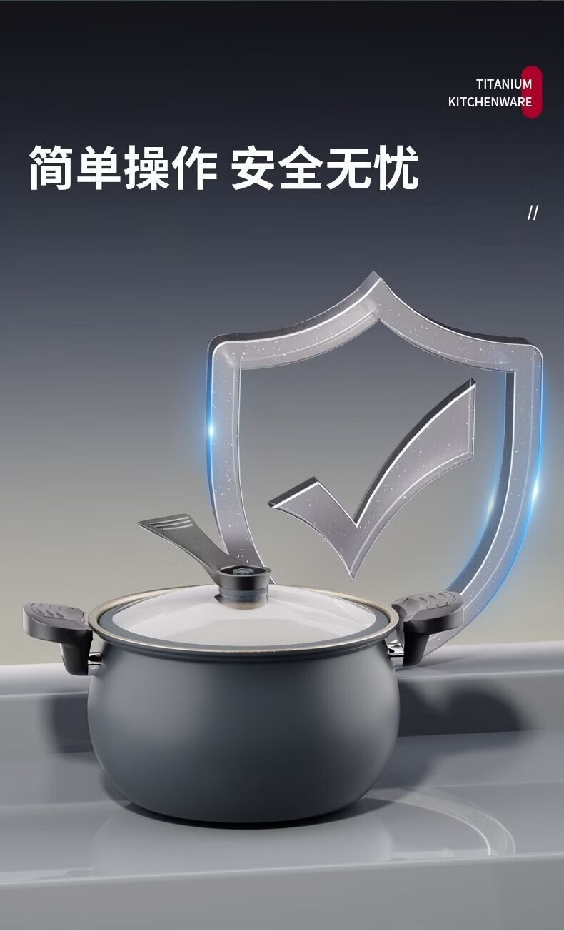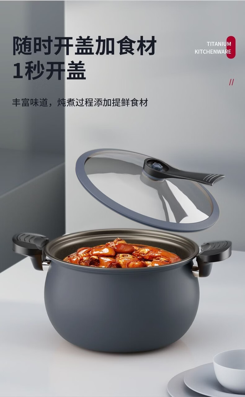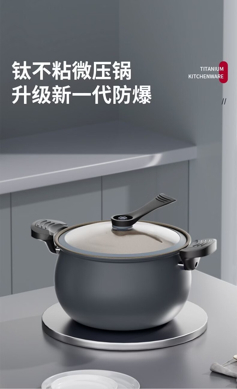 MMOTRO日本品牌微压锅大容量钛不沾煮粥加厚双耳压力锅炖煮锅家用电磁炉 钛不粘微压锅【灰色】 27.5cm 7000ml