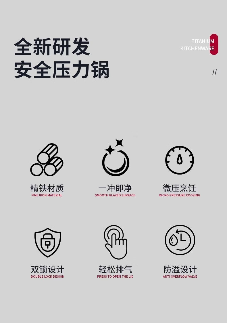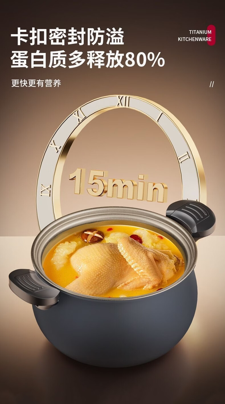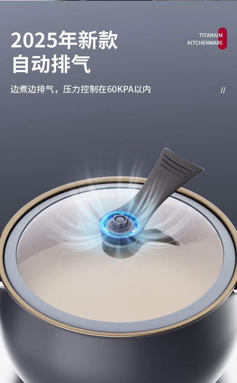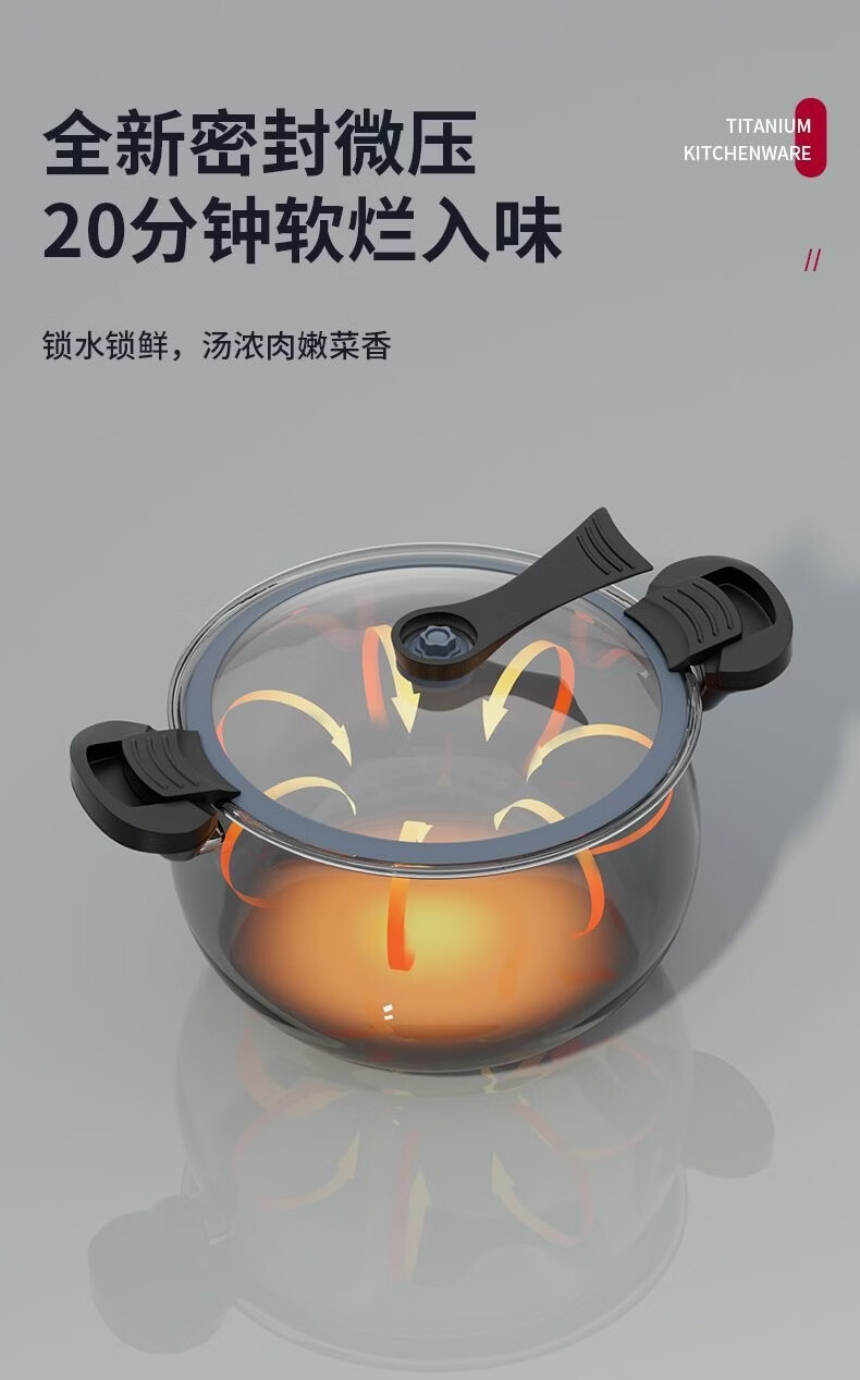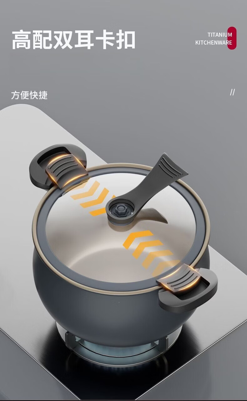 MMOTRO日本品牌微压锅大容量钛不沾煮粥加厚双耳压力锅炖煮锅家用电磁炉 钛不粘微压锅【灰色】 27.5cm 7000ml