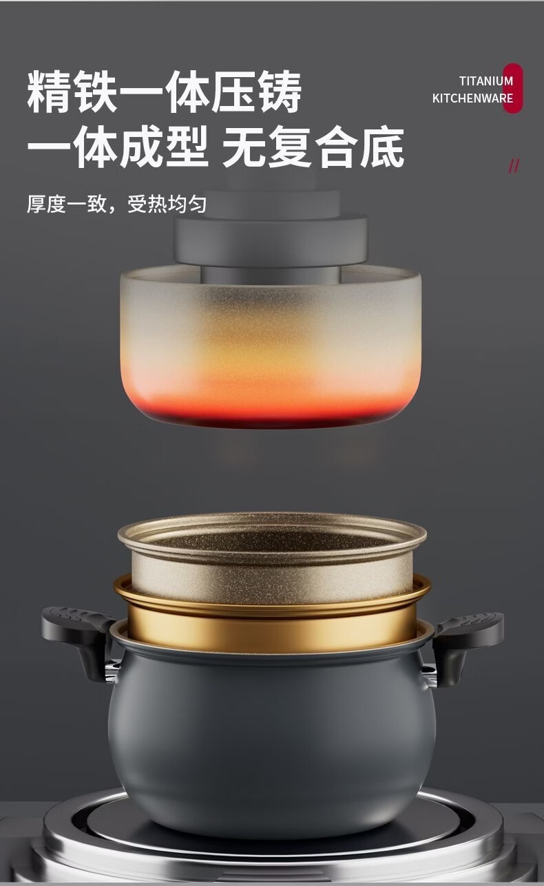 OCMOGO日本品牌微压汤锅家用煮锅不粘锅炖肉煲汤双耳炖锅燃气灶电磁炉通 汤锅【带增压盖】新款升级 26cm