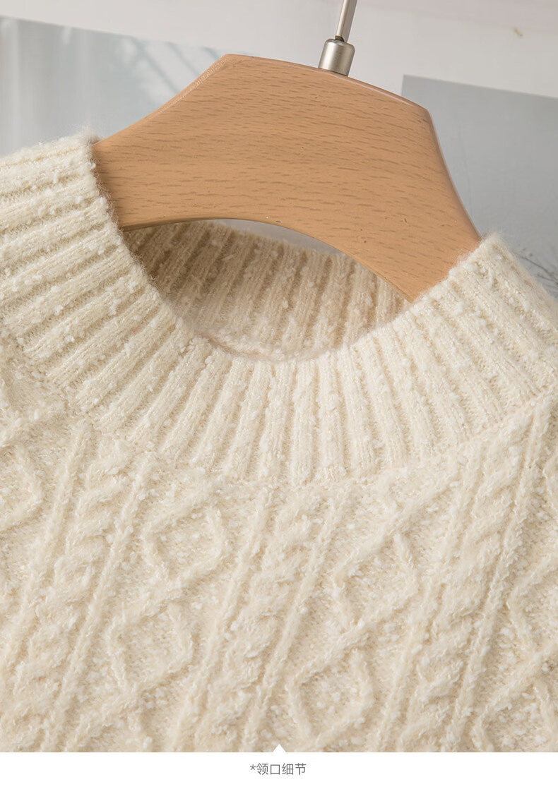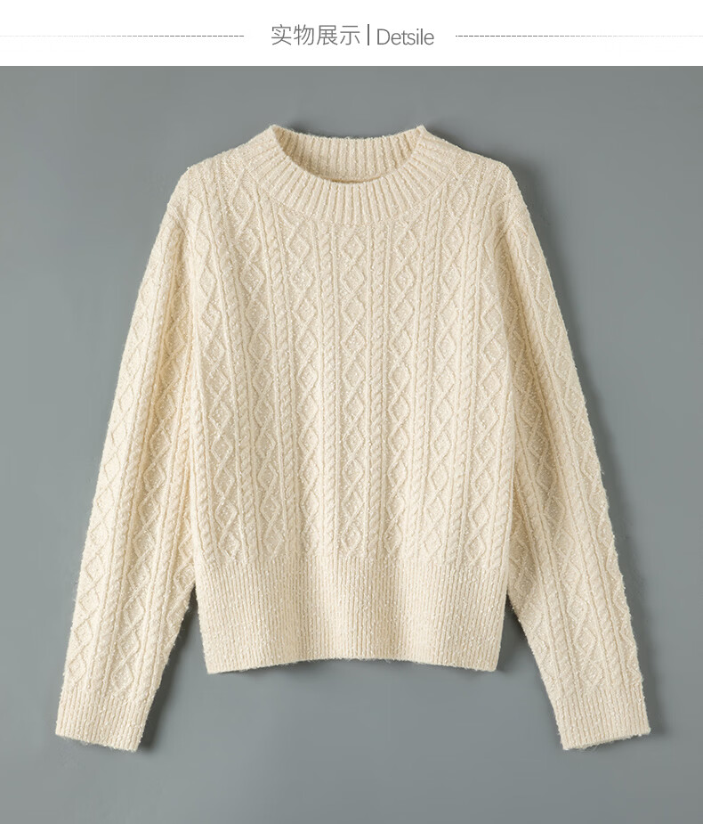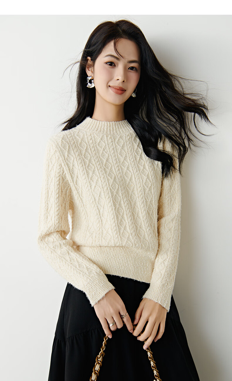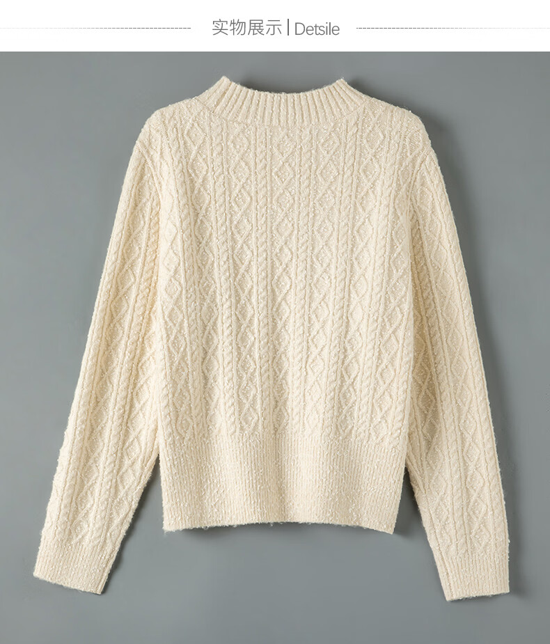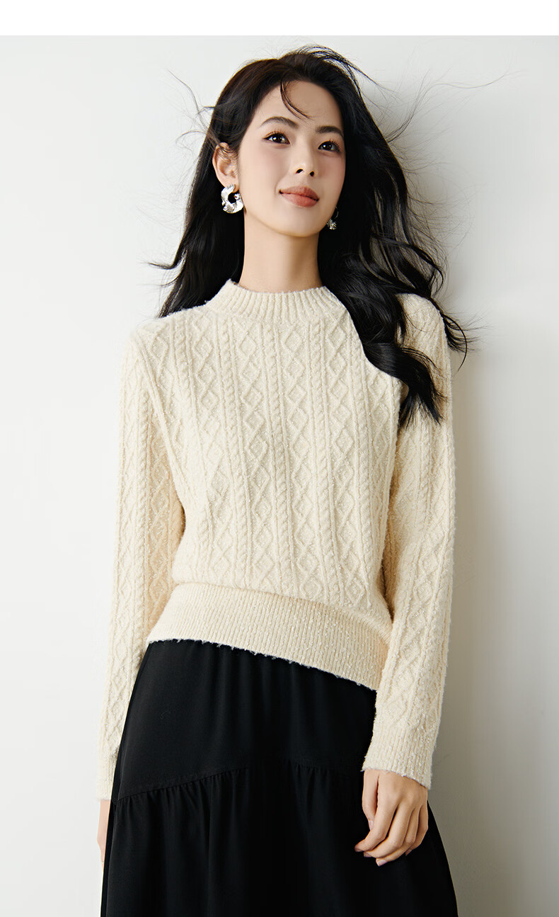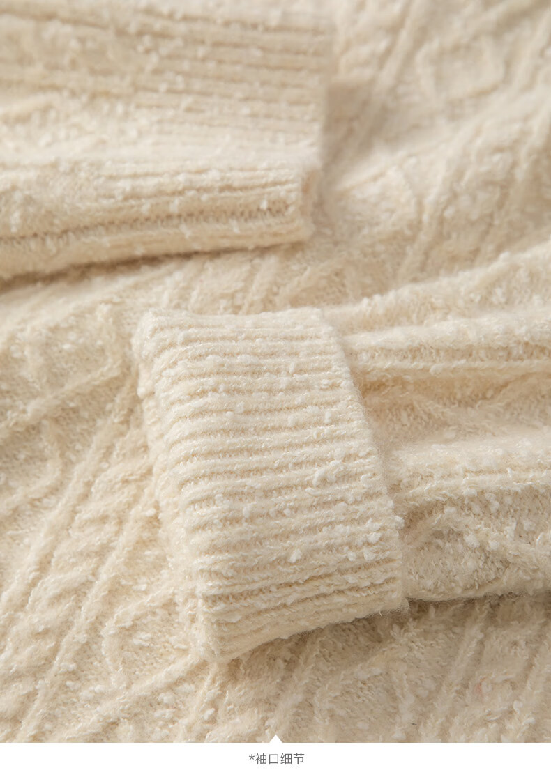 晚白【新品】冬款时尚复古菱形绞花毛衣含羊毛柔软舒适针织衫女 米杏色 M