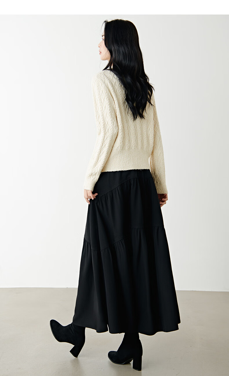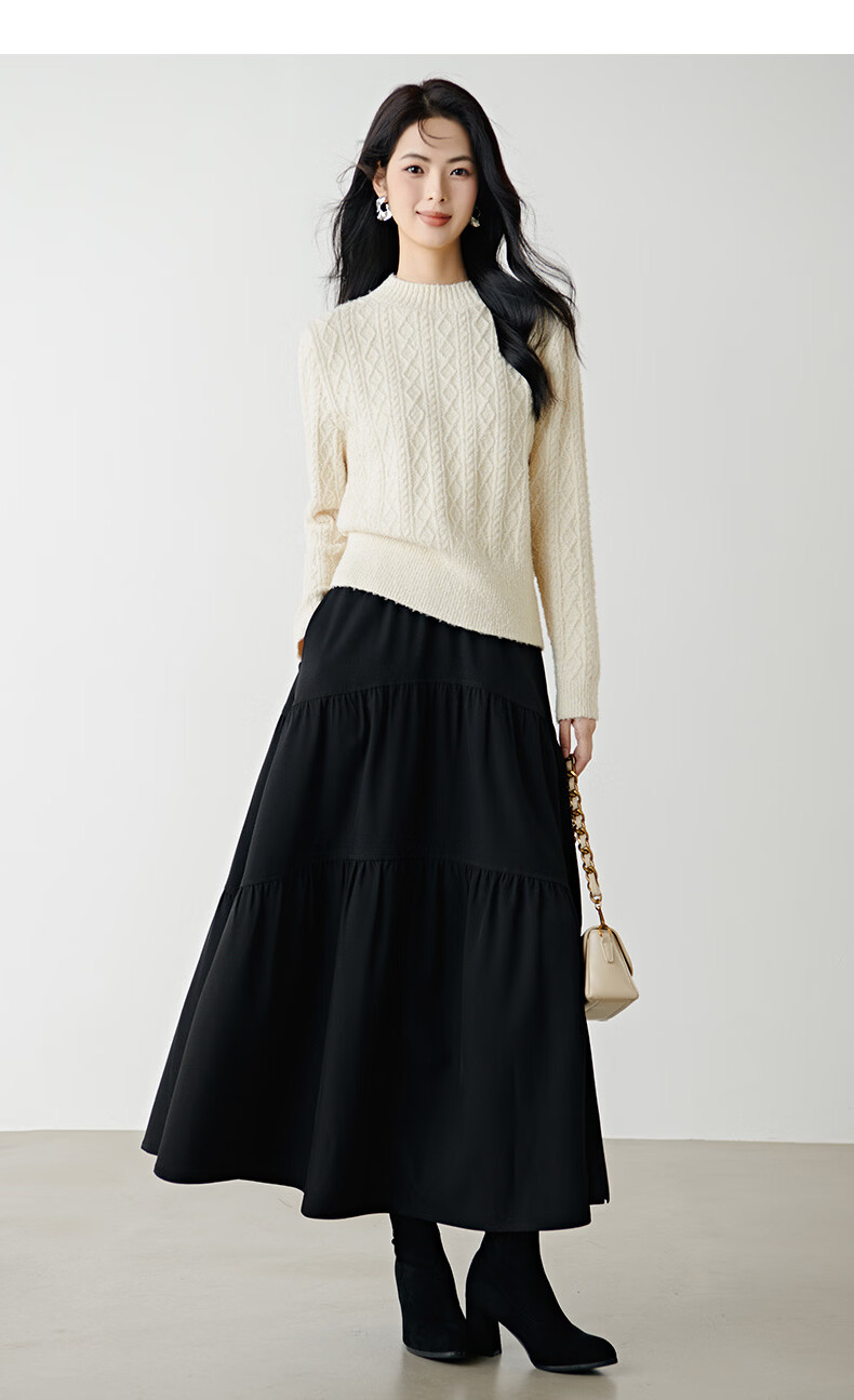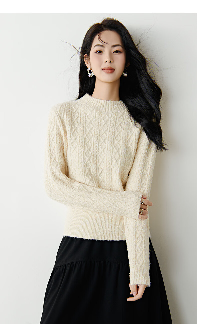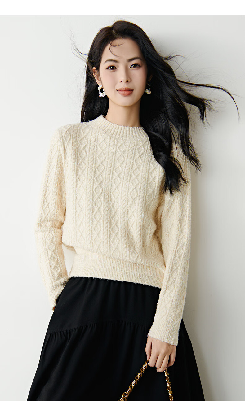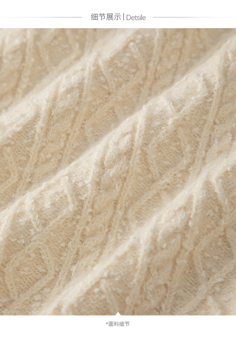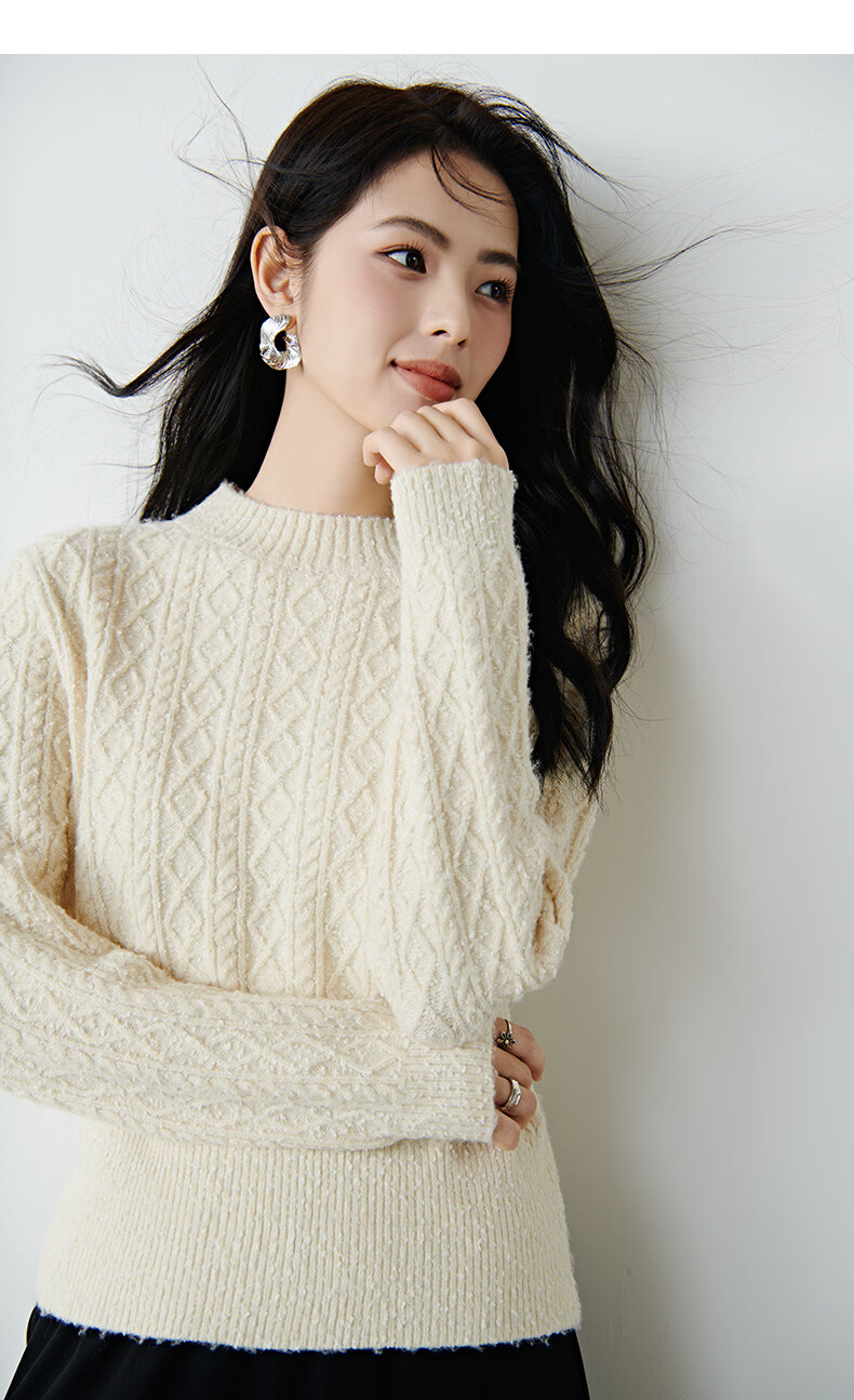 晚白【新品】冬款时尚复古菱形绞花毛衣含羊毛柔软舒适针织衫女 米杏色 M
