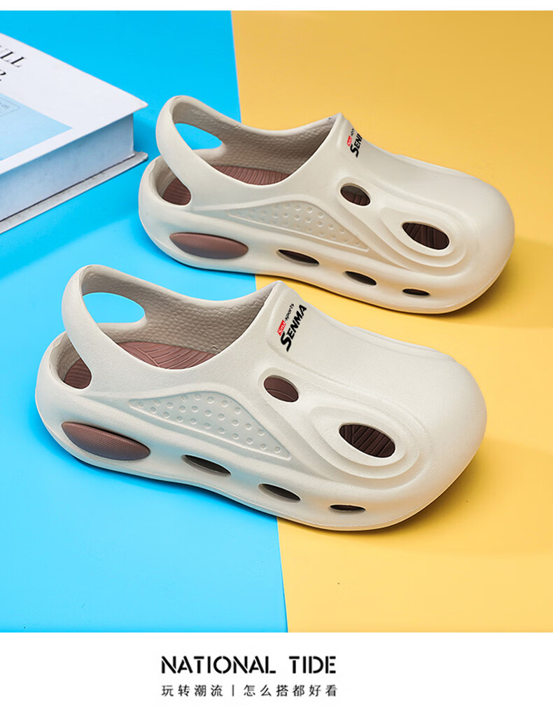 森馬男童夏季外穿踩屎感洞洞鞋防滑透气运动凉拖鞋儿童沙滩鞋亲子凉鞋 卡其【基础款】 28 【现货秒发】 -29